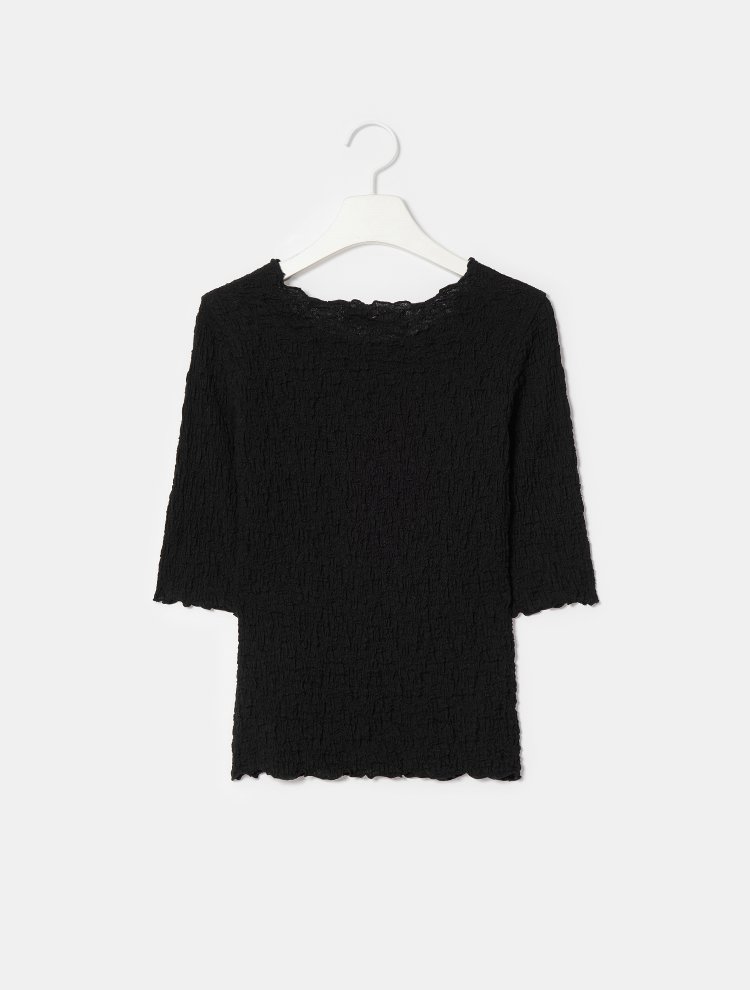 8seconds Ivory floral embroidered knit黑色Wrinkle 5 T恤女款JPY带授权招加盟代理