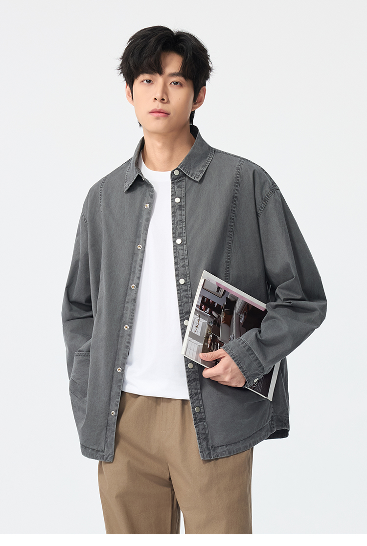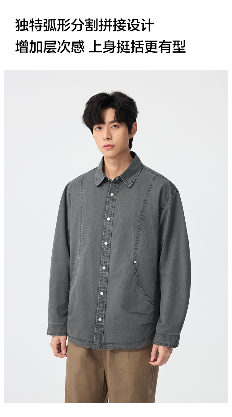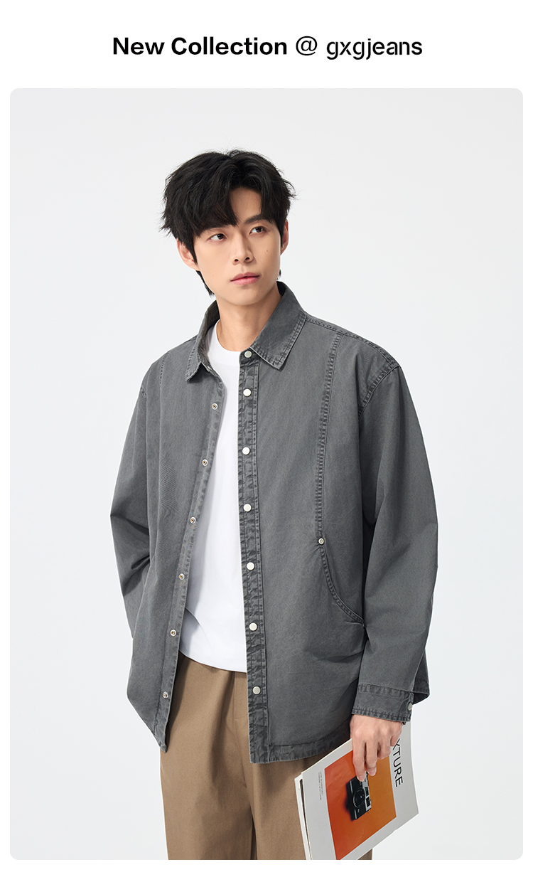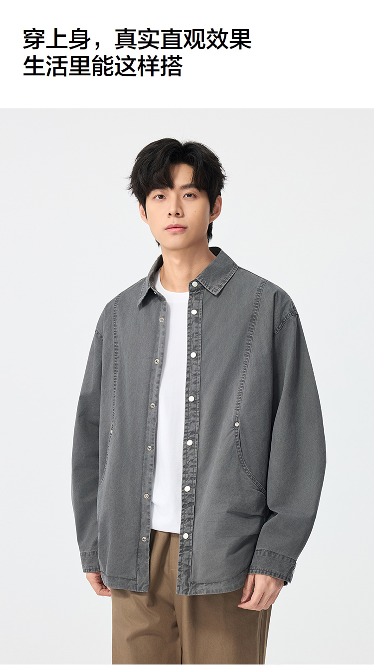 gxgjeans男装【棉100%】男士翻领夹克2026春款按扣时尚百搭衬衫外套男K&C