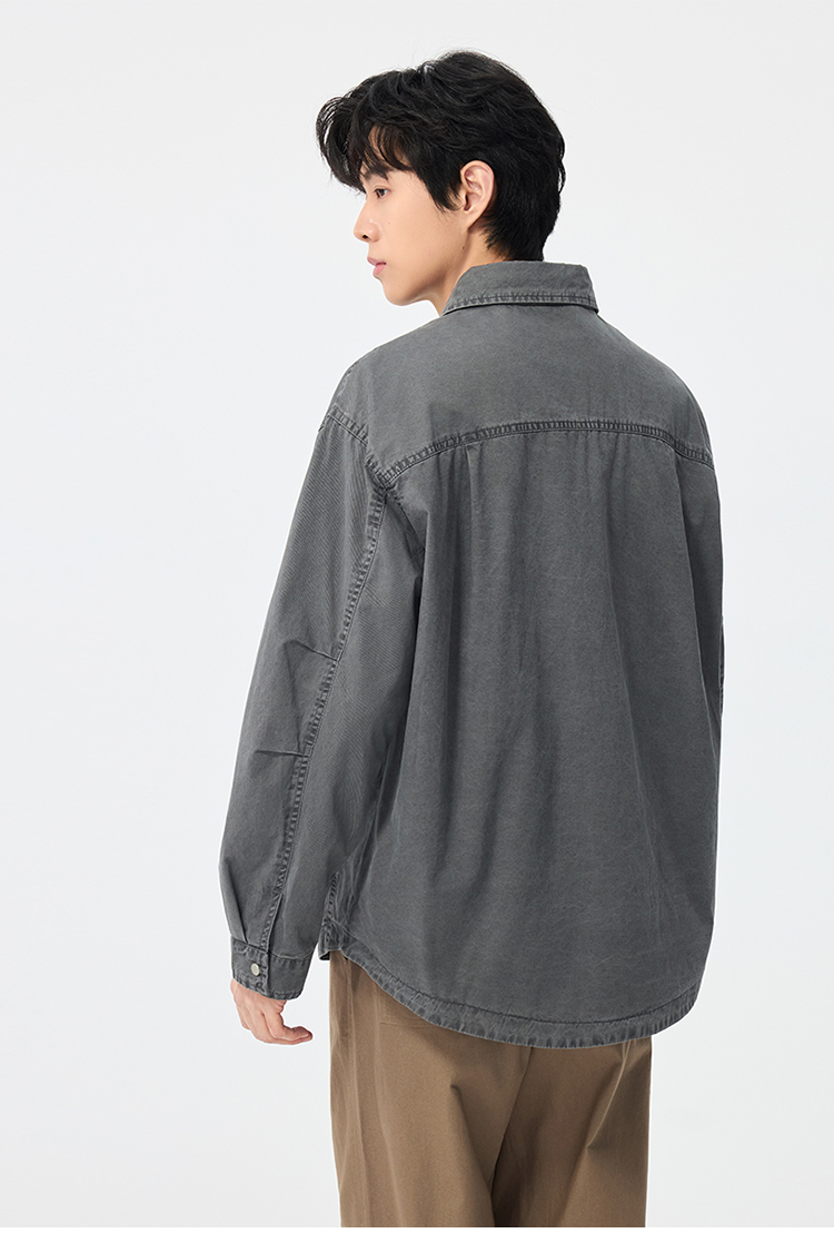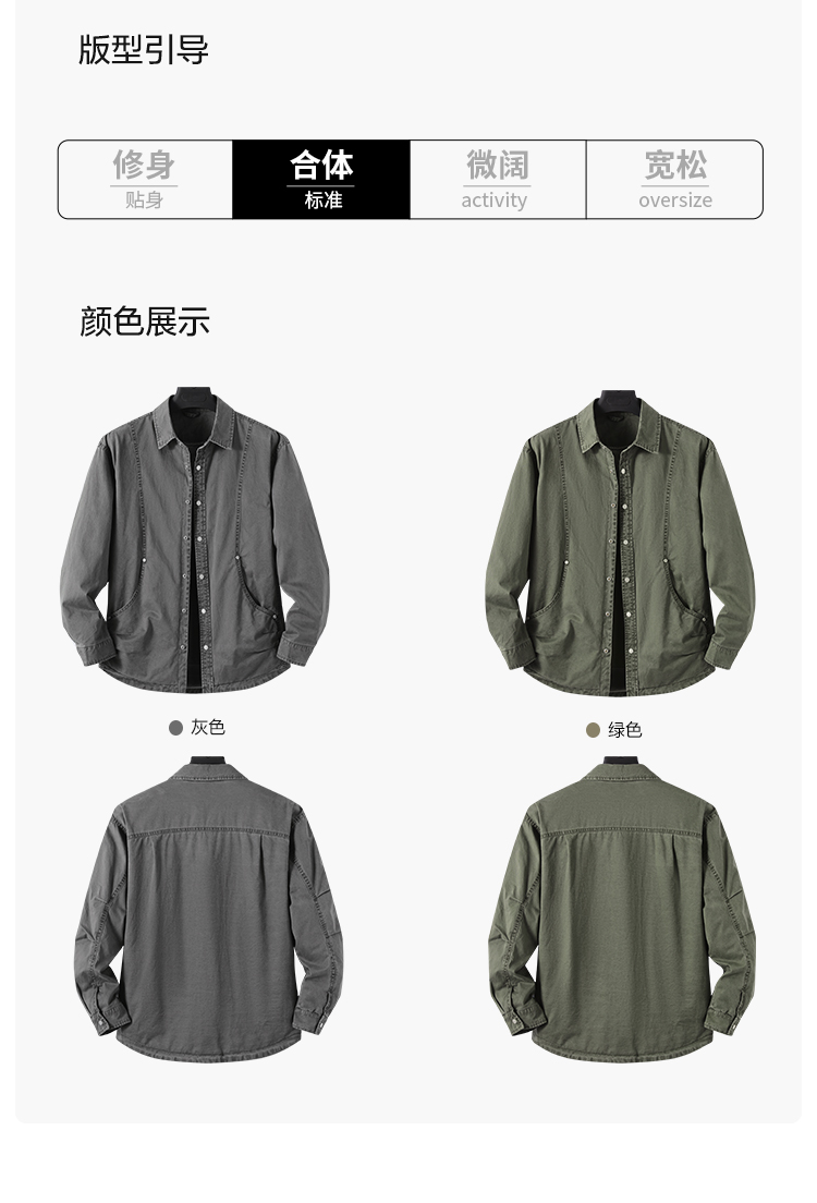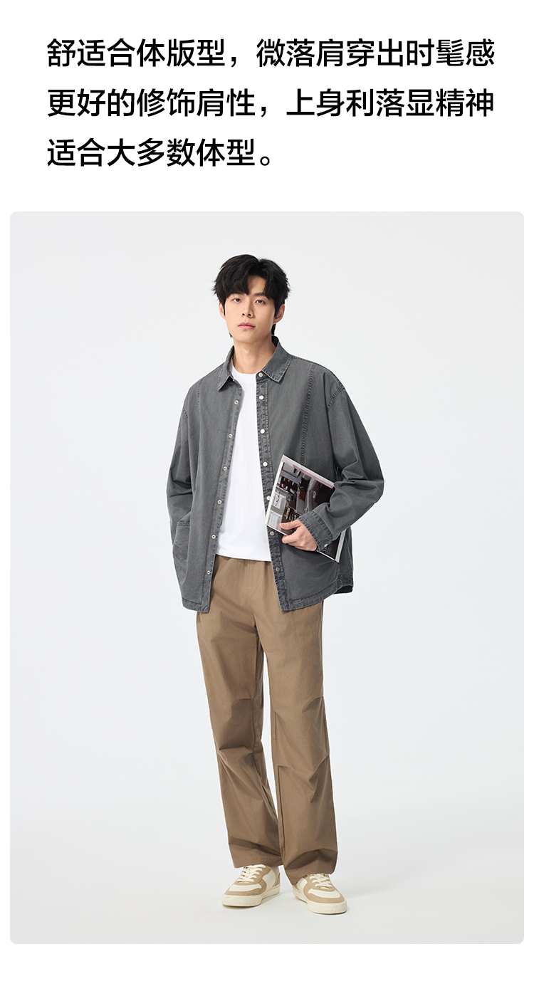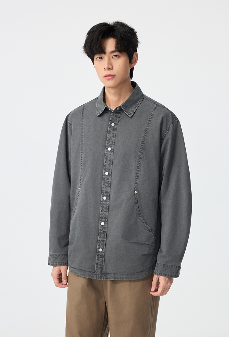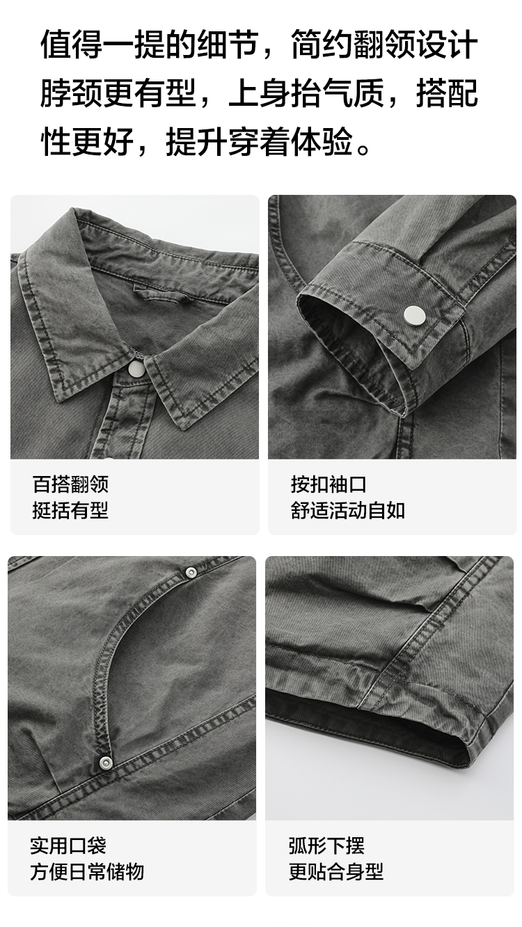 gxgjeans男装【棉100%】男士翻领夹克2026春款按扣时尚百搭衬衫外套男K&C