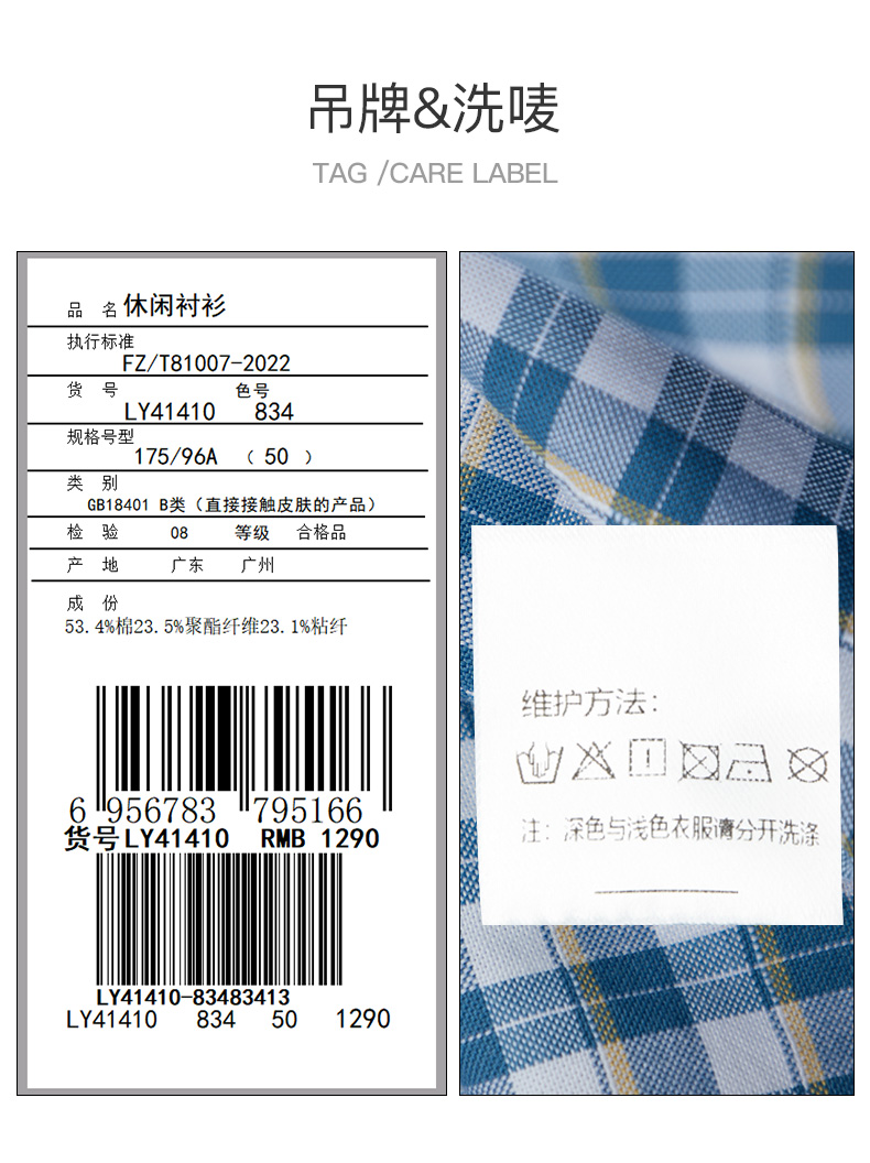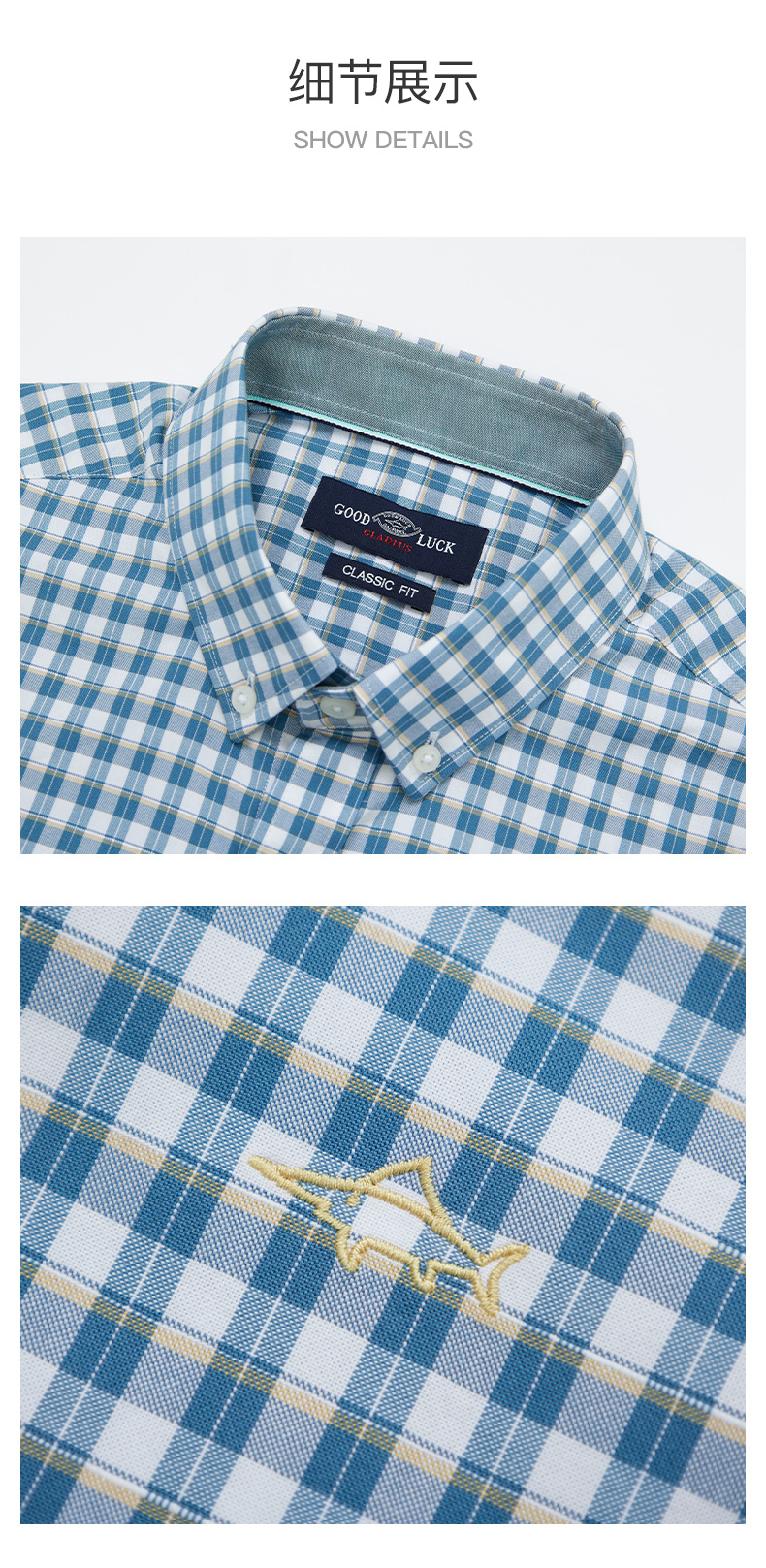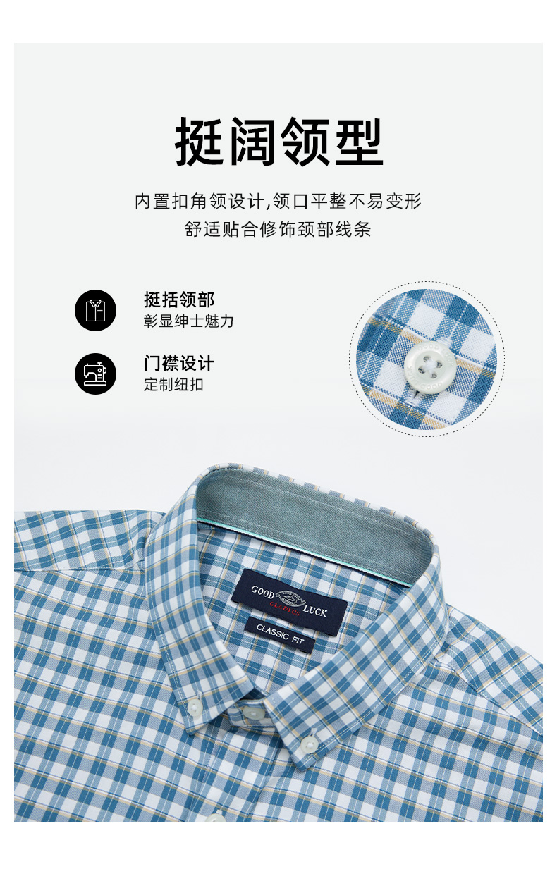GOOD LUCK/德鲨优雅温莎领设计经典格子百搭舒适长袖衬衫FY21212-828