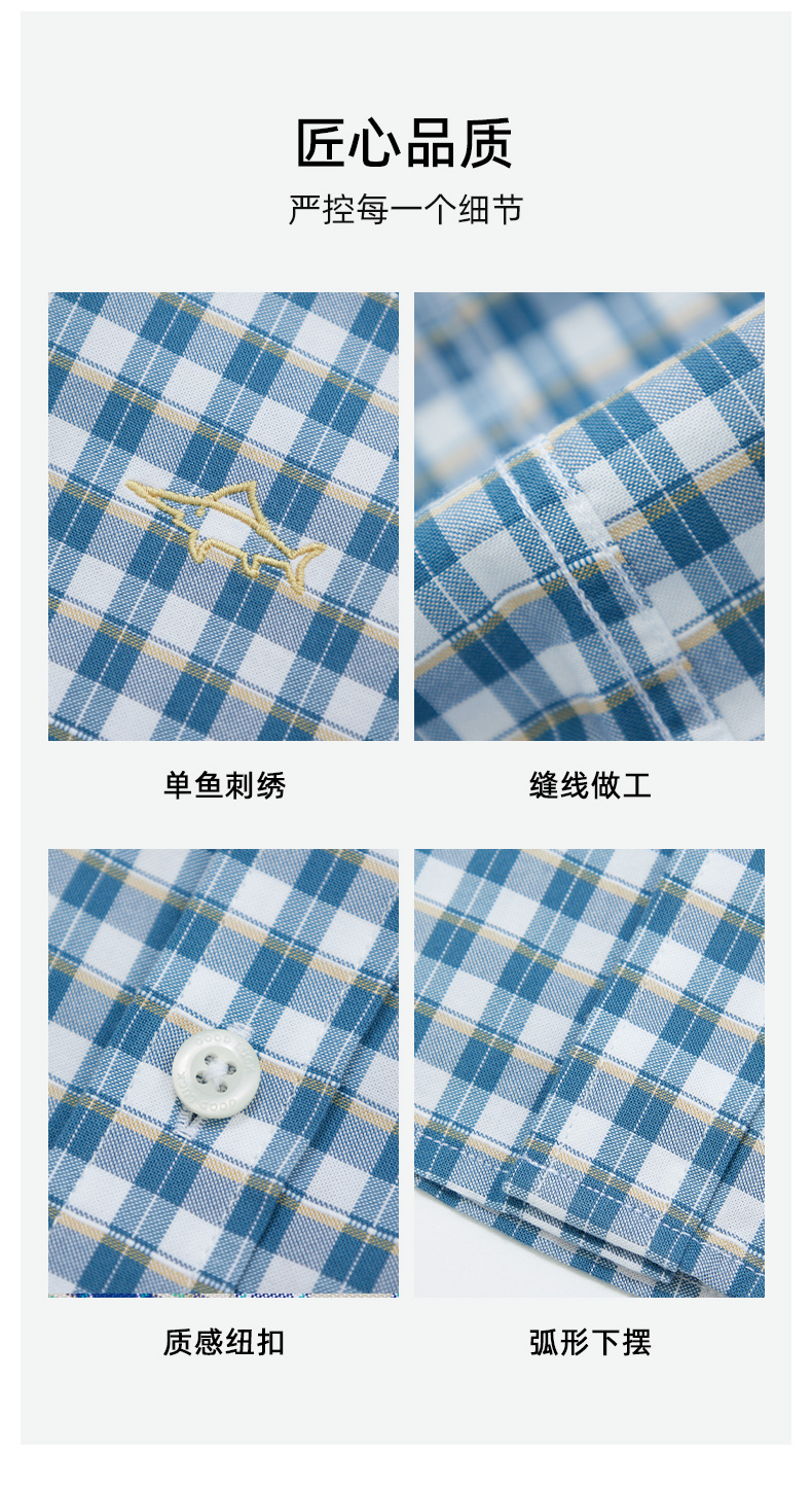 德鲨鲨鱼短袖格子衬衫男2026夏新款休闲打底上衣男装衬衣