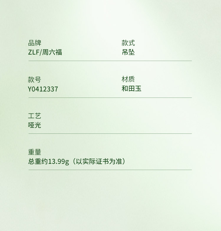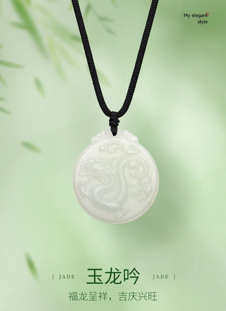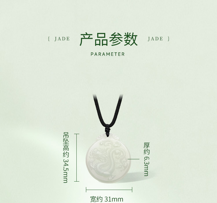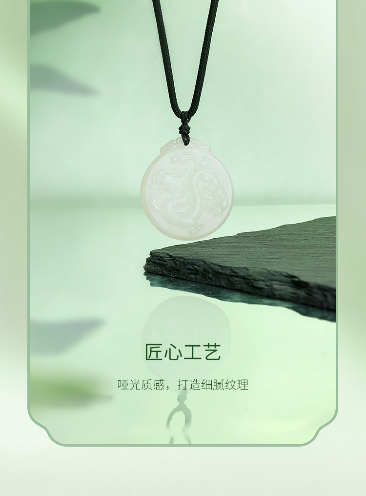 周六福珠宝玉石龙牌吊坠男女和田玉白玉玉坠本命年生肖送人礼物