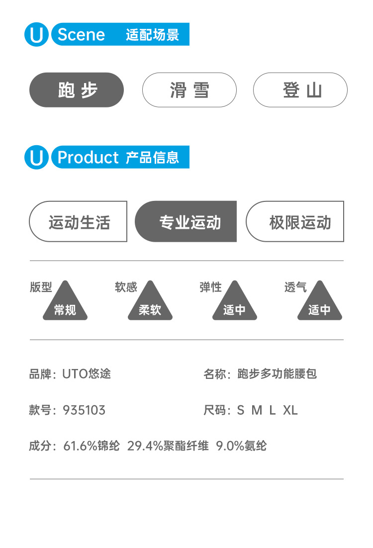 UTO/悠途多功能运动腰包男跑步装备隐形轻薄腰带女户外越野健身包