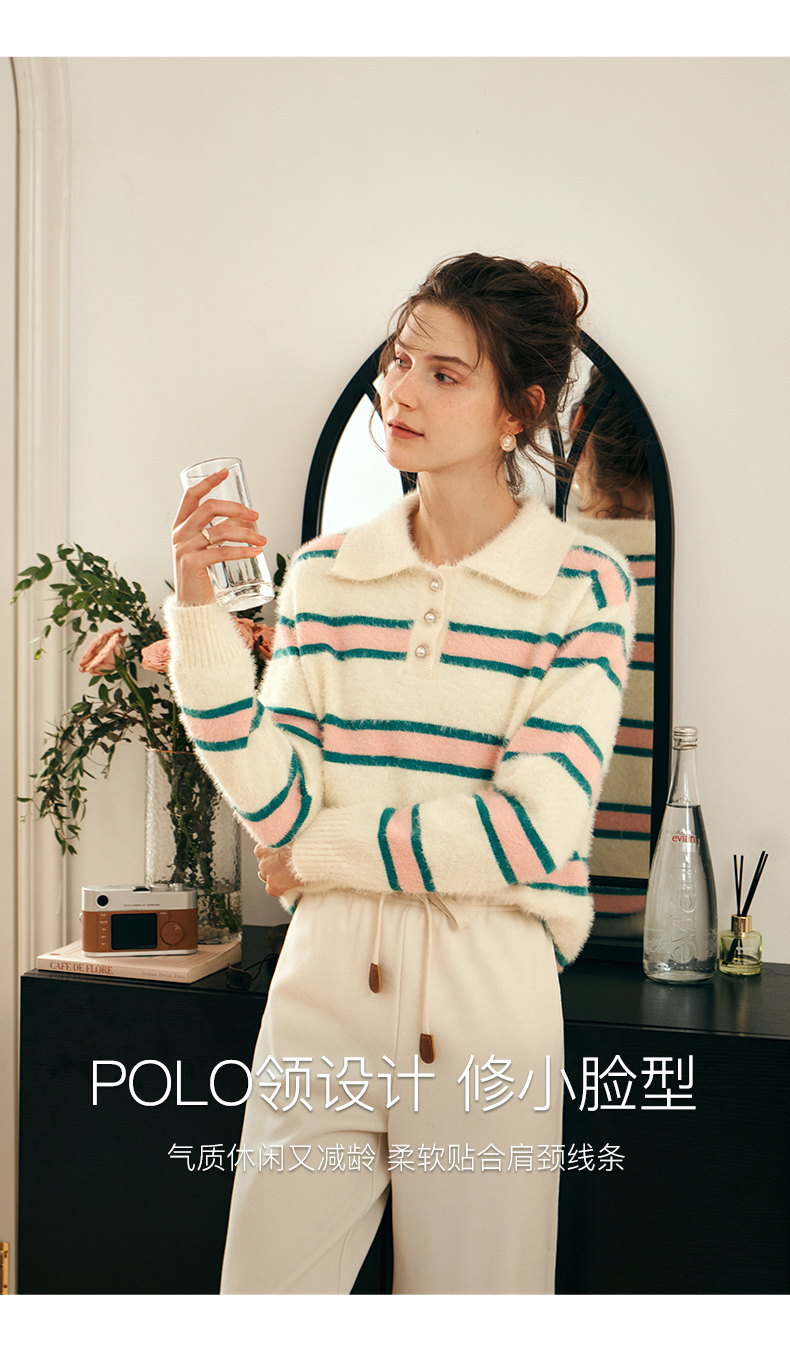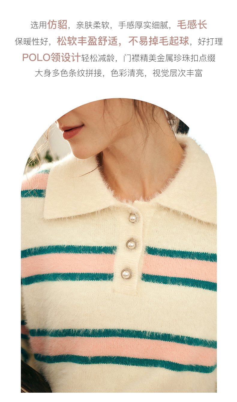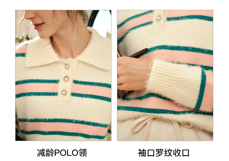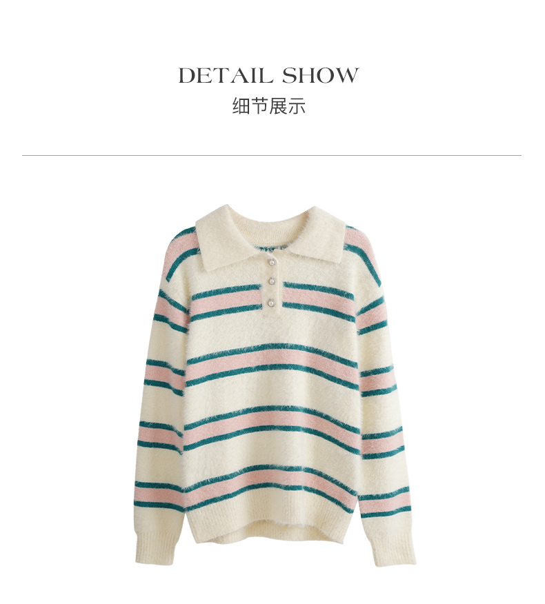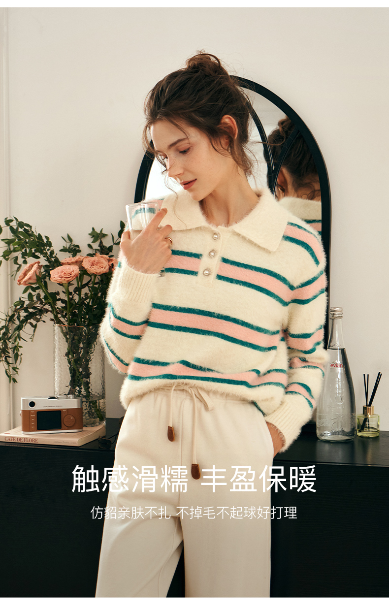 OLrain欧芮儿法式条纹毛衣女春2025年新款时尚宽松polo领套头衫