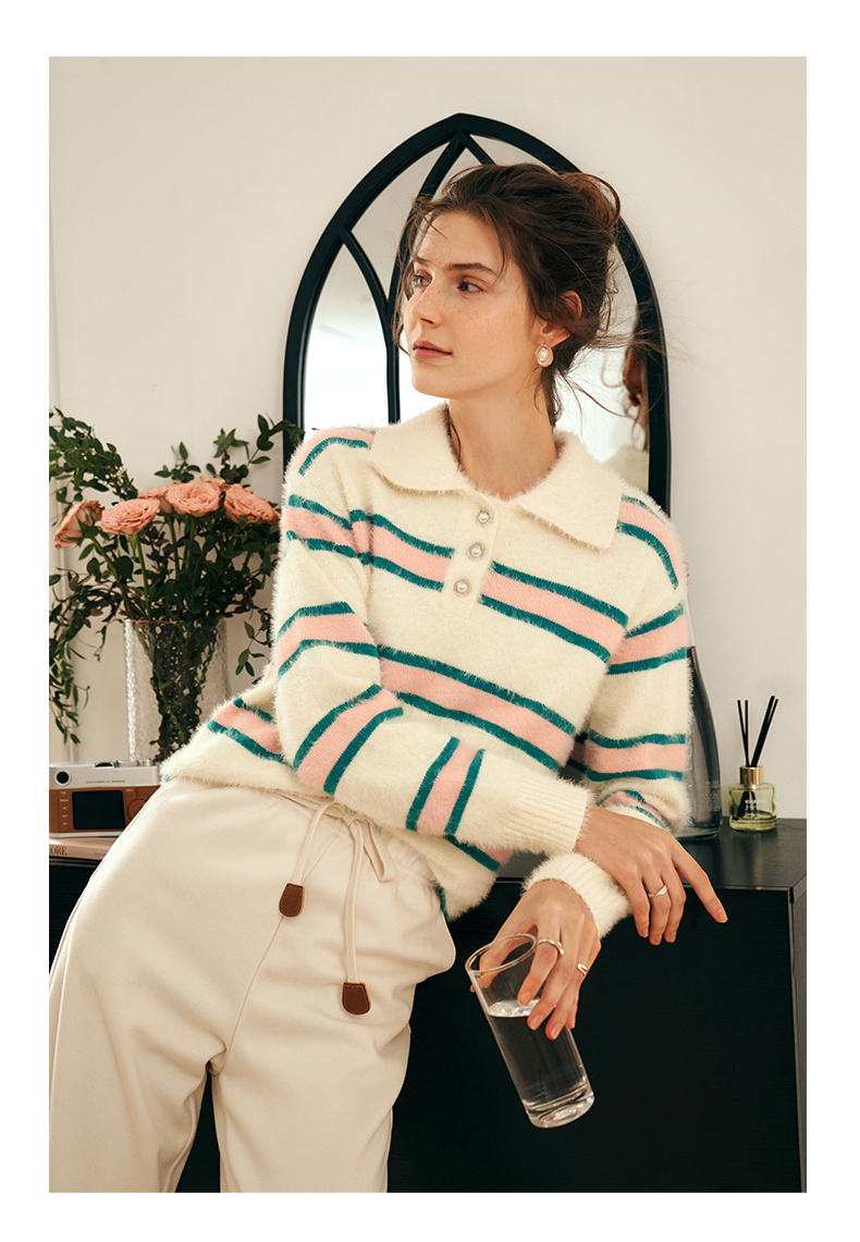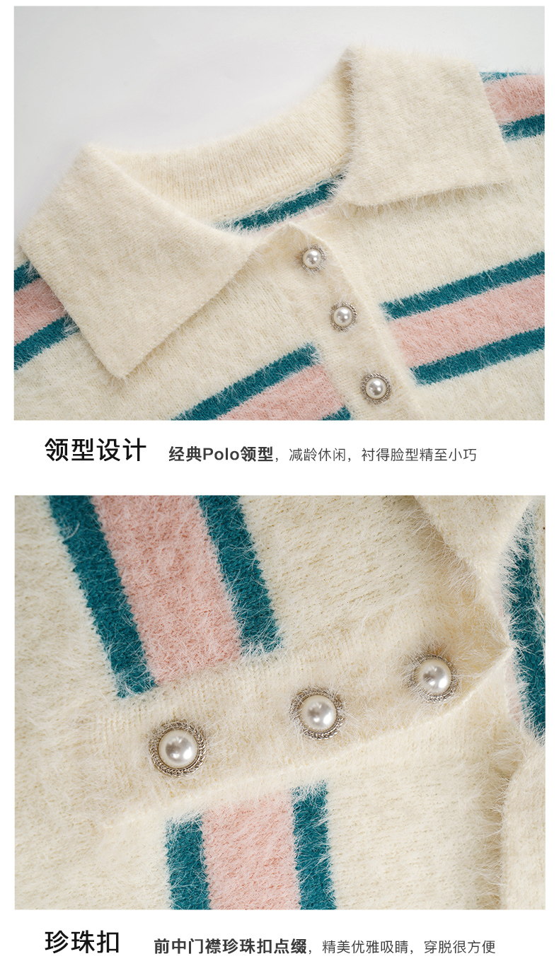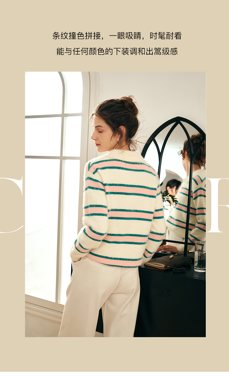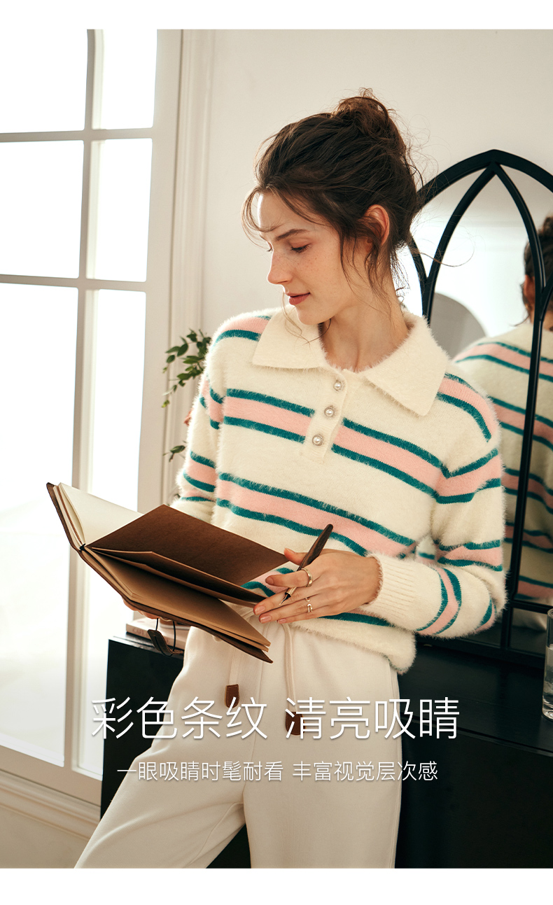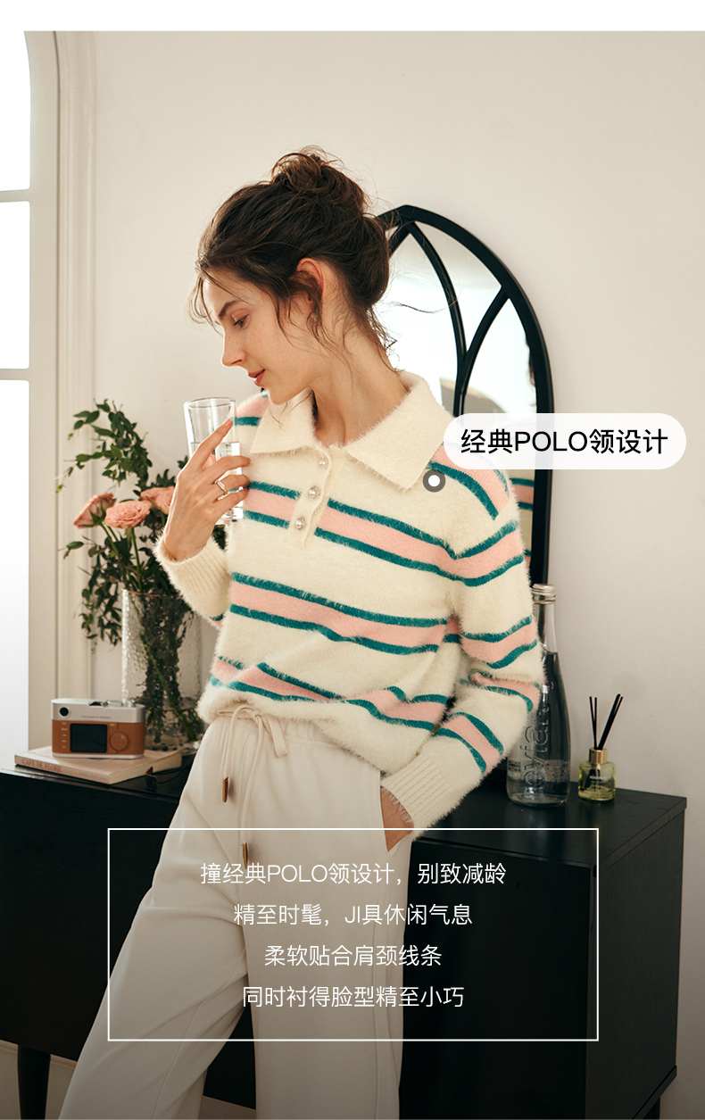 OLrain欧芮儿法式条纹毛衣女春2025年新款时尚宽松polo领套头衫