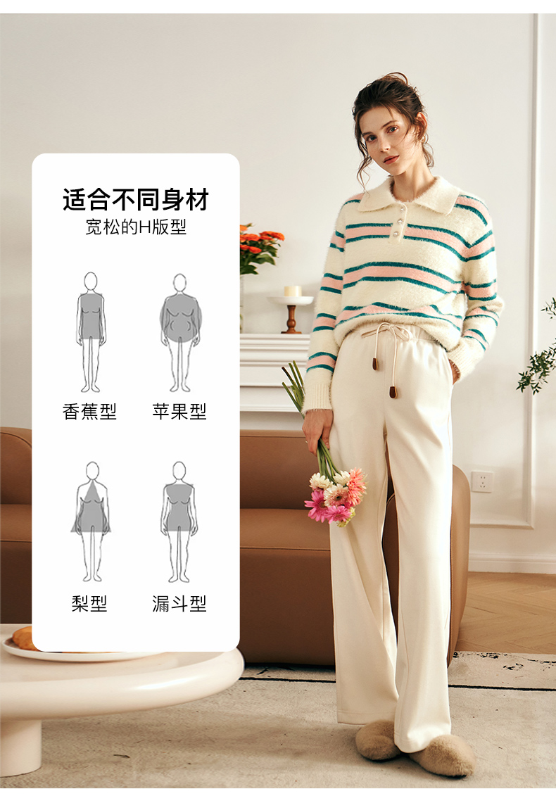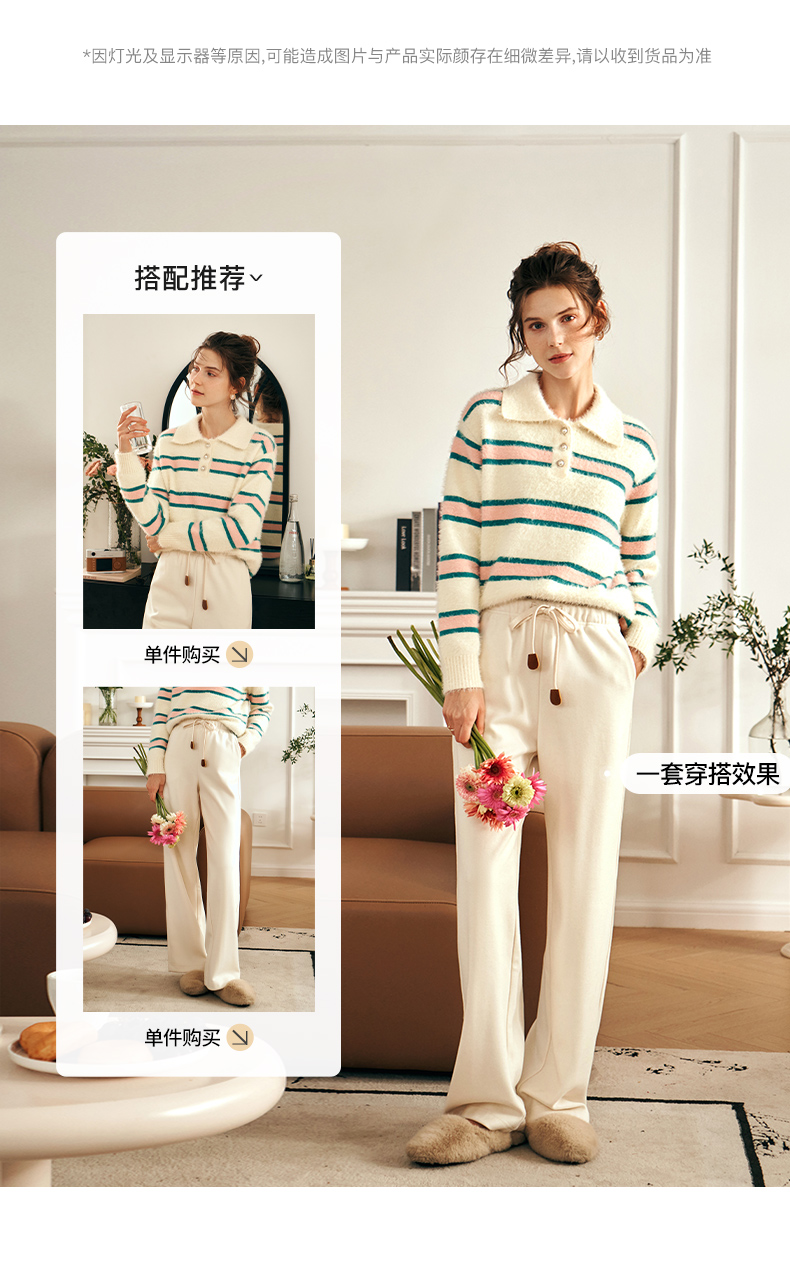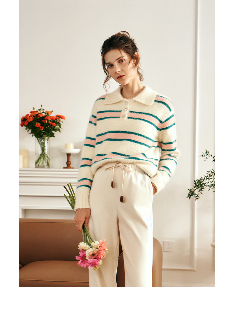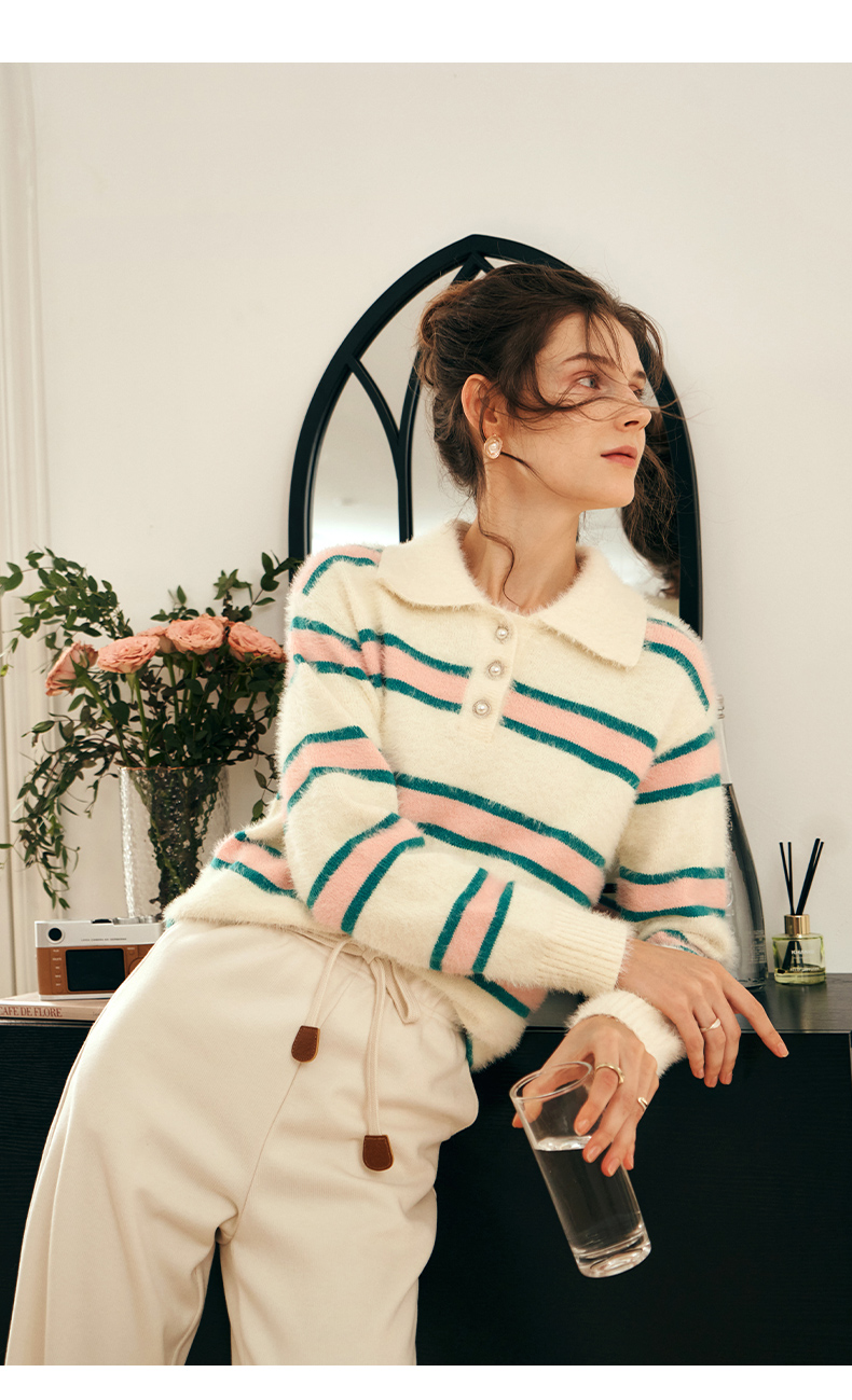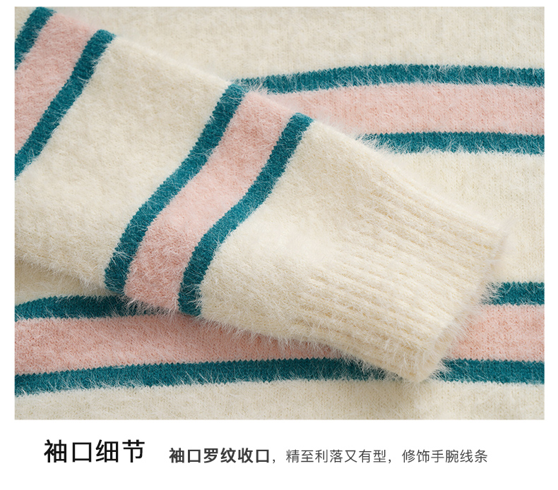 OLrain欧芮儿法式条纹毛衣女春2025年新款时尚宽松polo领套头衫