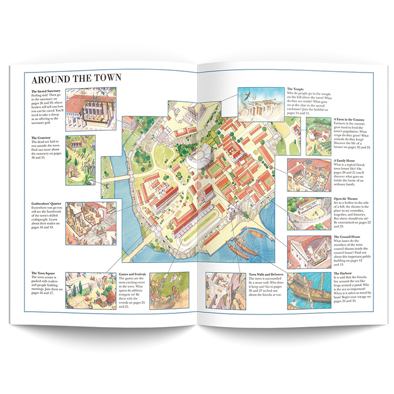 《古文明穿越指南》是“番茄博士双语百科”的一个子系列,套装内共4本图书,分别为:《穿越古埃及》《穿越古罗马》《穿越古希腊》《穿越印加帝国》。书中通过四个虚拟的城镇介绍了四个文明古国曾经的盛况,包括城市建设、著名景点、当地风俗及人民生活场景等。此外,每本书里都“时间旅行者的指南”,通过时空穿越的视角,介绍了穿越回古代需要注意的衣食住行等各方面的问题,并推荐了旅行线路。对喜爱历史、文化题材的小读者来说,是一套图文并茂,且融知识性、趣味性和语言学习为一体的双语百科图书,适合小学和初中低年级的学生阅读与学习。
