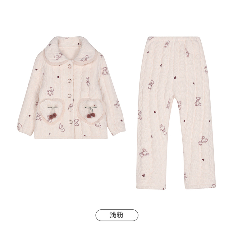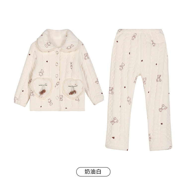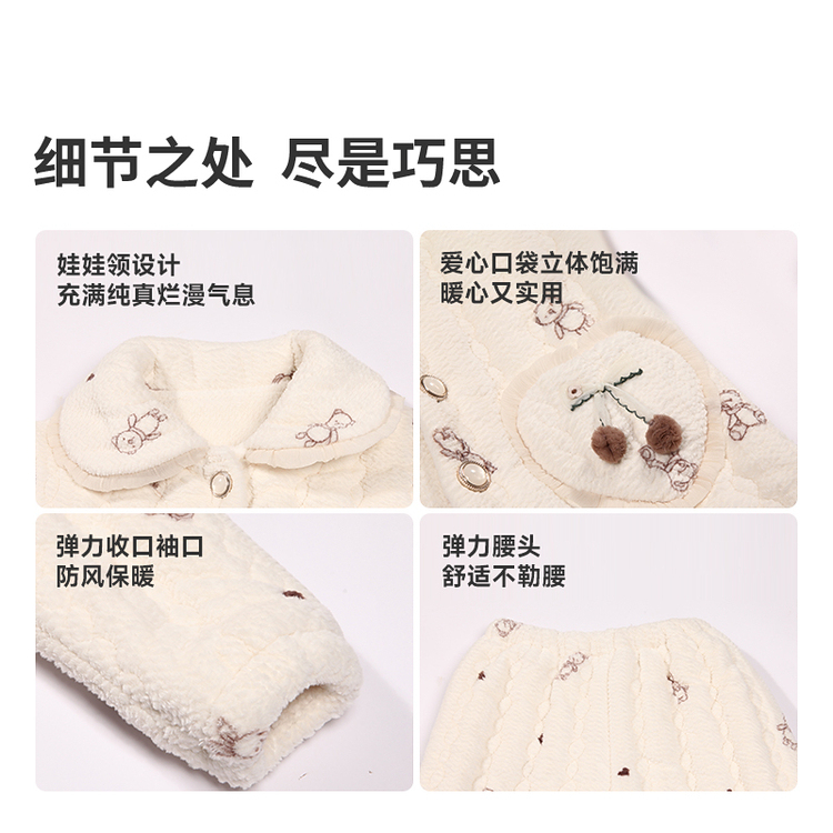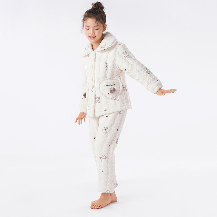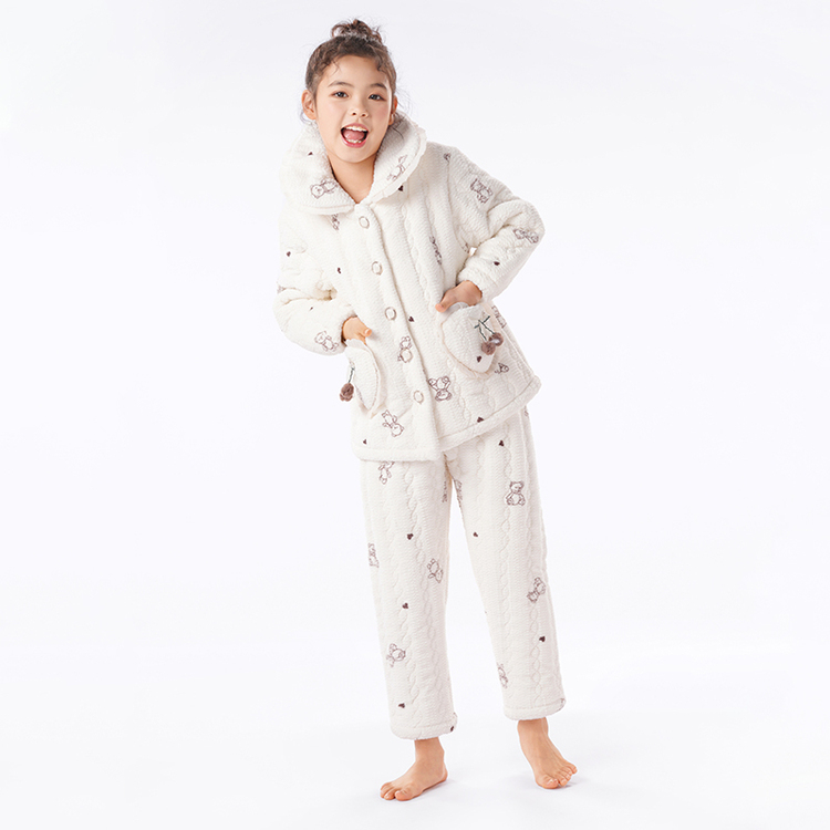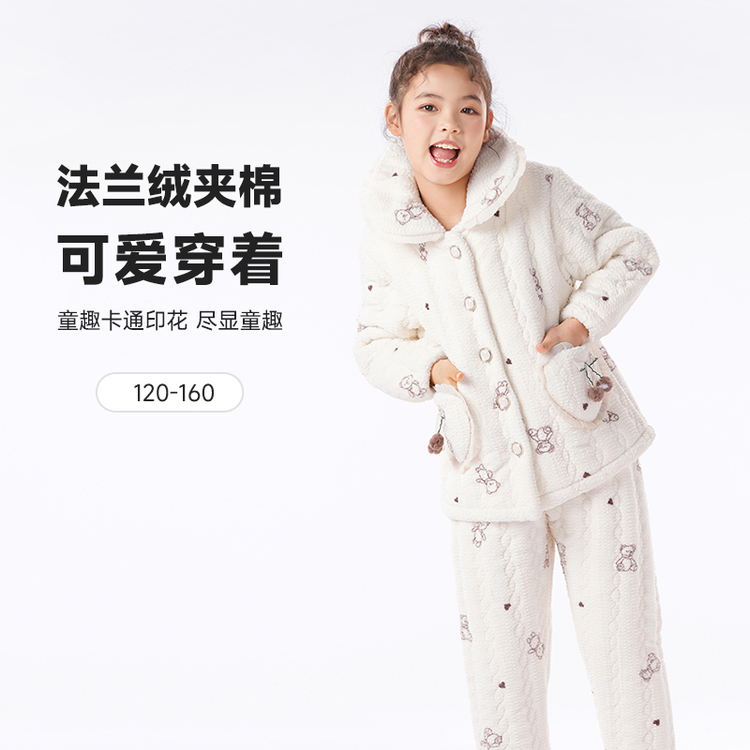 都市丽人睡衣女童法兰绒儿童家居服长袖长裤中厚夹棉套装JHH9E1