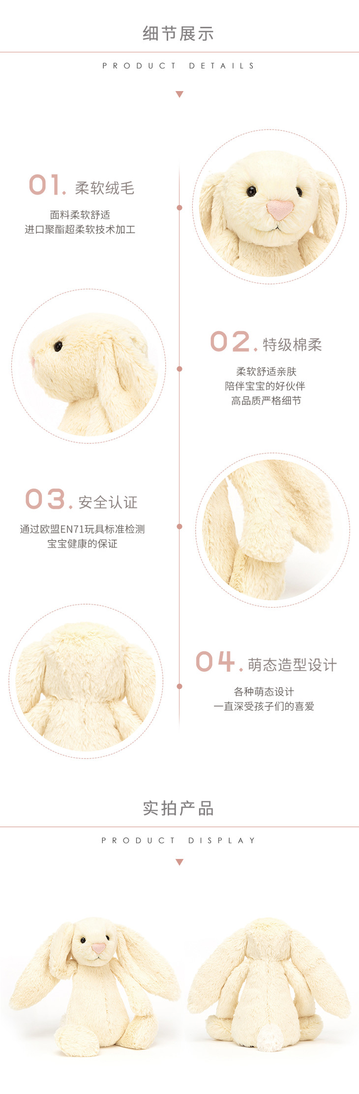英国Jellycat 邦尼兔31CM| 柠檬黄毛绒公仔宝宝安抚玩偶0岁+ 31-108cm