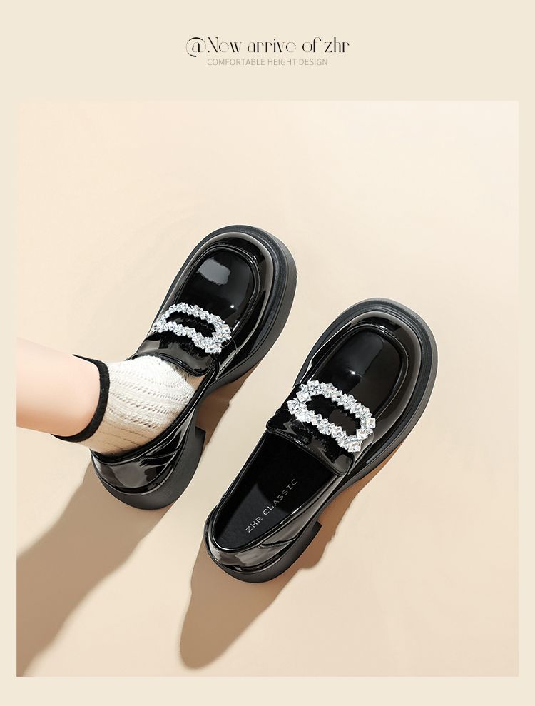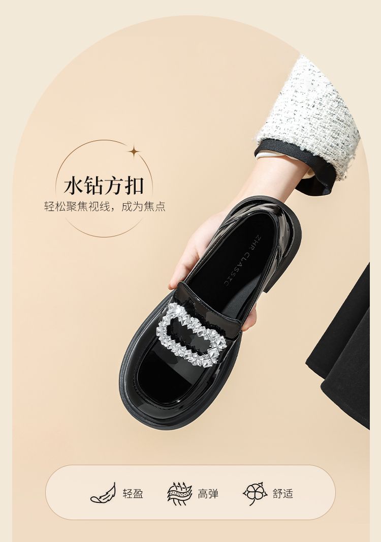 ZHR则则气质百搭小皮鞋2024新款英伦单鞋女厚底时尚小香风乐福鞋