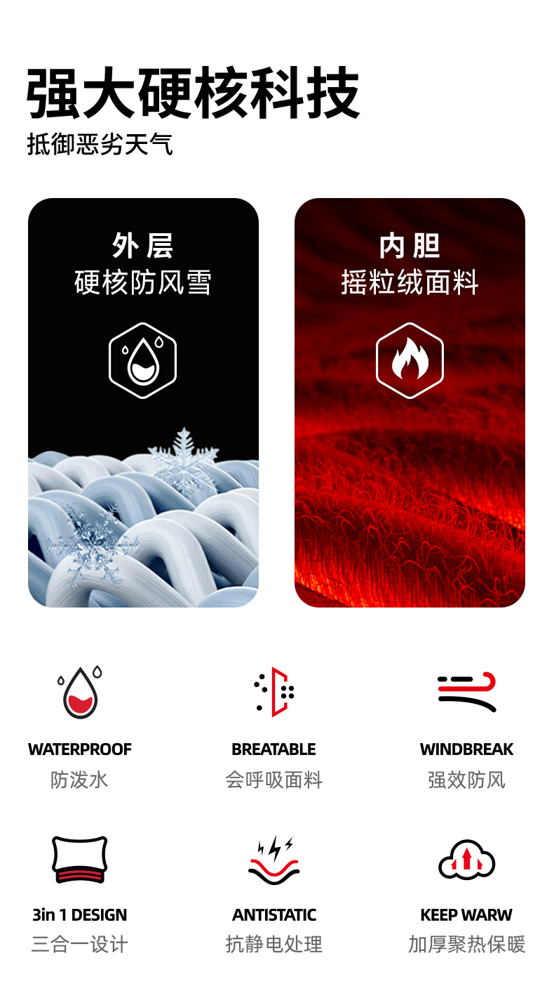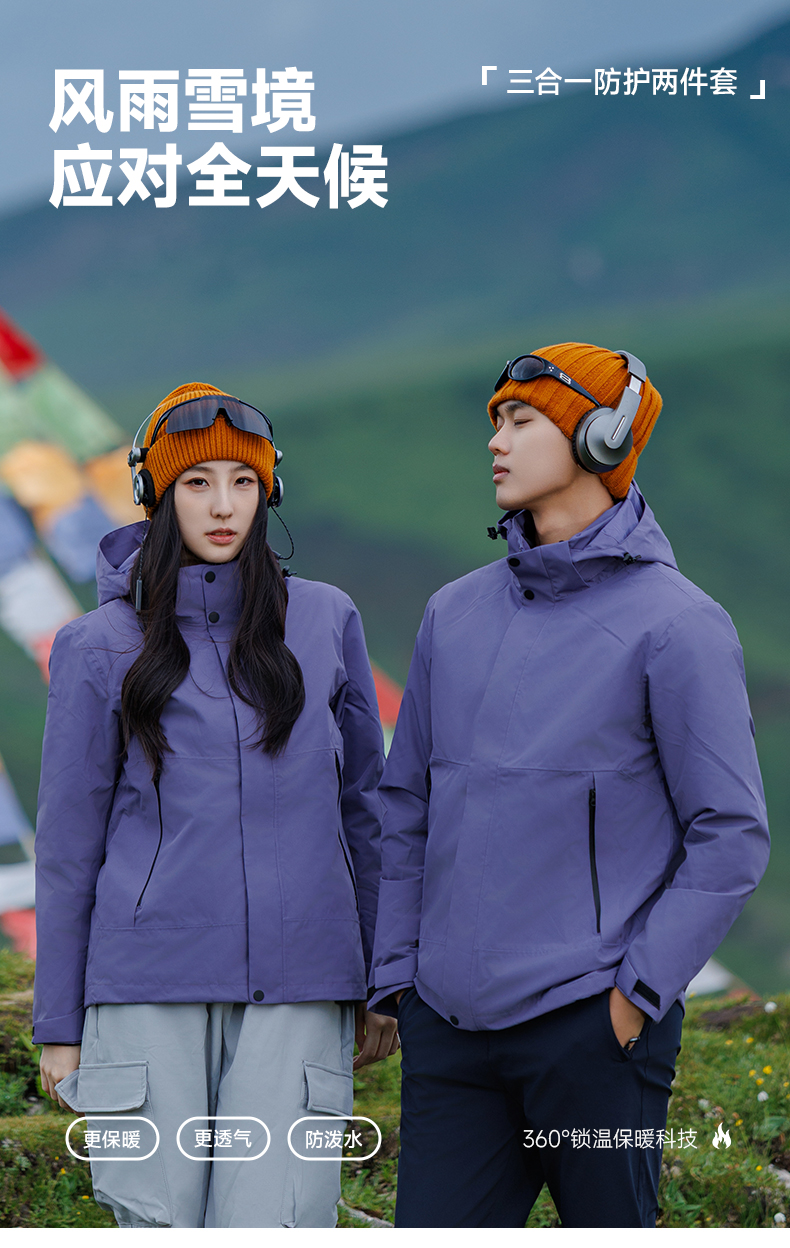【199秒杀 三合一】LUCKY DEER幸运鹿情侣款全热封封防大雨级别轻户外三合一冲锋衣