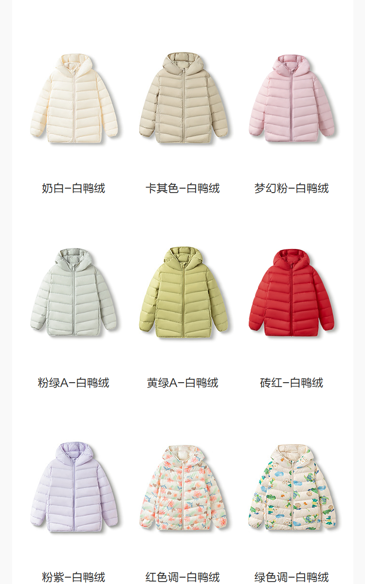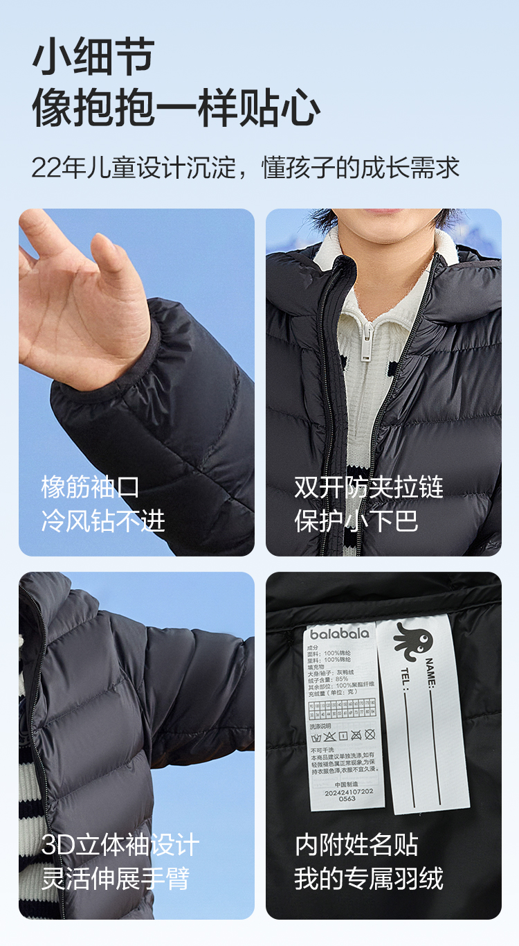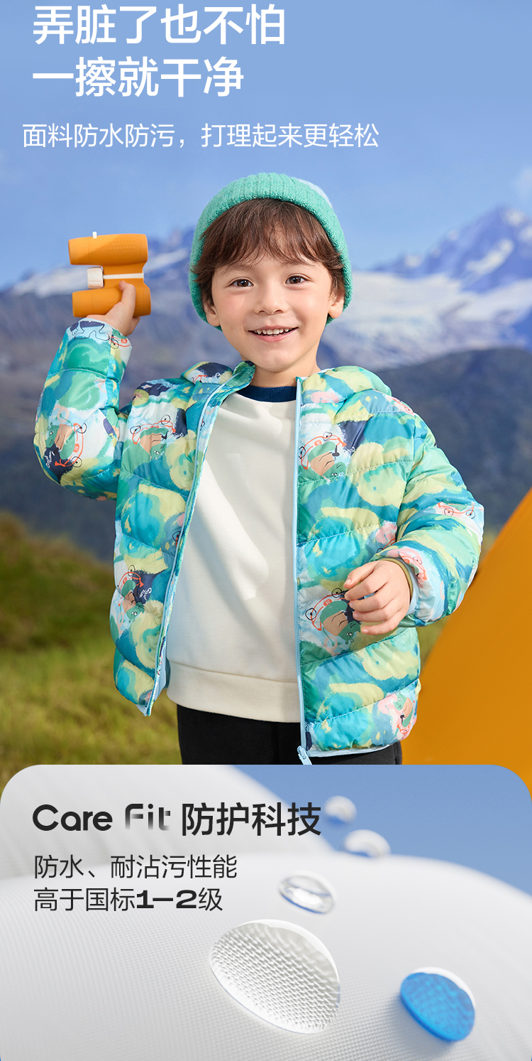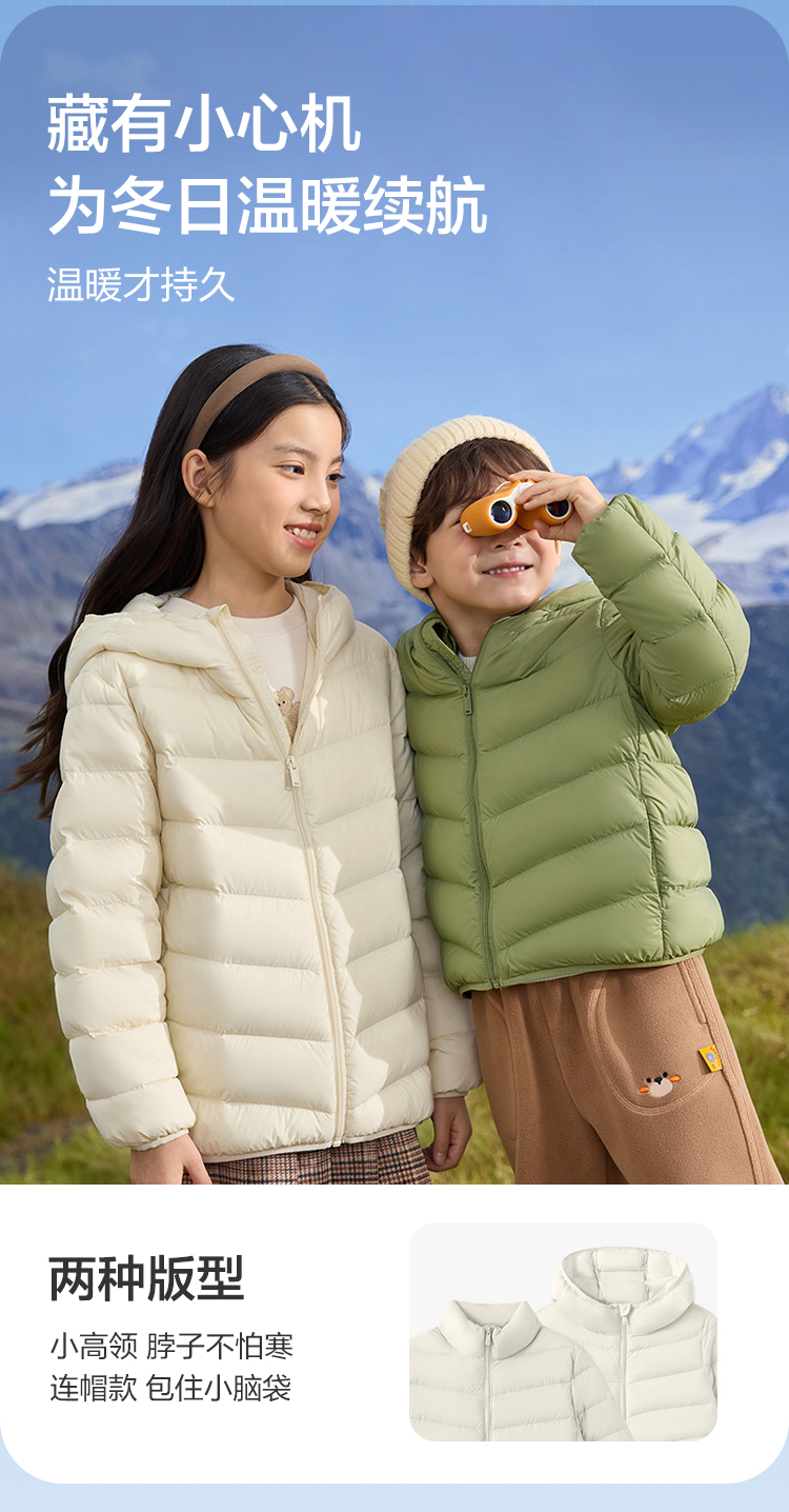 【云优选】巴拉巴拉童装男童轻薄羽绒服秋冬季女童连帽亲子外套防泼水防油污