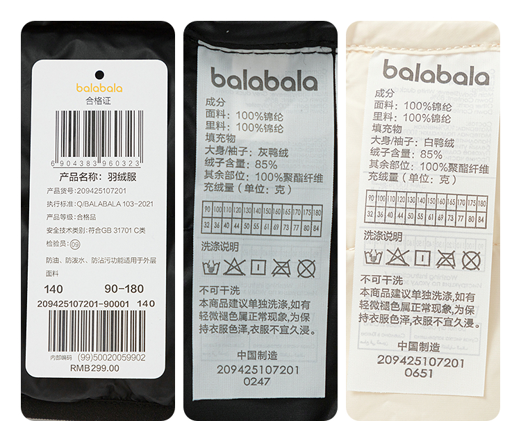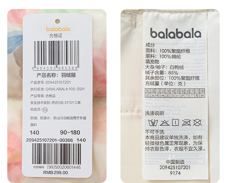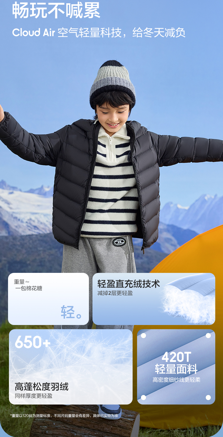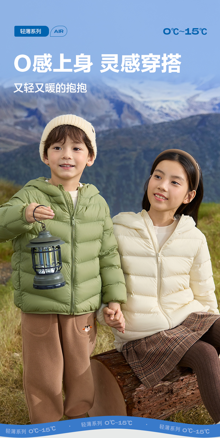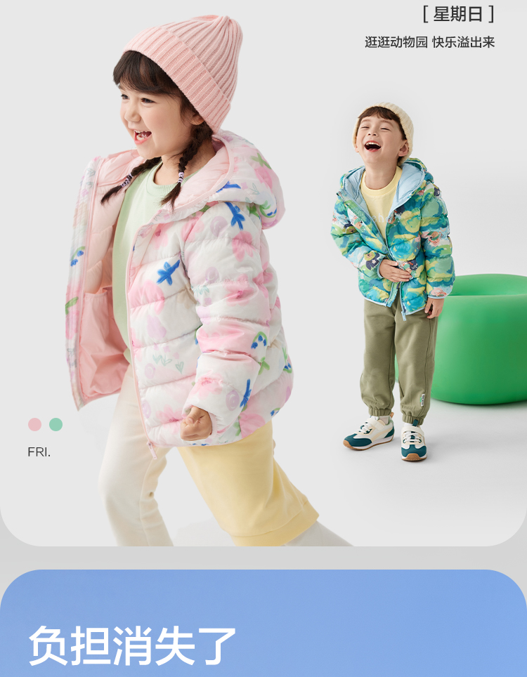 【云优选】巴拉巴拉童装男童轻薄羽绒服秋冬季女童连帽亲子外套防泼水防油污