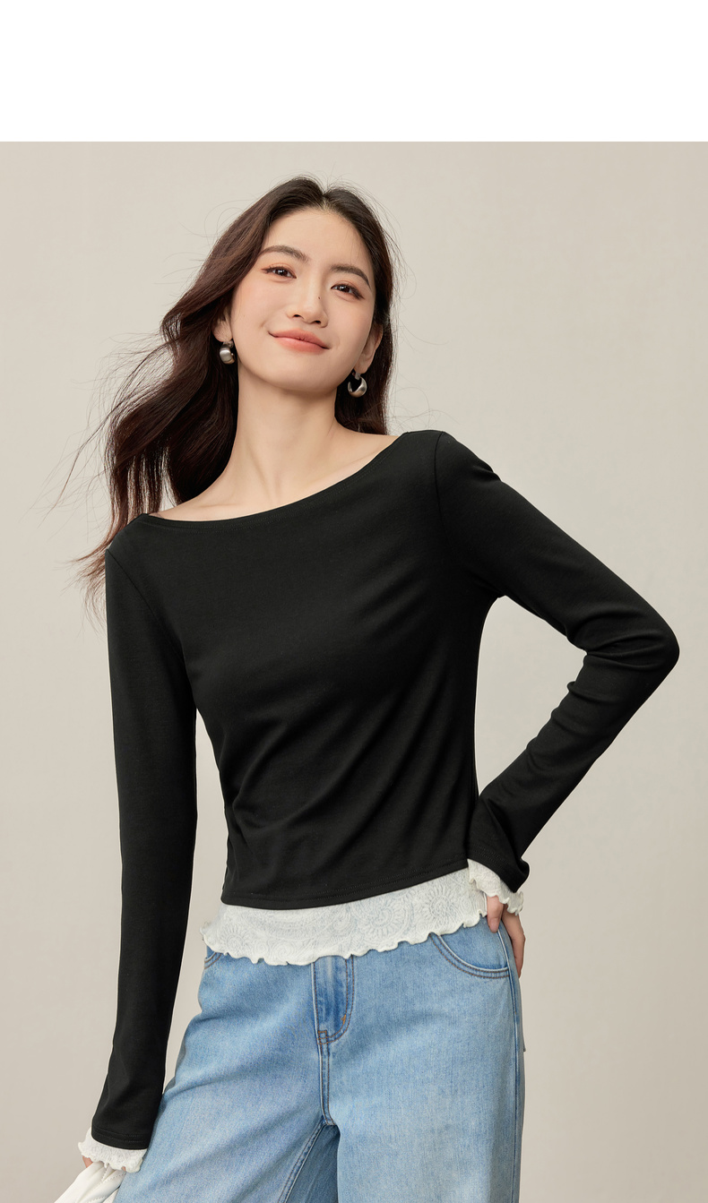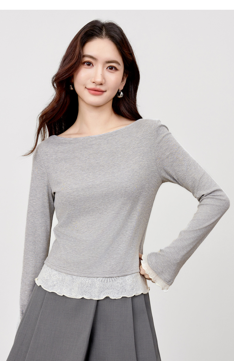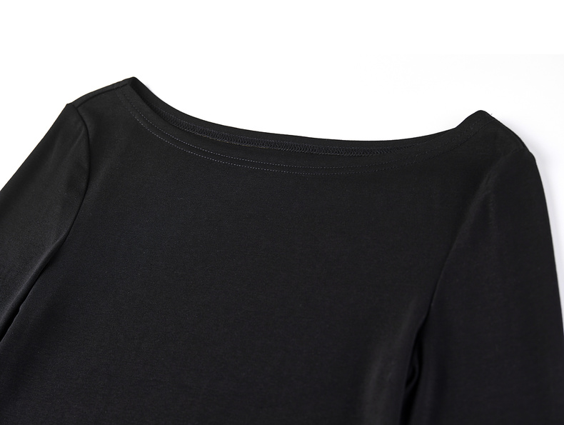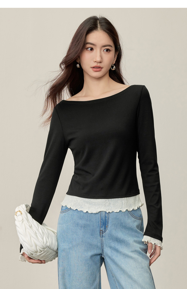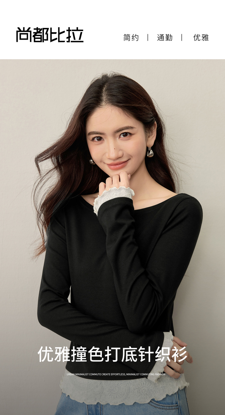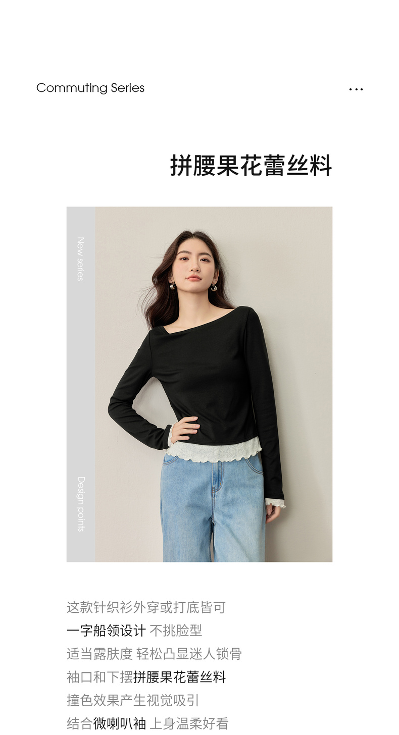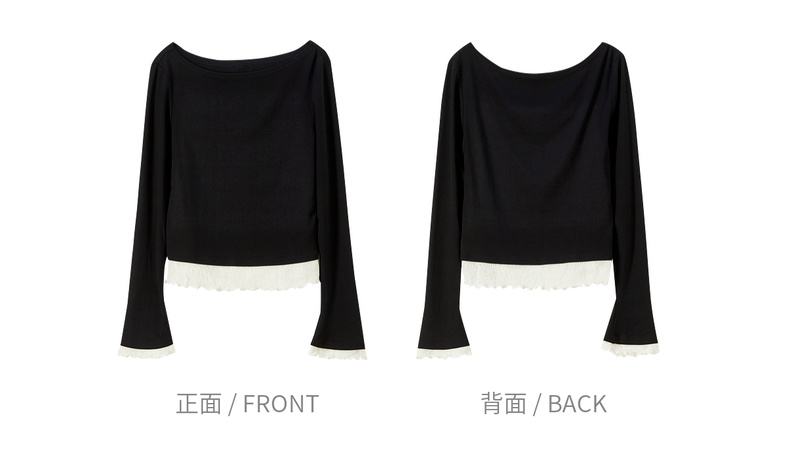 【内购】【撞色拼接】优雅通勤一字船领拼撞色微喇叭袖修身弹力打底针织衫-153SH2838