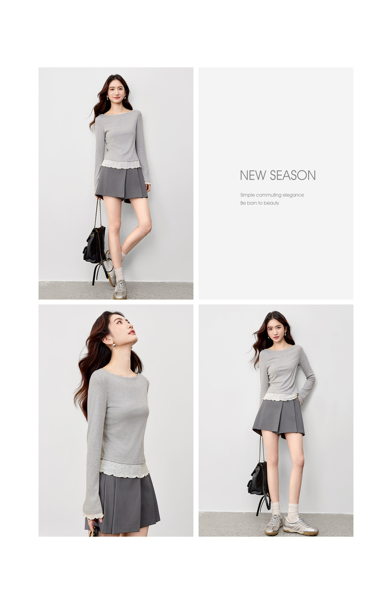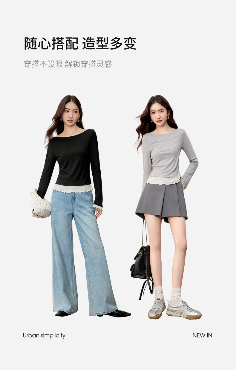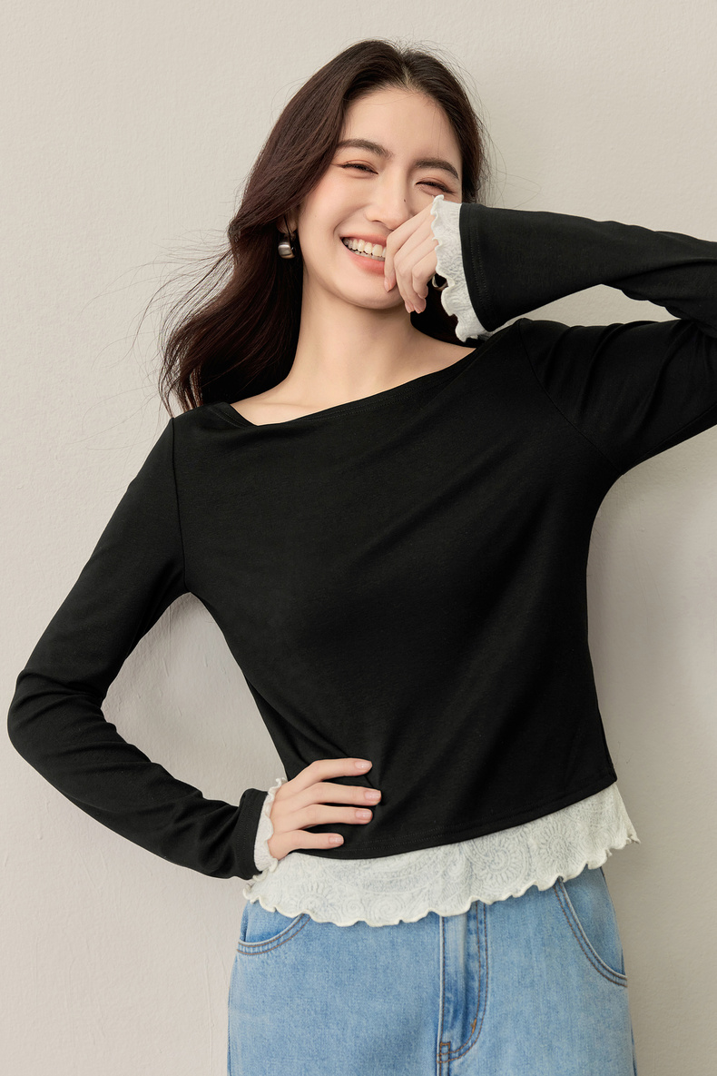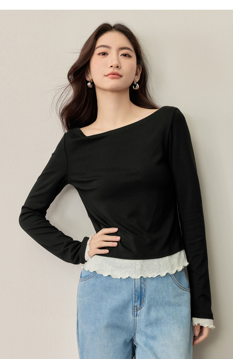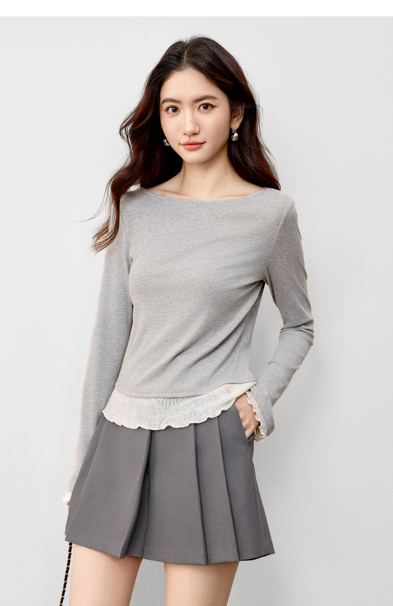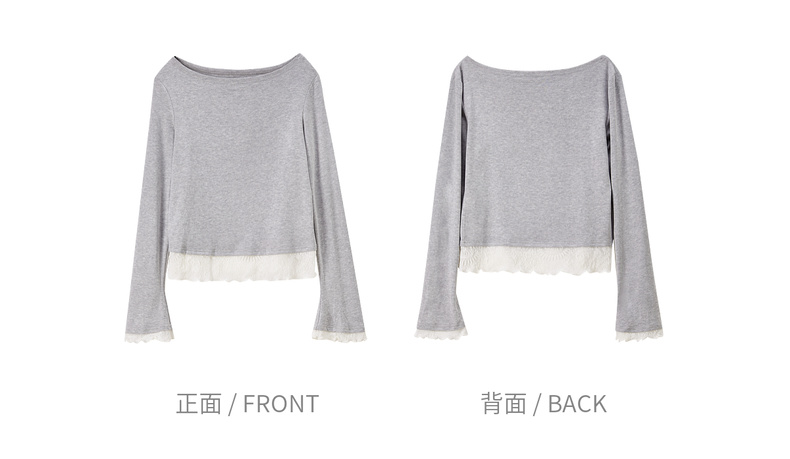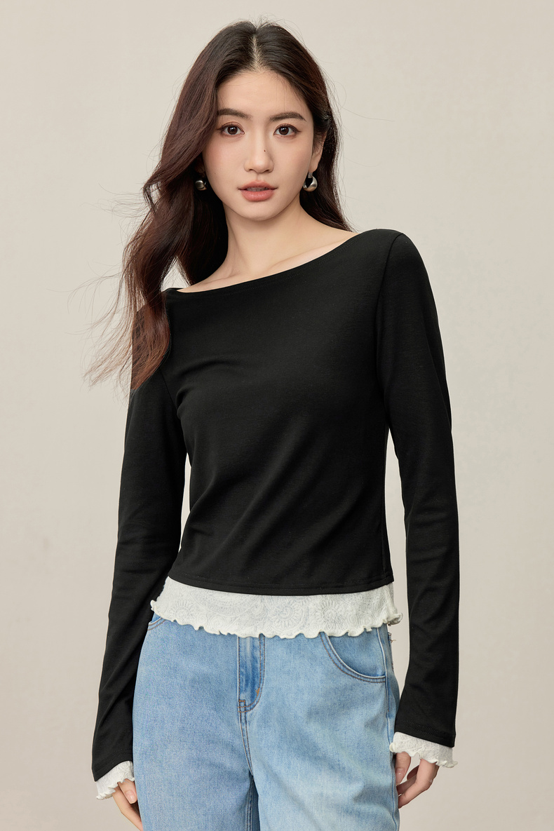 【内购】【撞色拼接】优雅通勤一字船领拼撞色微喇叭袖修身弹力打底针织衫-153SH2838