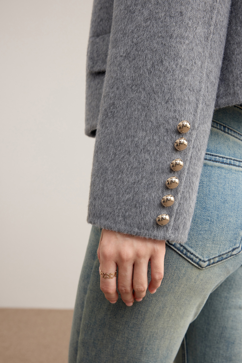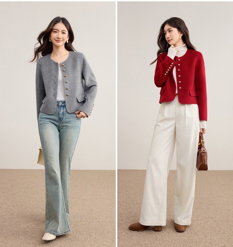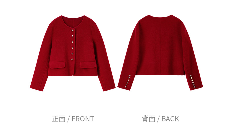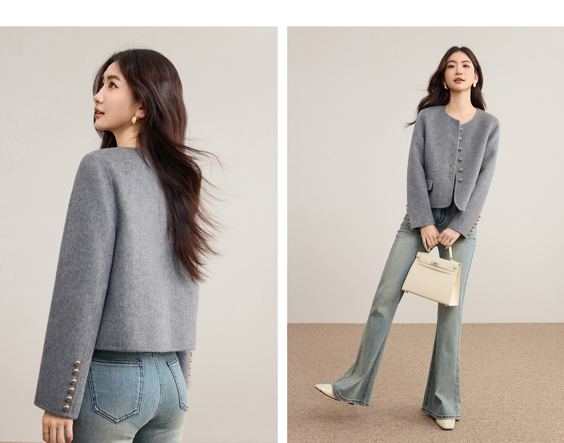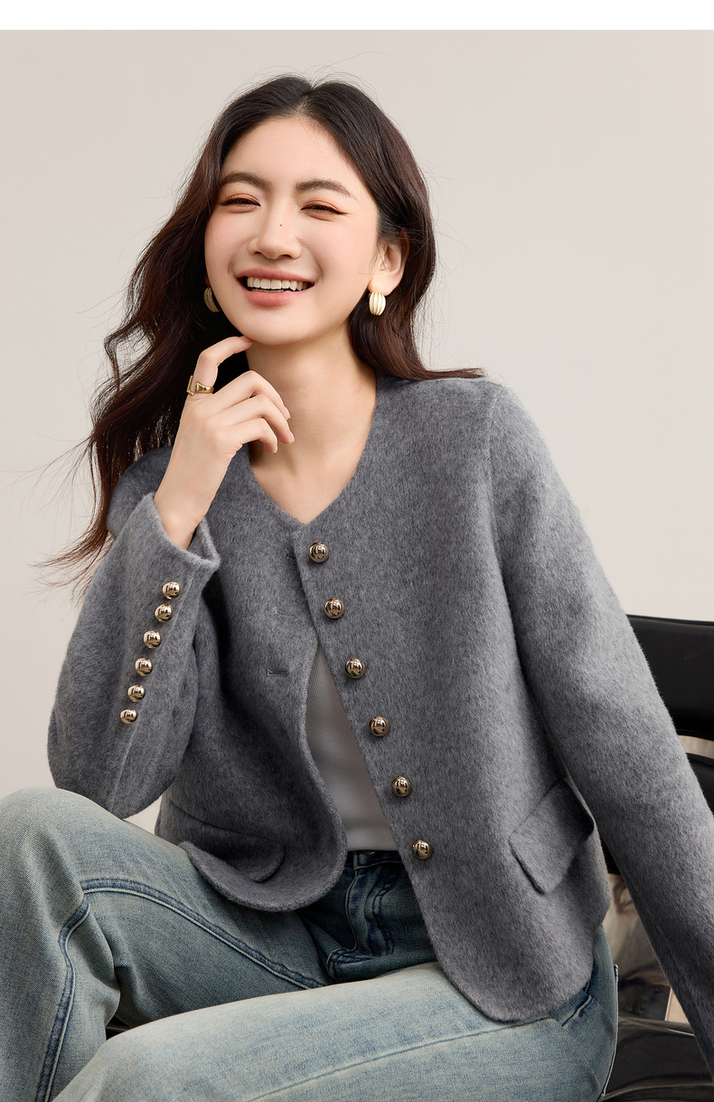 【内购】【100%绵羊毛】优雅气质通勤圆领金属蘑菇扣长袖厚保暖双面呢外套-W54OG3691X