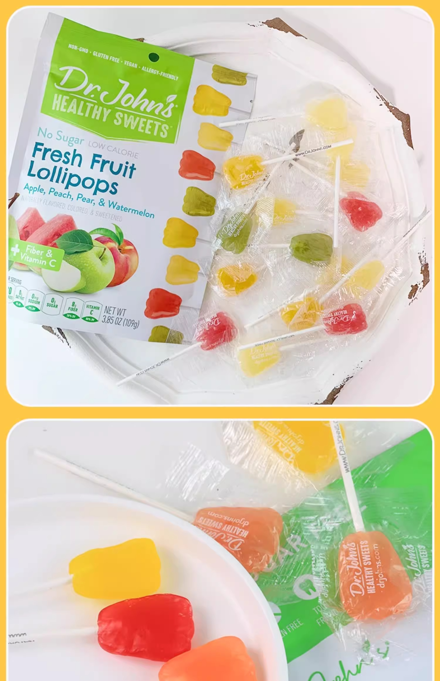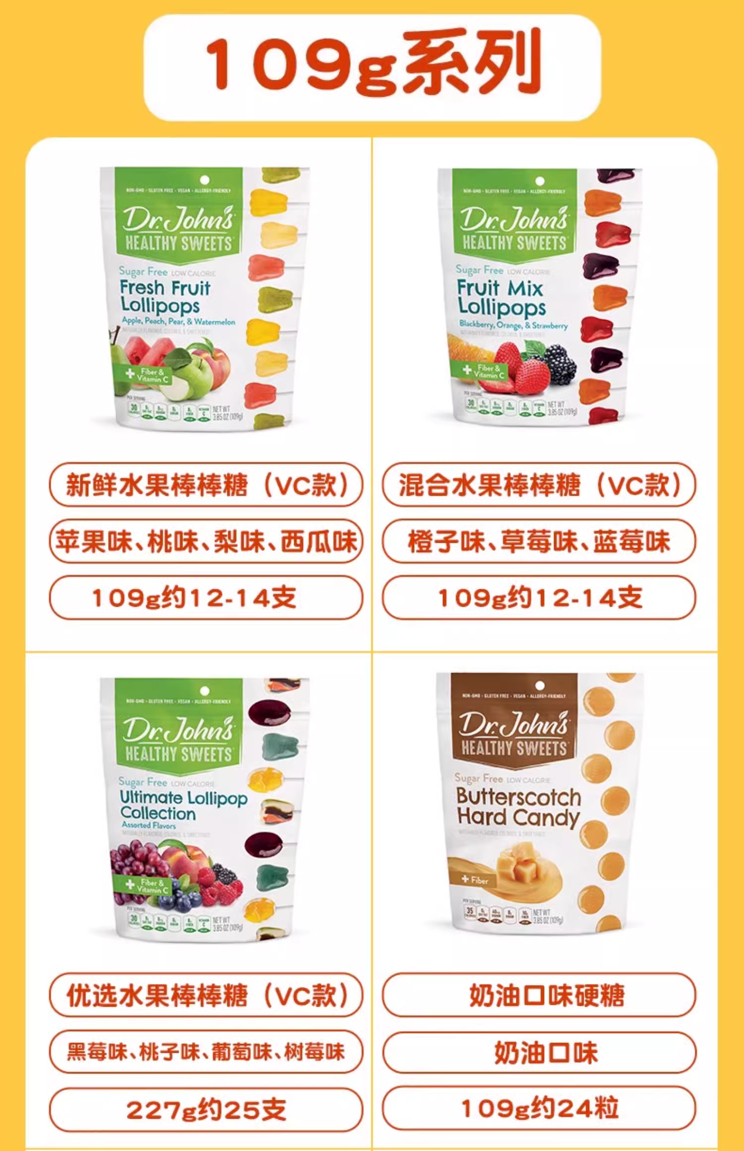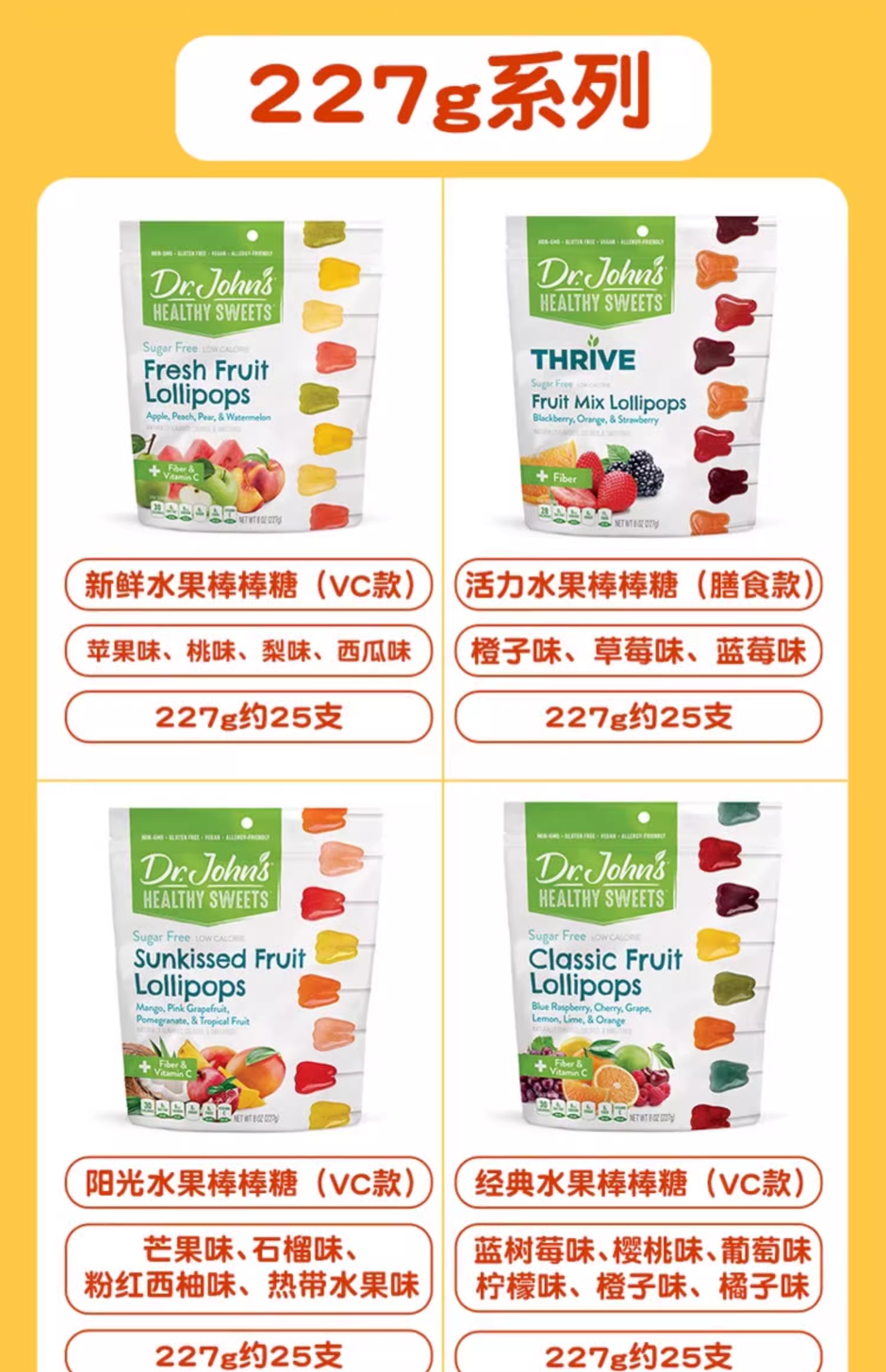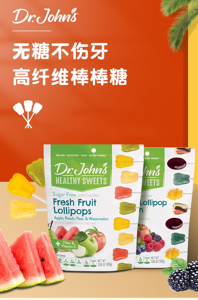 1岁+美国Dr.John's约翰博士 混合水果牙齿棒棒糖(含维生素C)