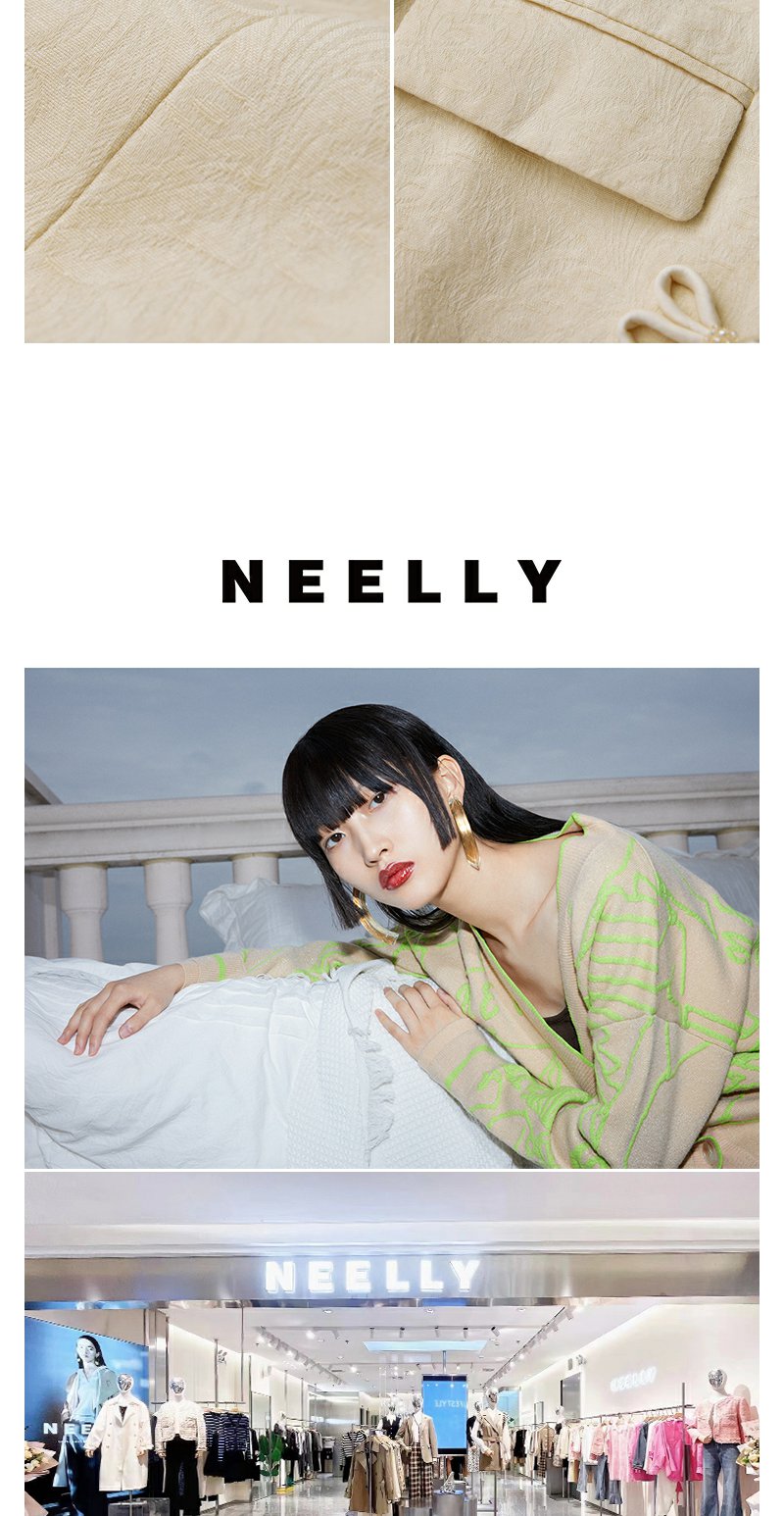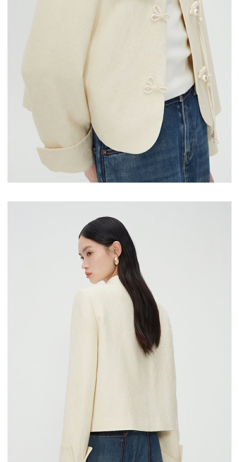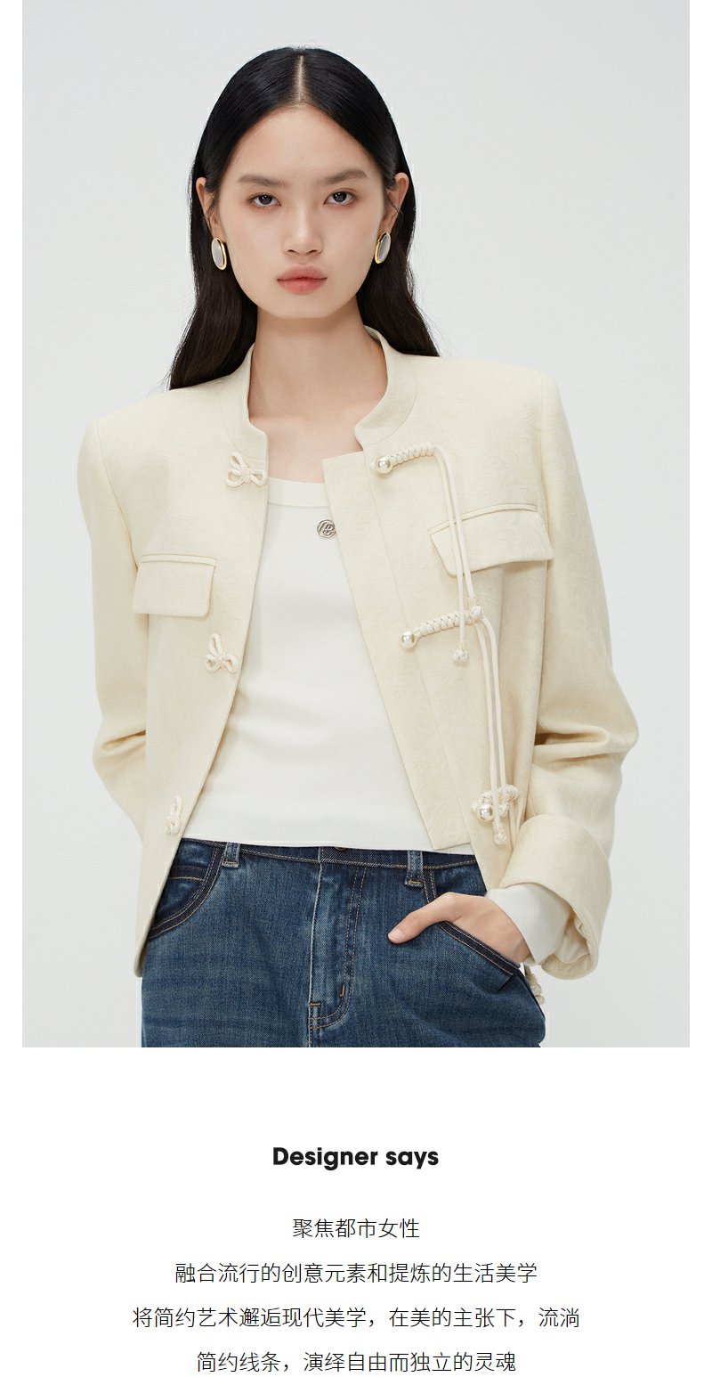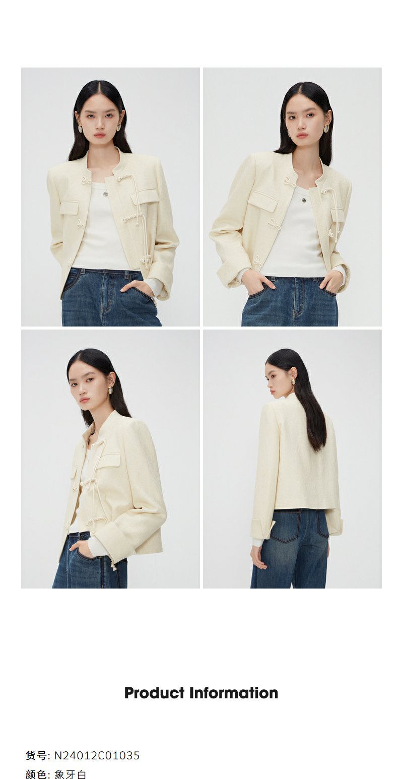 NEELLY纳俪商场同款新中式立领盘扣短外套女重工提花设计感上衣N24012C01035