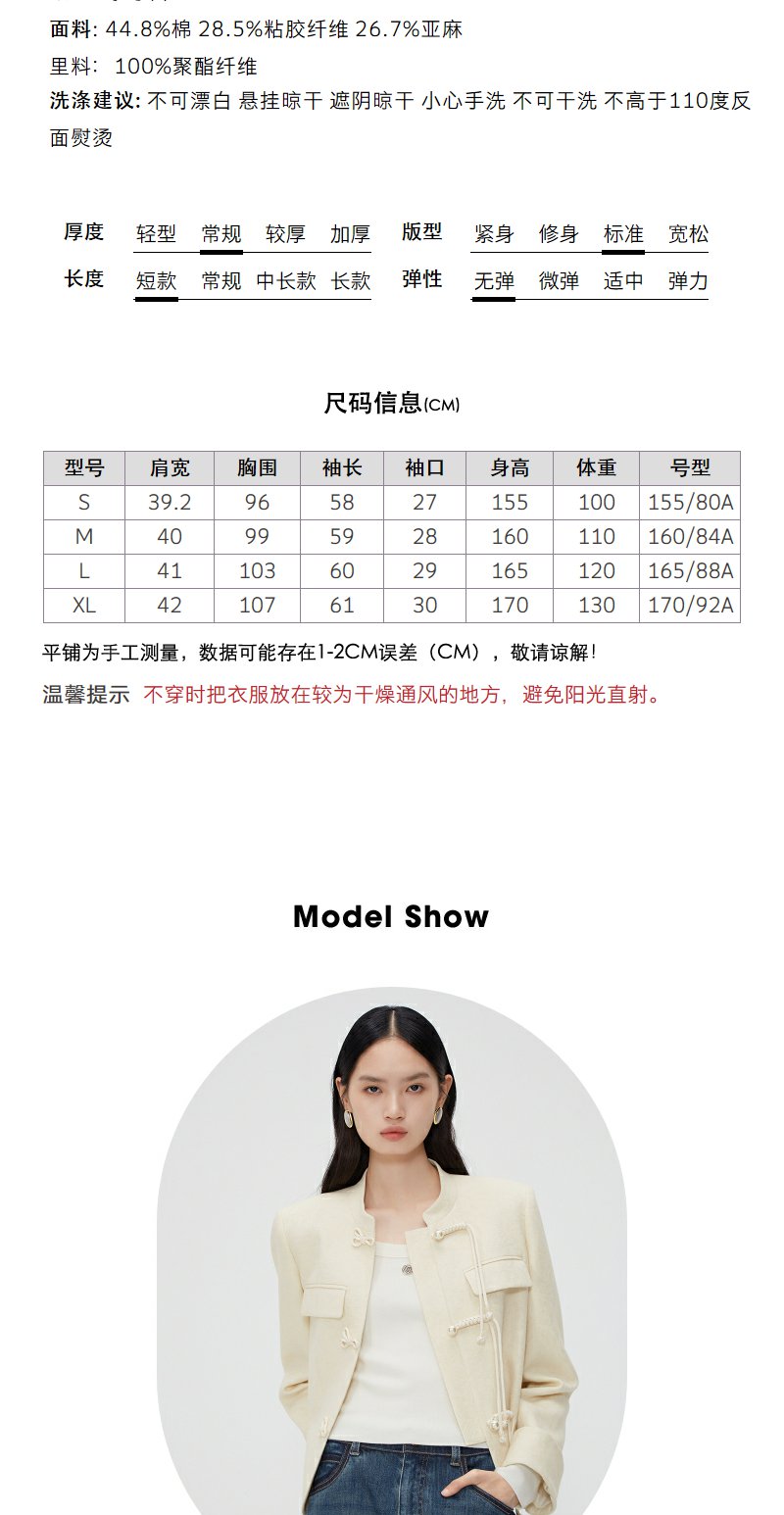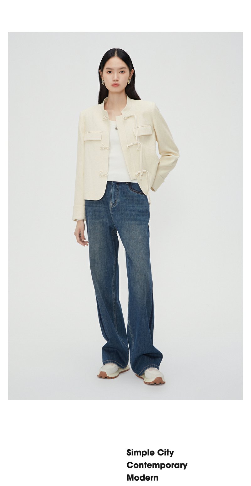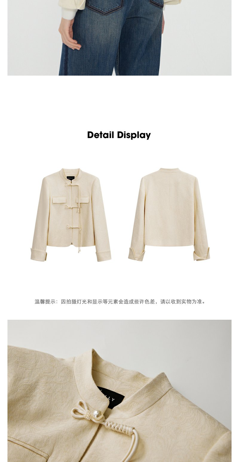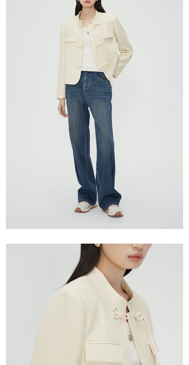 NEELLY纳俪商场同款新中式立领盘扣短外套女重工提花设计感上衣N24012C01035