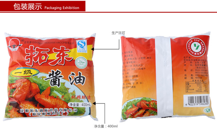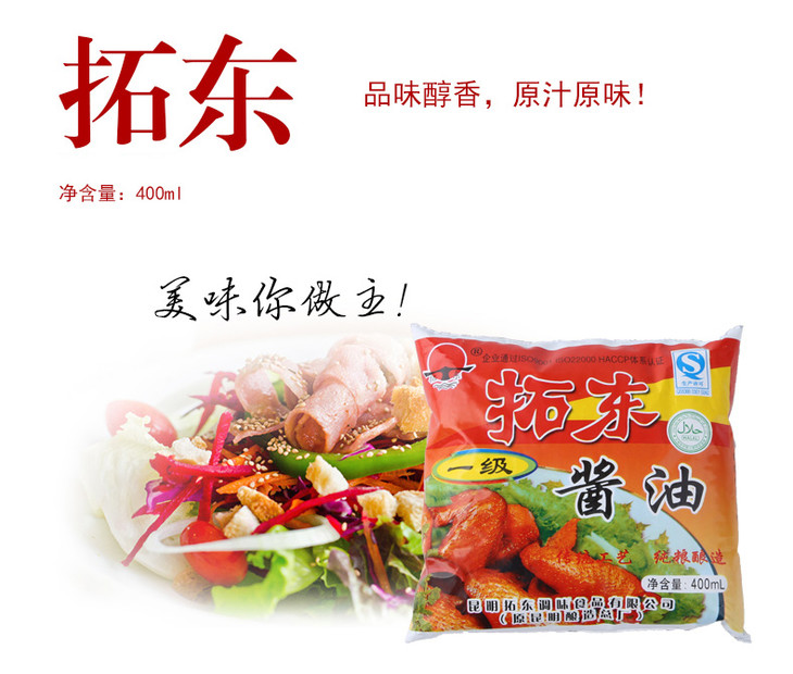 拓东一级酱油袋装400ml袋装 拓东纯酿造一级咸酱油厨房炒菜调料品佳品凉拌
