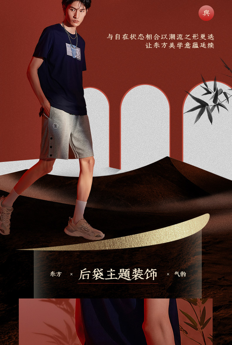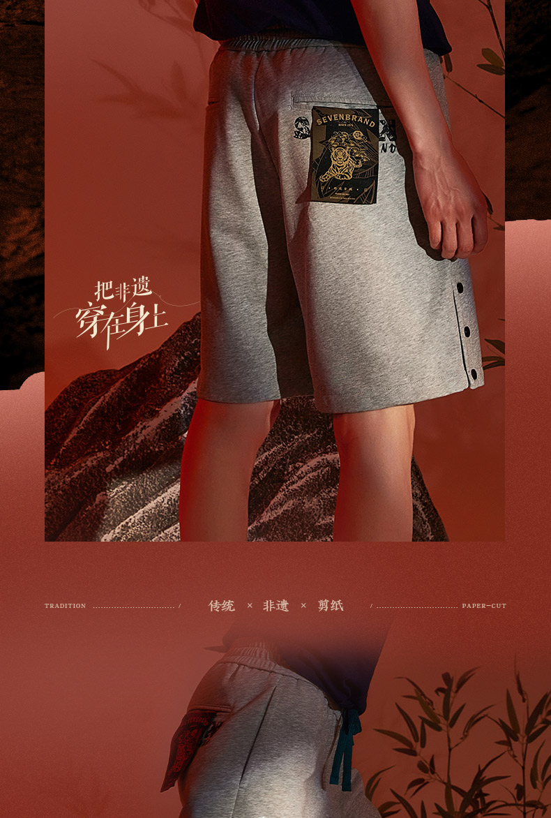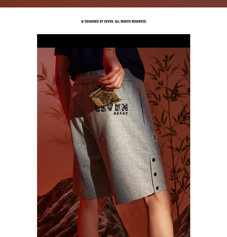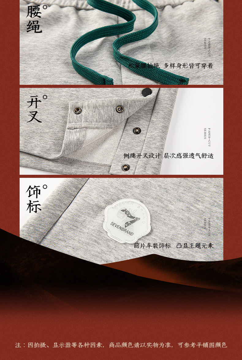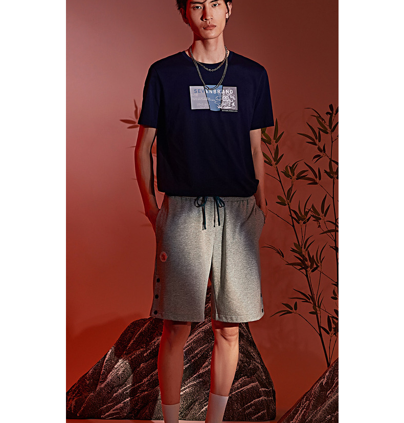 【非遗剪纸】柒牌卫裤男夏季新款运动休闲直筒裤男生松紧抽绳短裤 124H72070