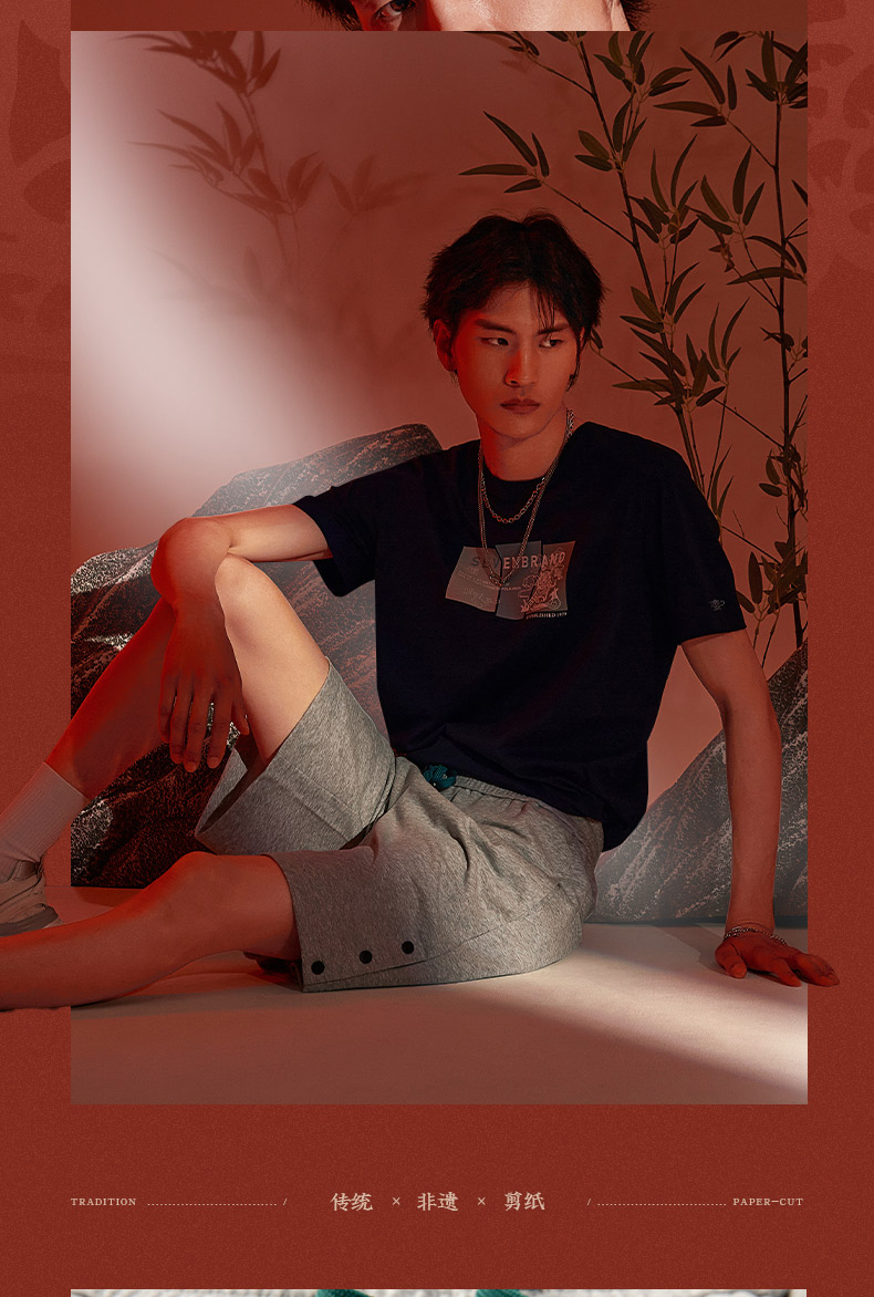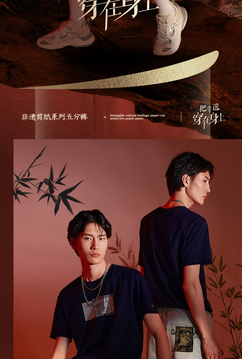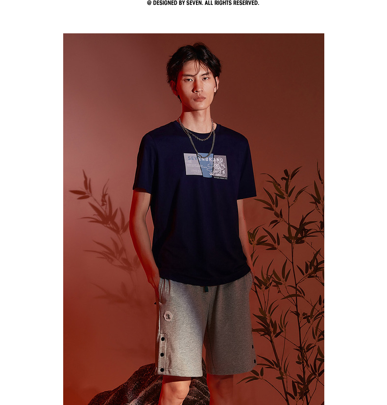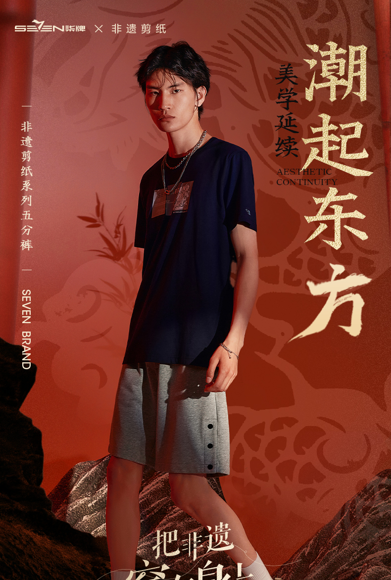 【非遗剪纸】柒牌卫裤男夏季新款运动休闲直筒裤男生松紧抽绳短裤 124H72070