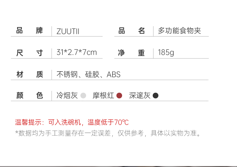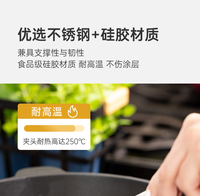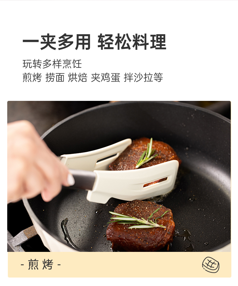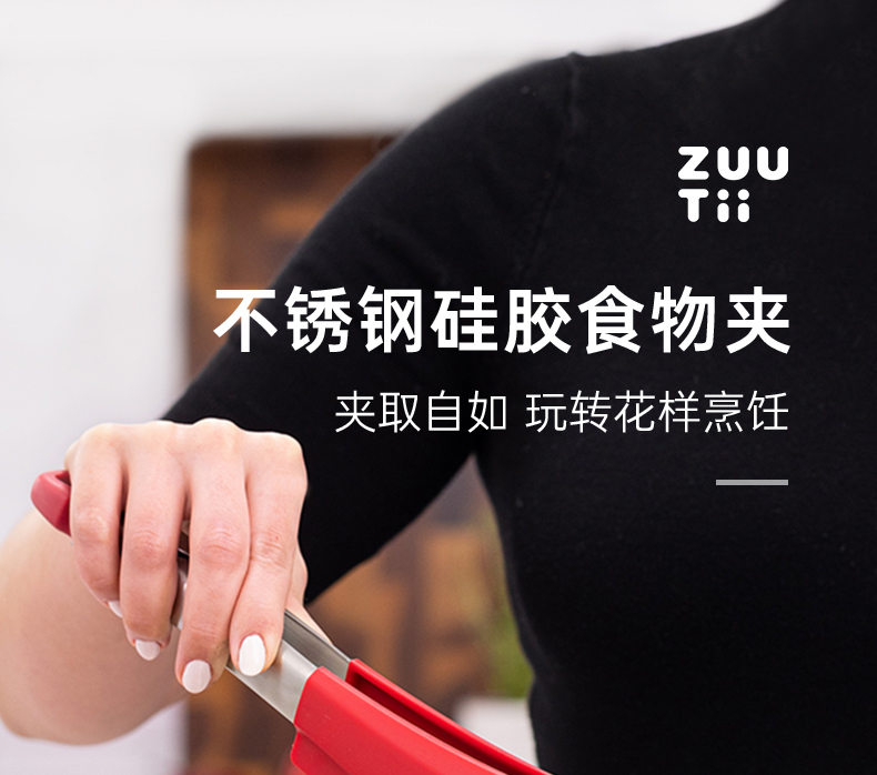 ZUUTii料理夹防烫牛排夹烧烤煎烤夹炒菜夹耐高温不粘锅硅胶不锈钢
