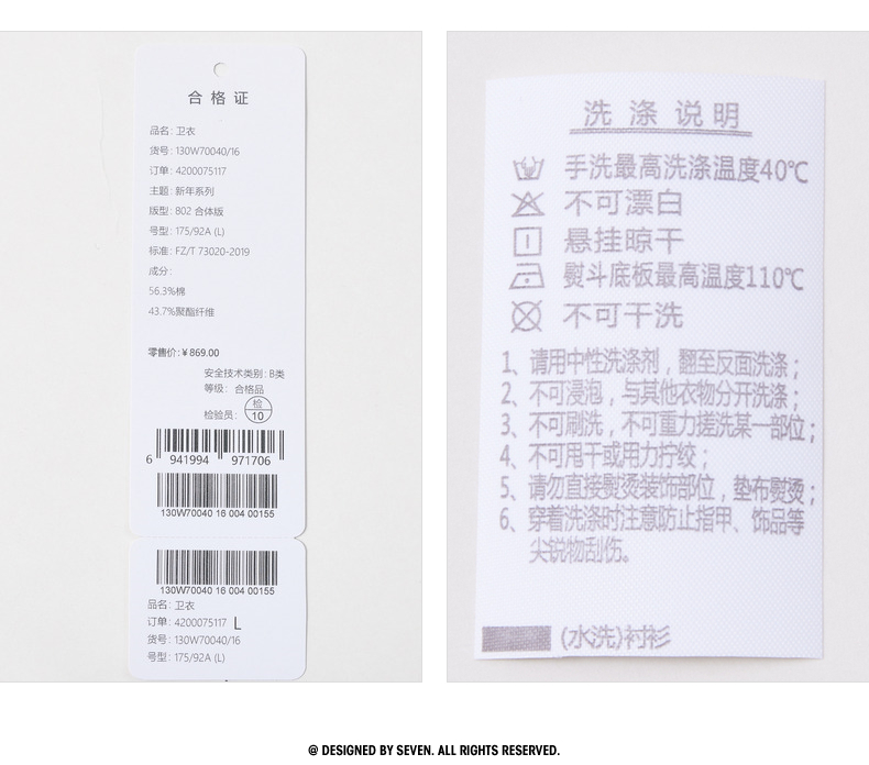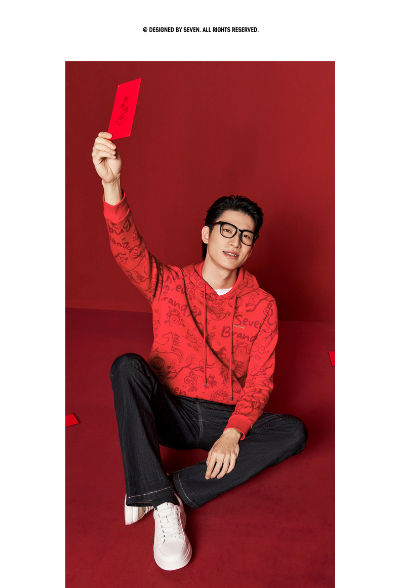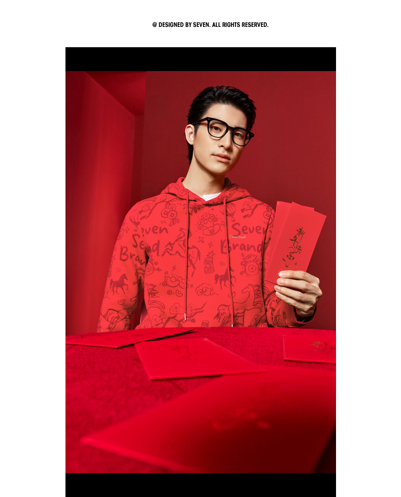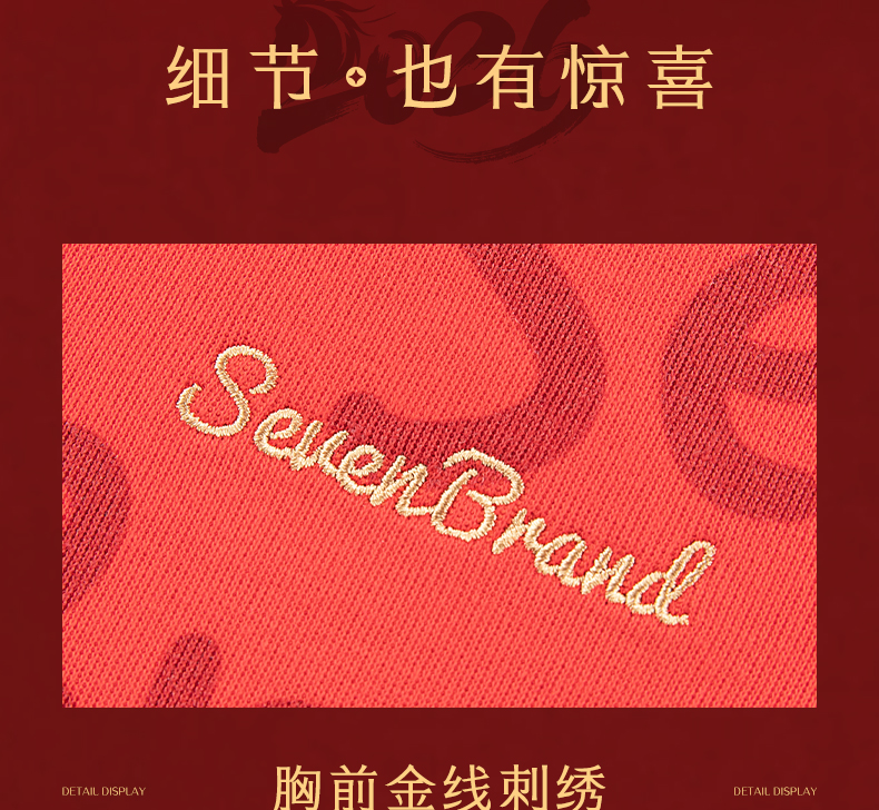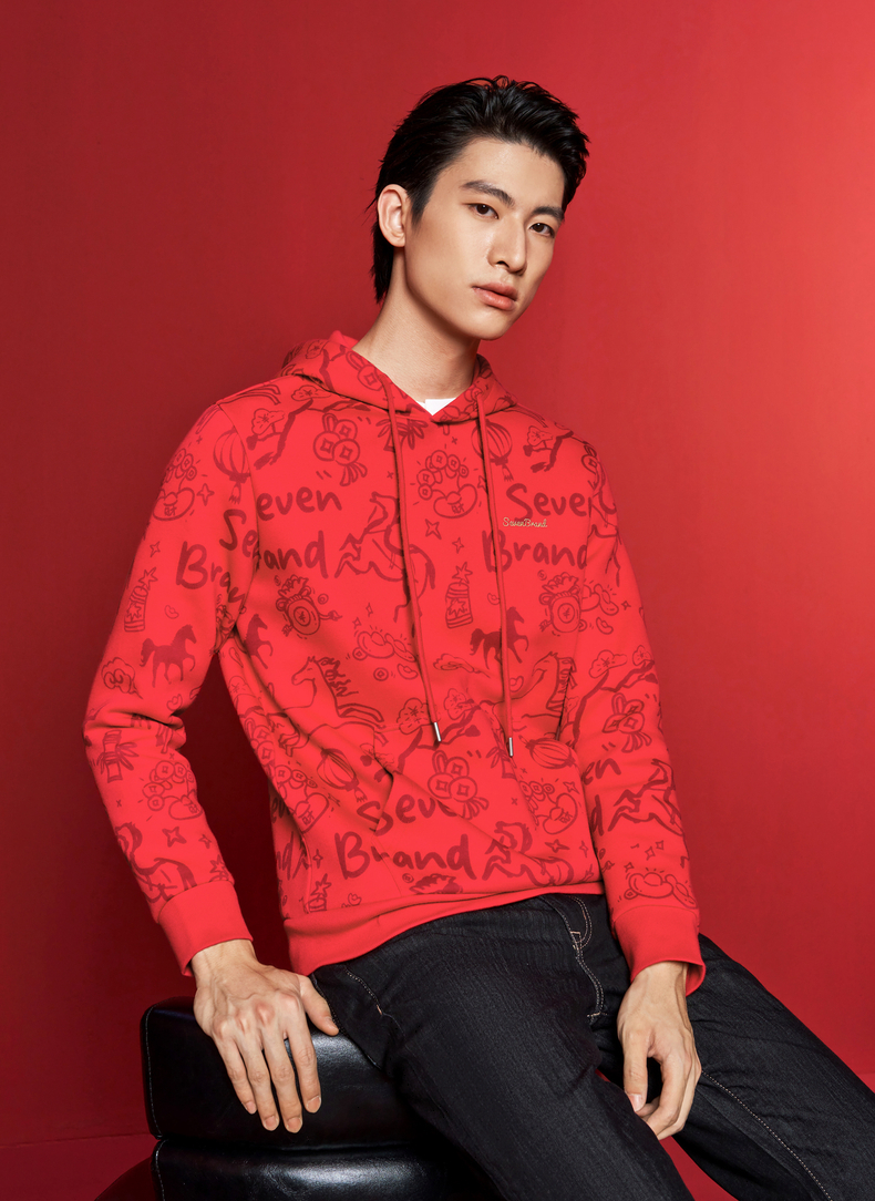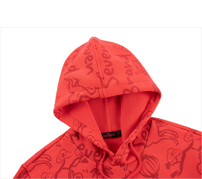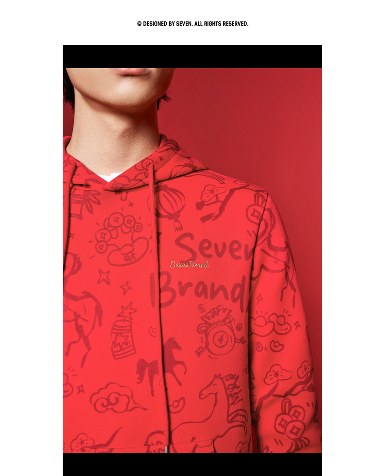 【新年系列】柒牌男装2026帽领弹力厚满印刺绣新疆棉长袖套头卫衣130W70040