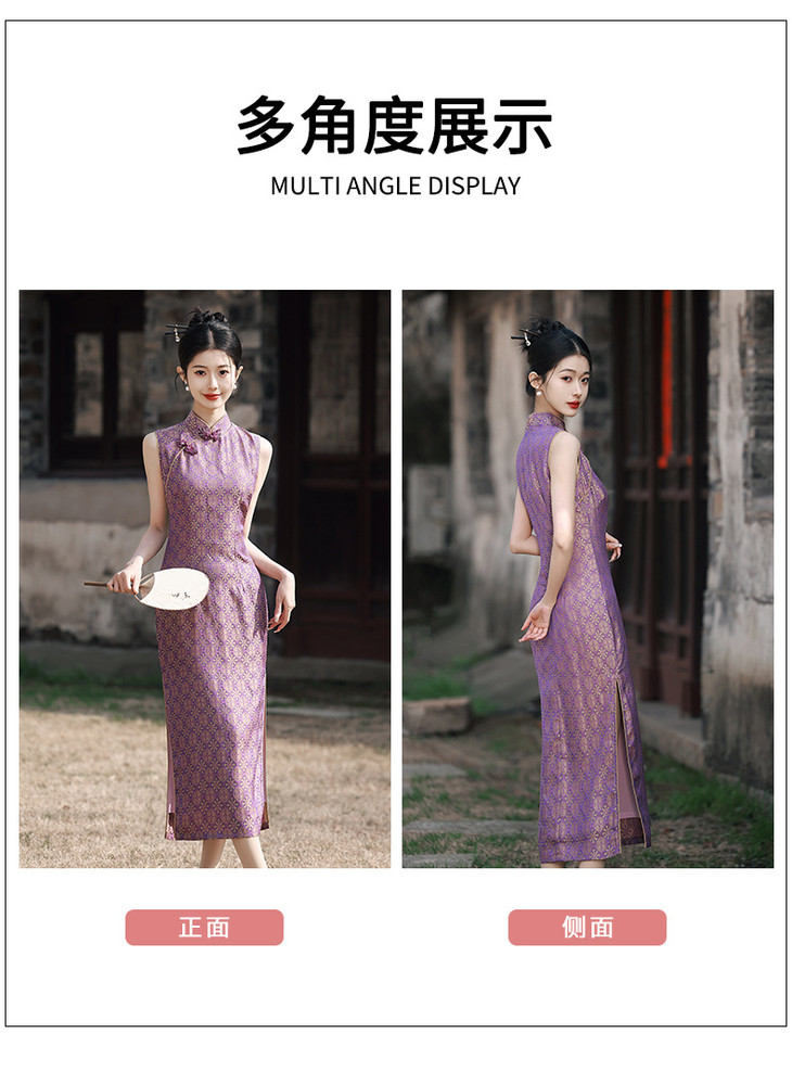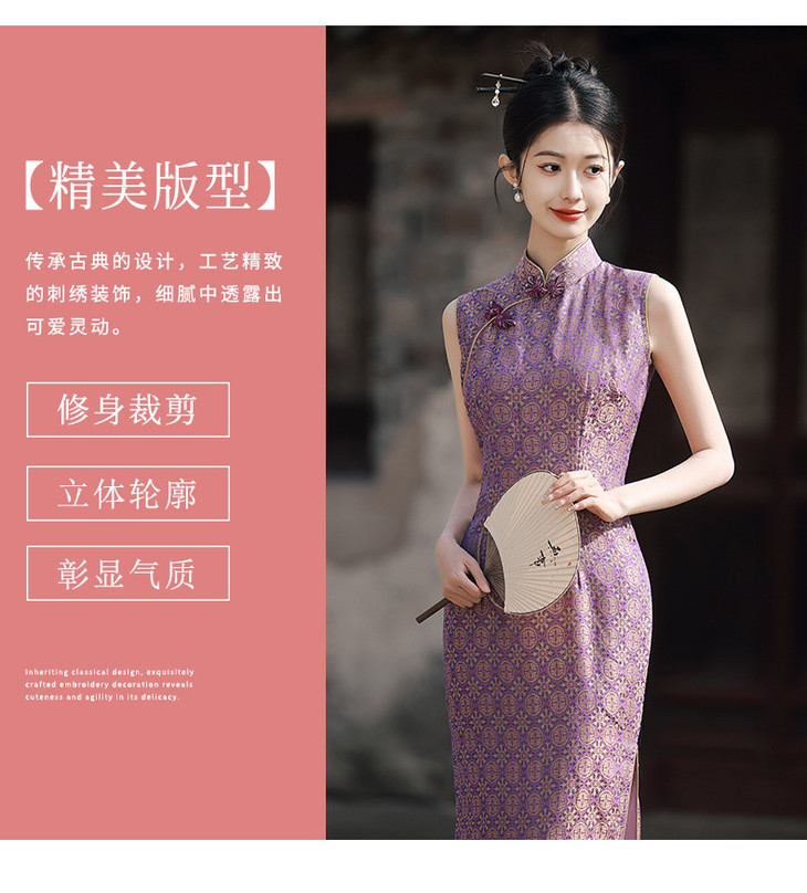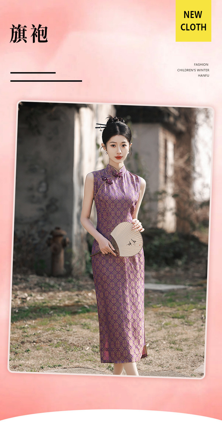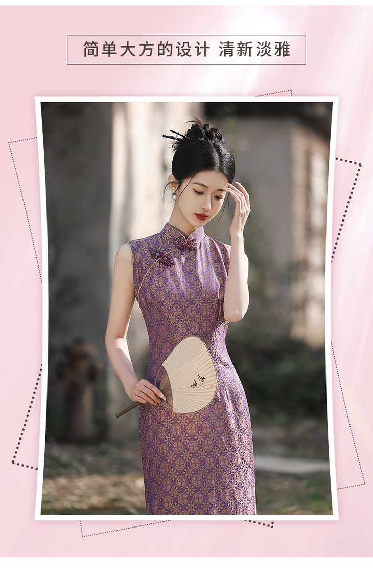 改良旗袍少女气质紫色提花无袖GR1012