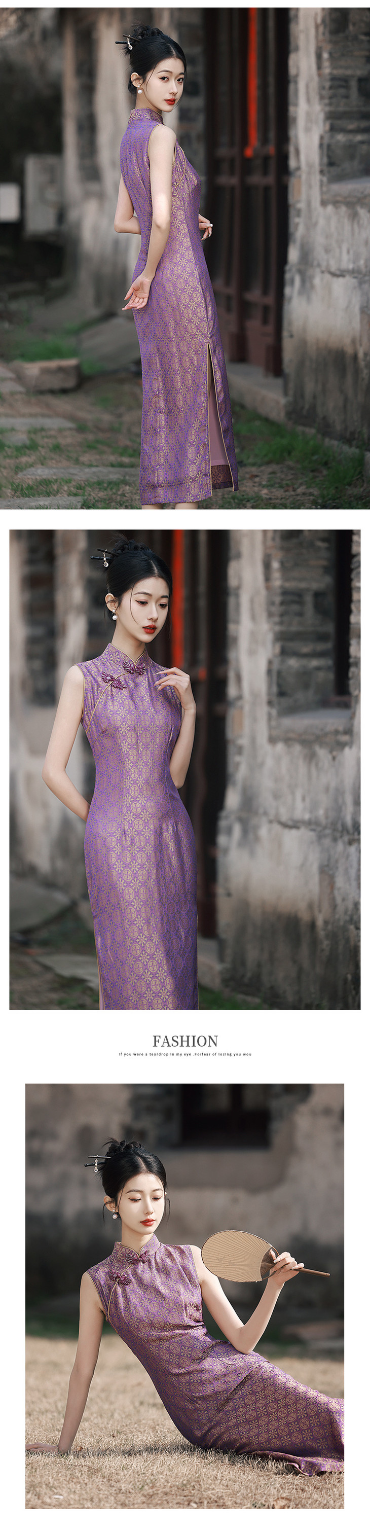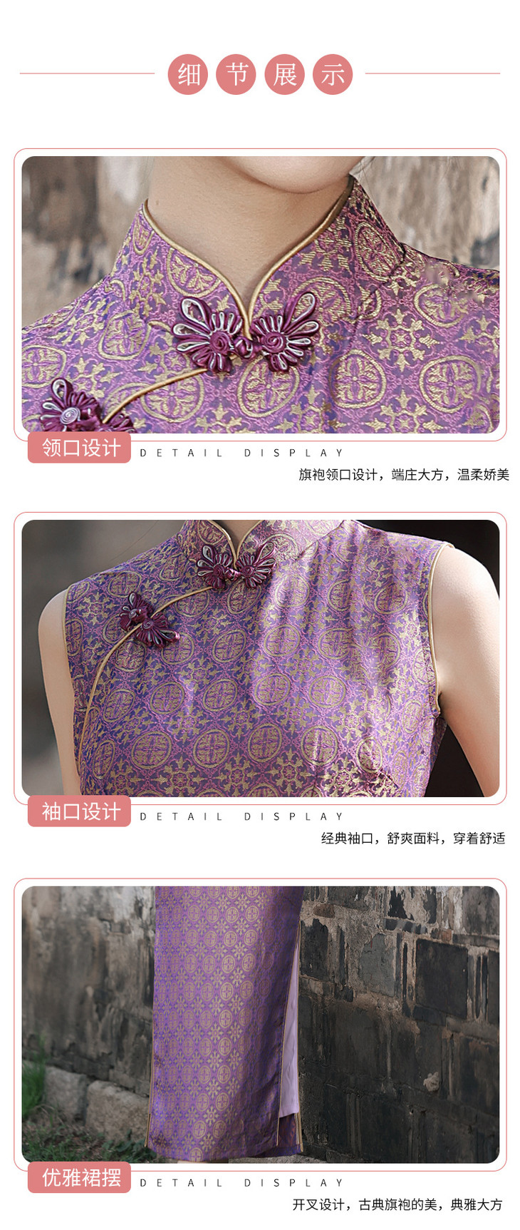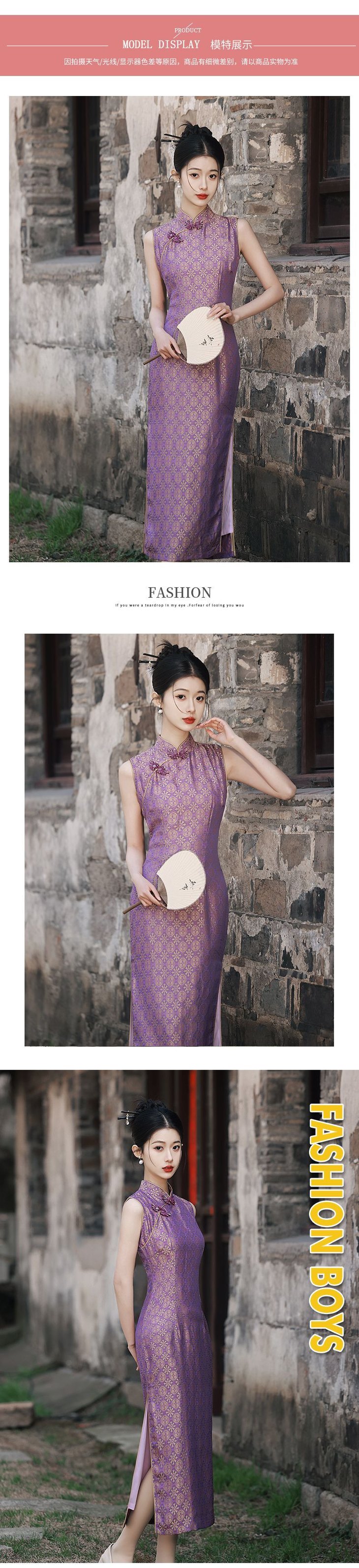 改良旗袍少女气质紫色提花无袖GR1012