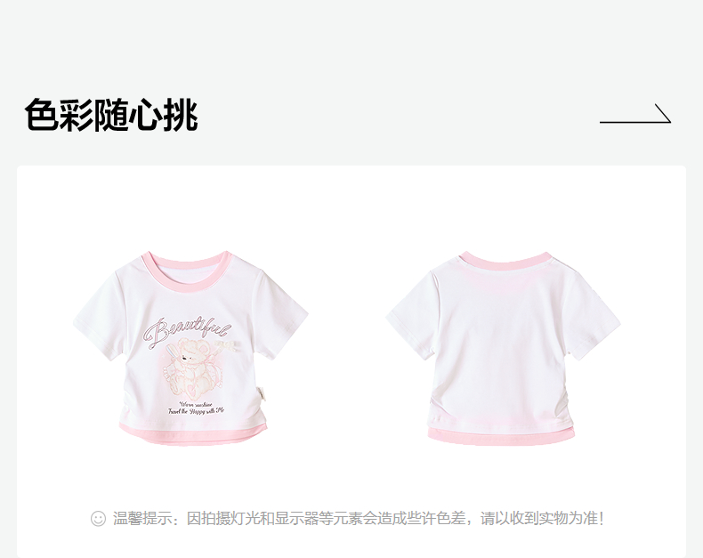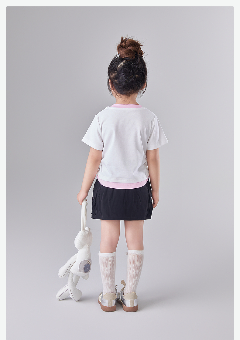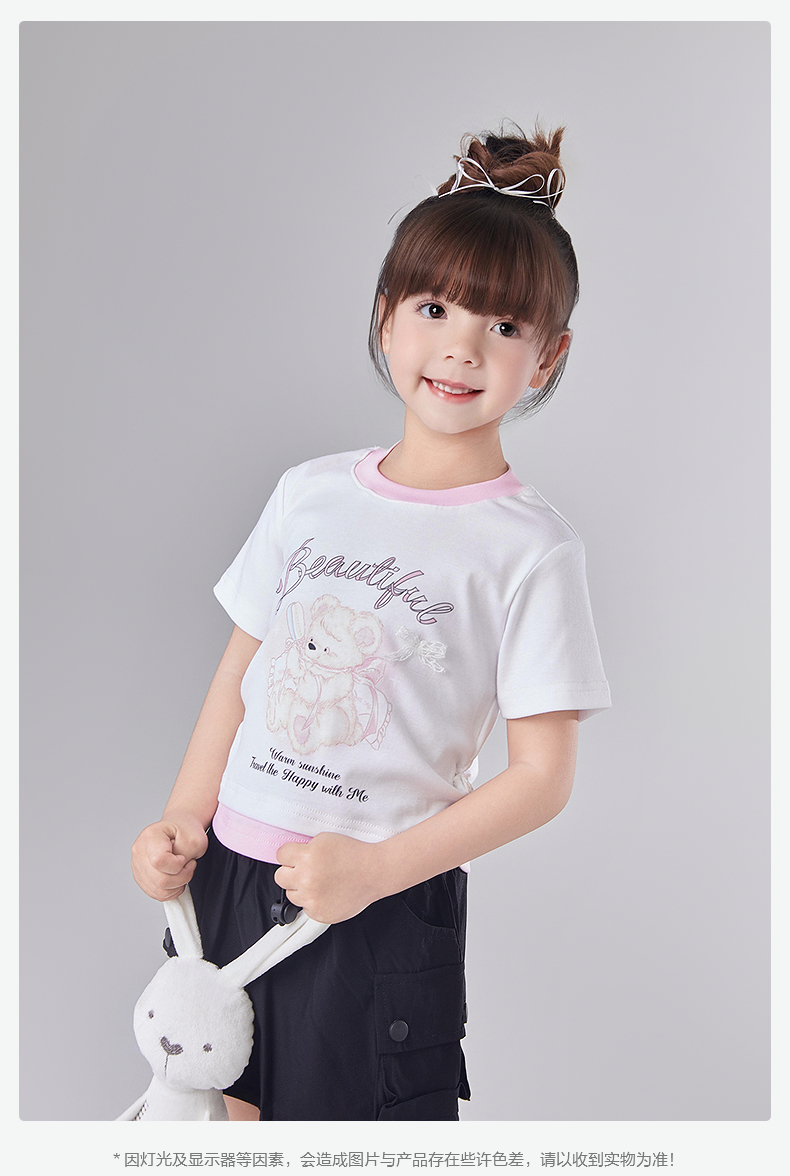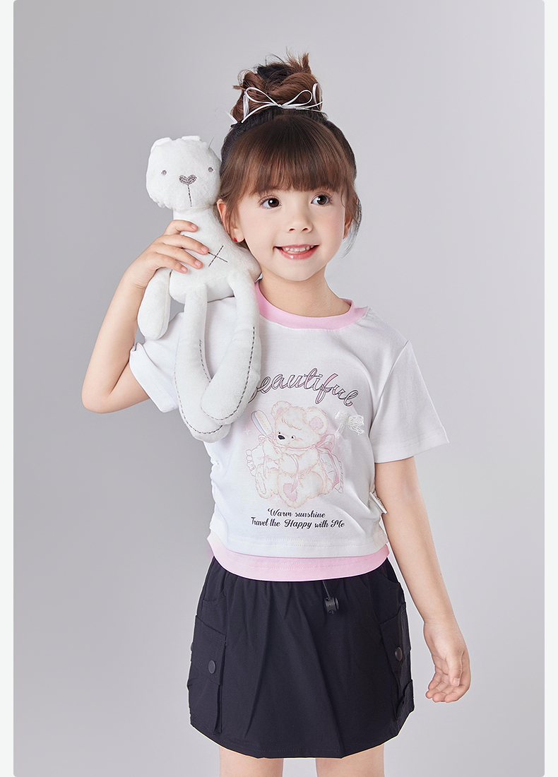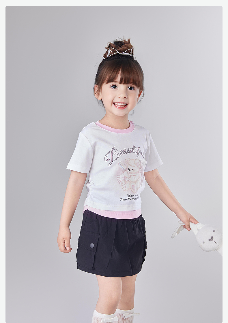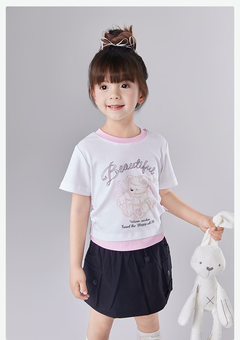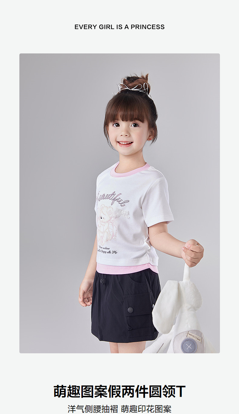 笛莎Deesha 童装女童T恤2025夏新款女童萌趣图案假两件圆领T恤
