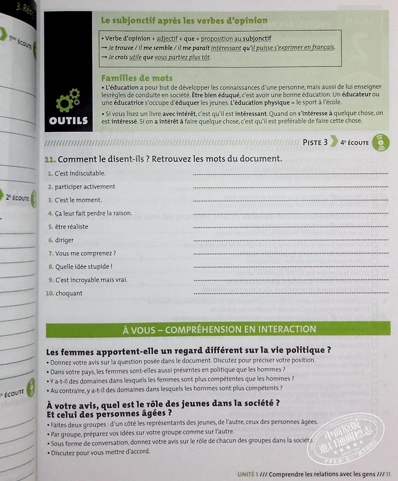 一本针对青少年和成年人的法语听力理解书,属于Compétences系列,级别为3级(B2)。