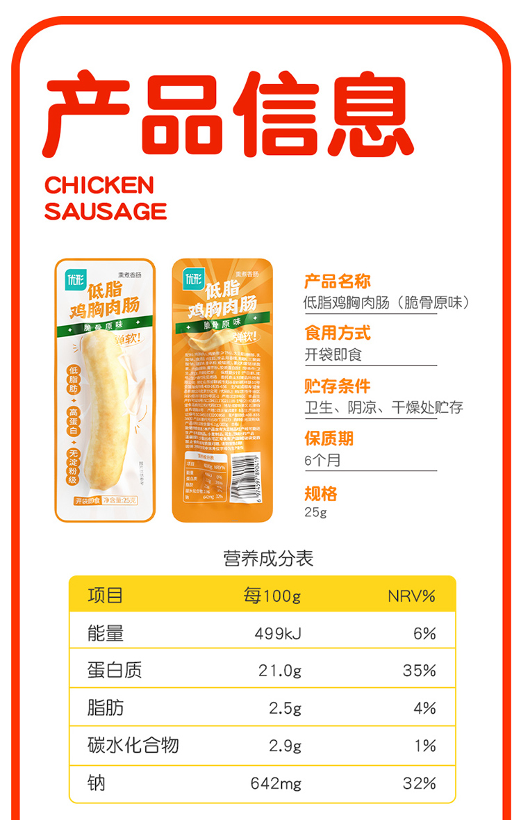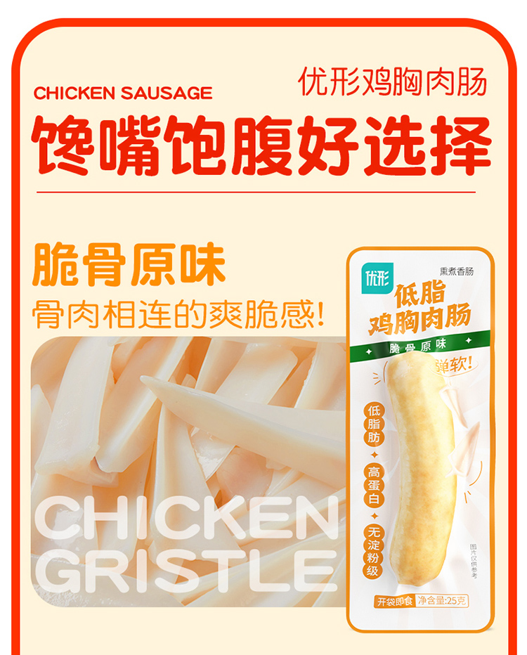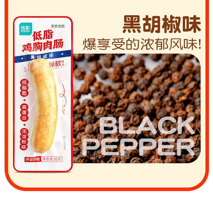 优形低脂鸡胸肉肠 黑胡椒/原味脆骨等口味 常温储存 200g*4袋