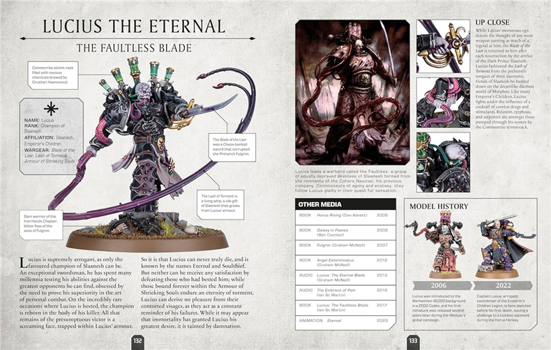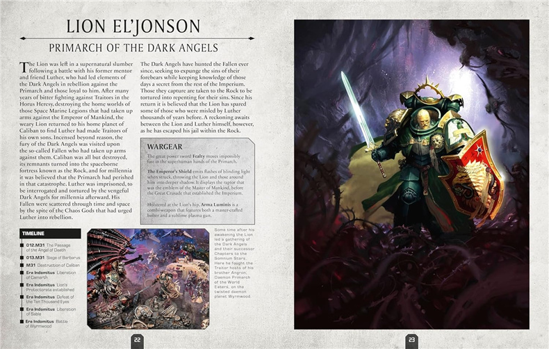 Featuring more than 120 characters from the 41st Millennium, this character encyclopedia is a perfect introduction to the iconic heroes and villains of Warhammer 40,000. Each page showcases stunning photography of Games Workshop miniatures, epic artwork, and vital stats and facts on each character.