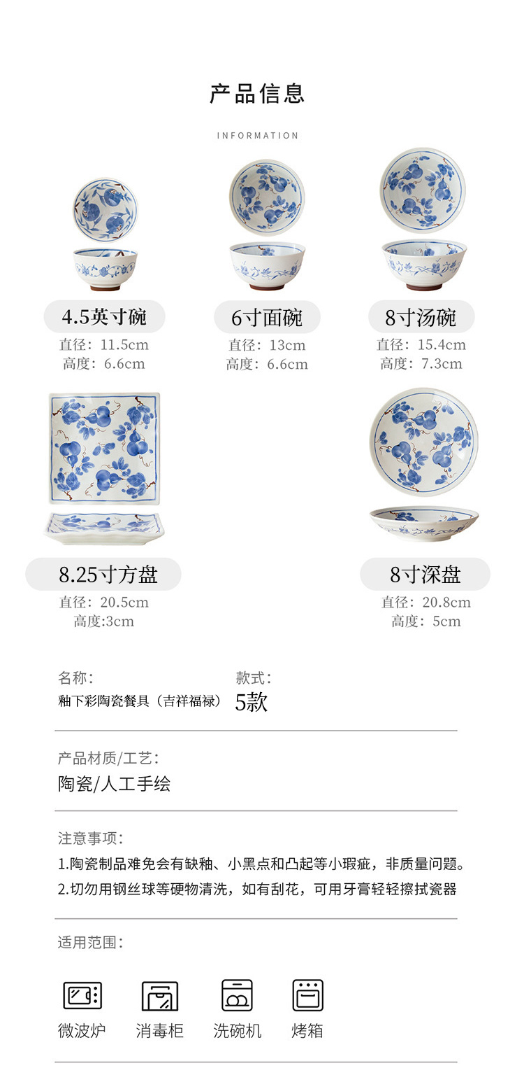 釉下彩陶瓷餐具(吉祥福禄)