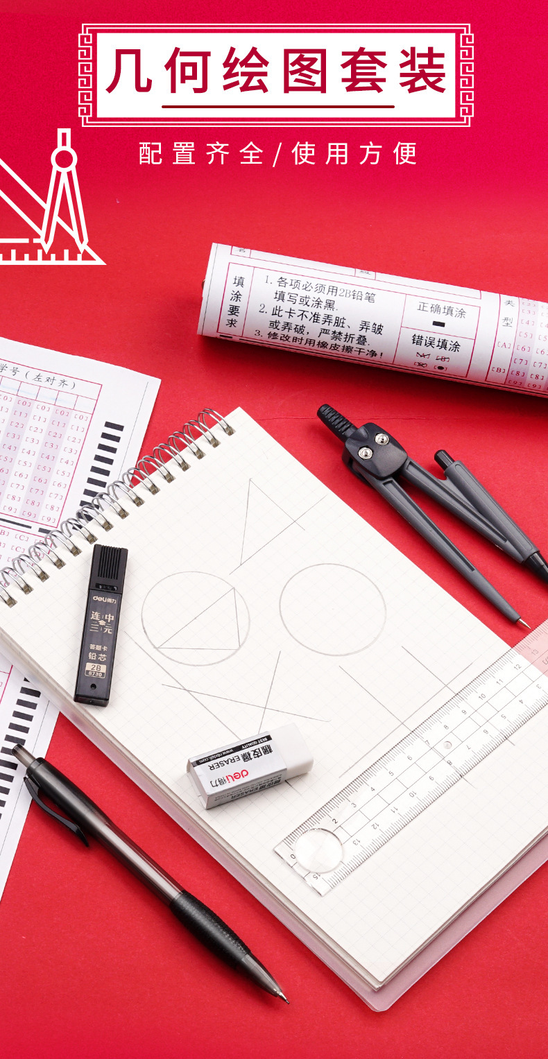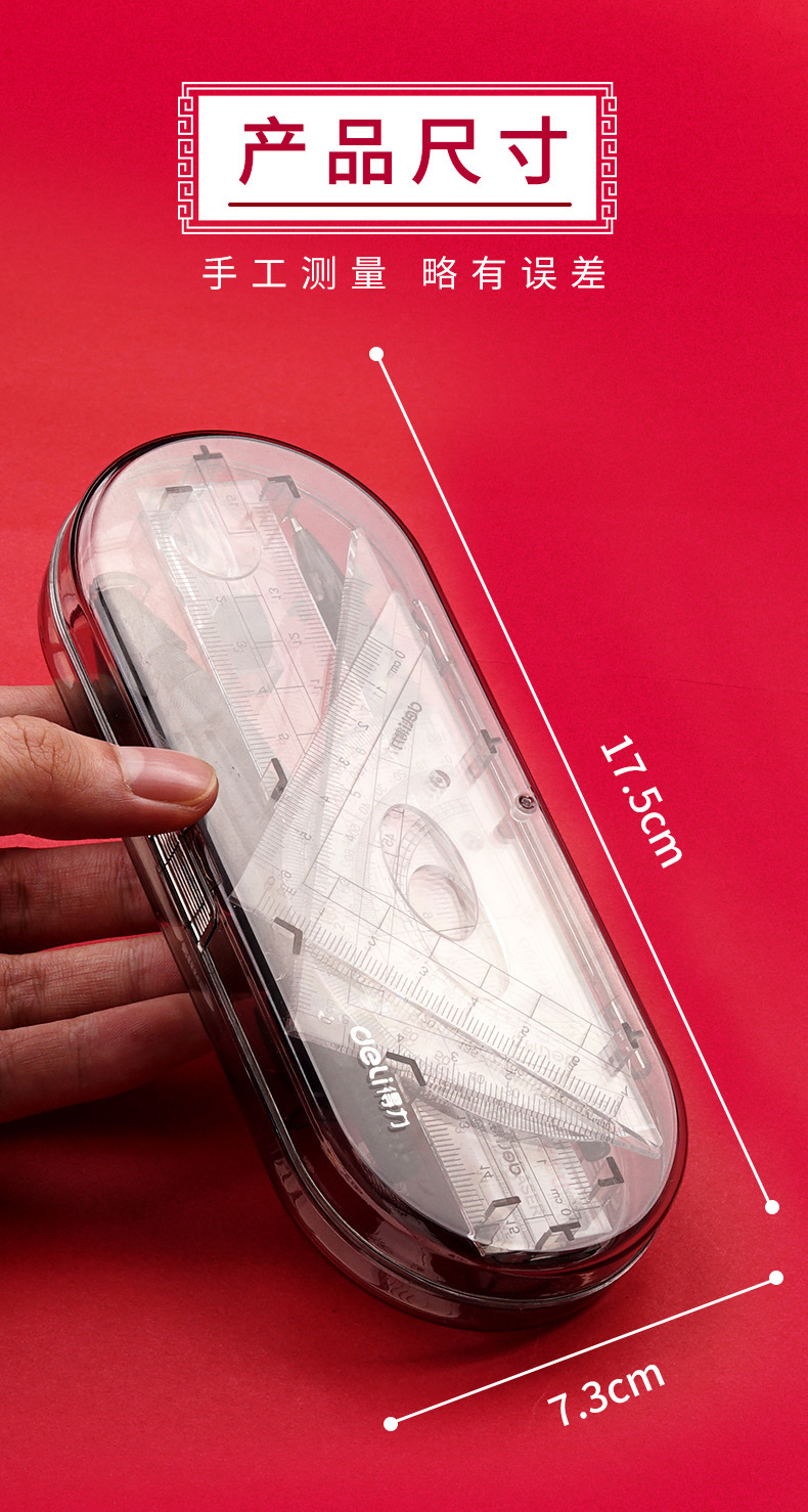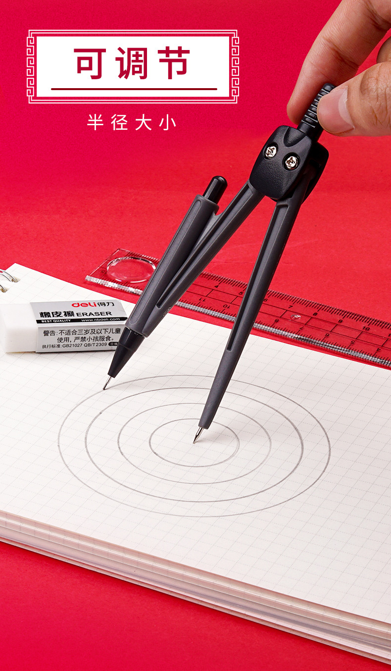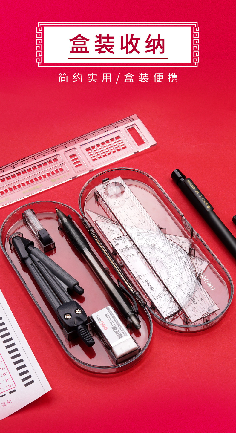 【得力圆规8件套❗简约实用】文具9591学生绘图套装绘制几何图形圆规尺规套装学生文具套尺。rh