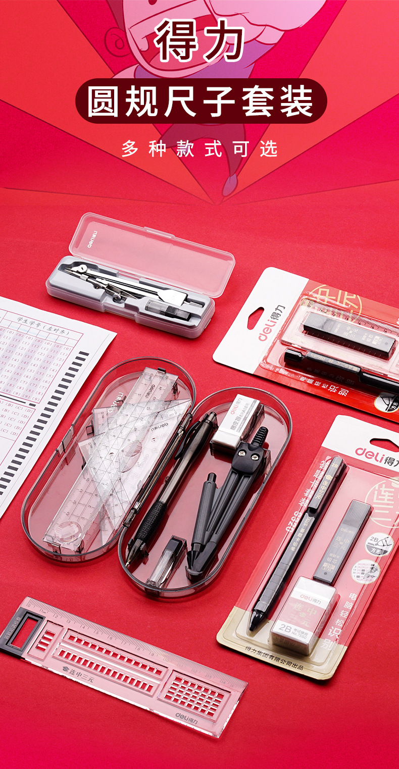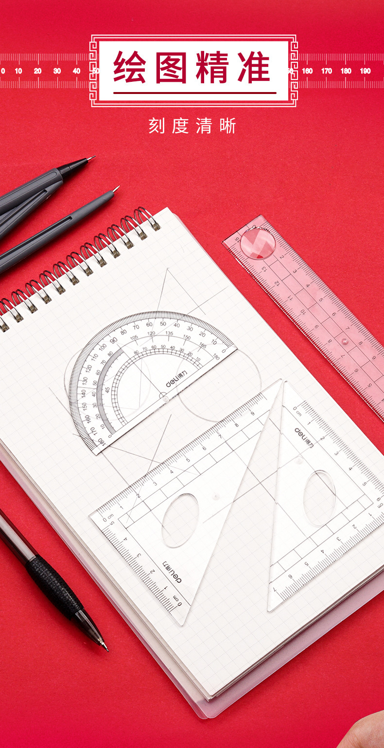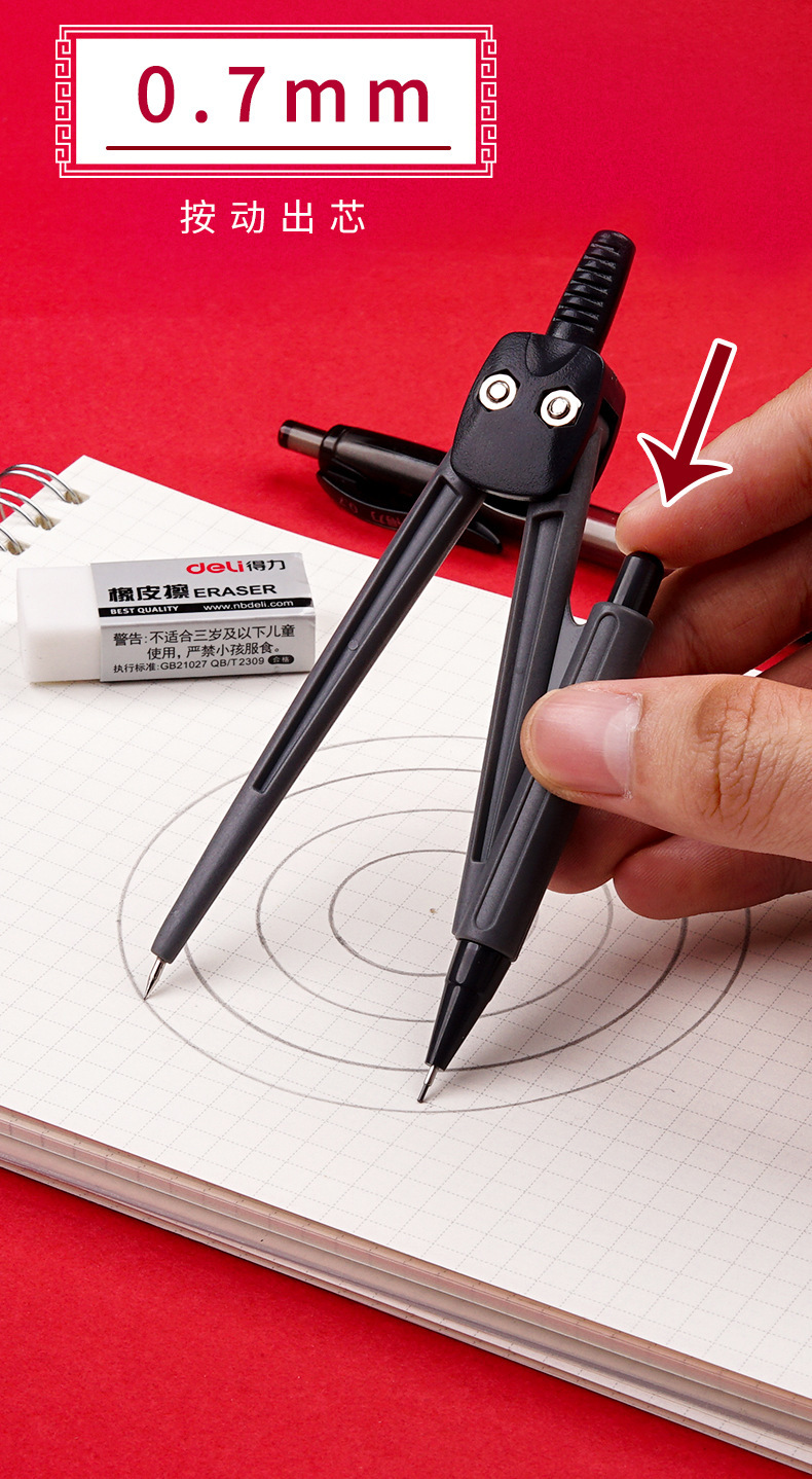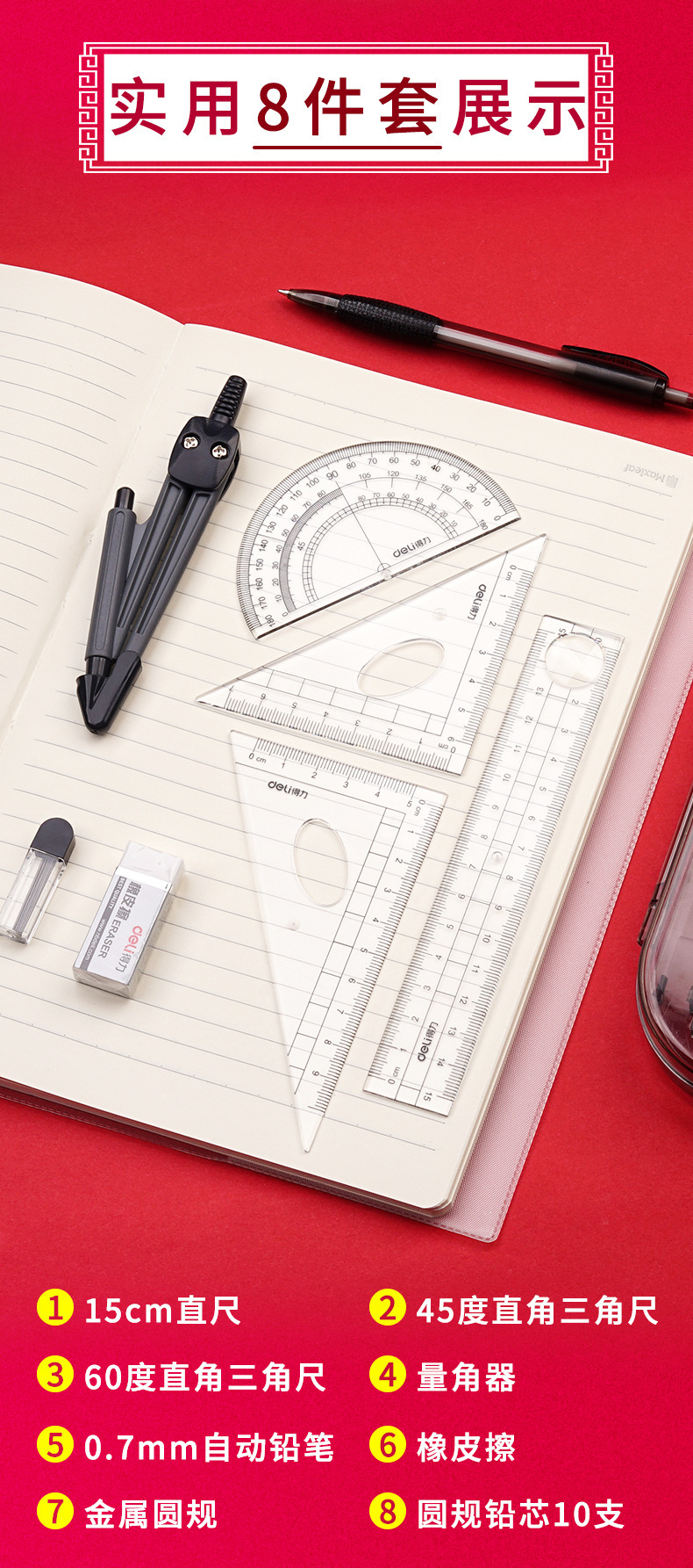 【得力圆规8件套❗简约实用】文具9591学生绘图套装绘制几何图形圆规尺规套装学生文具套尺。rh