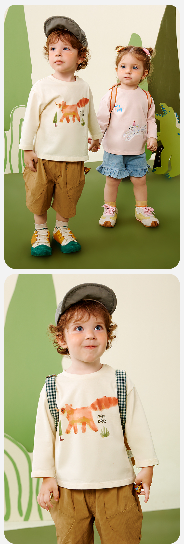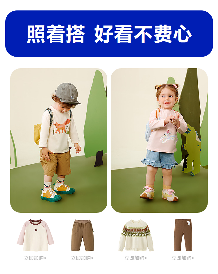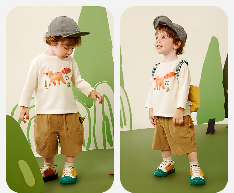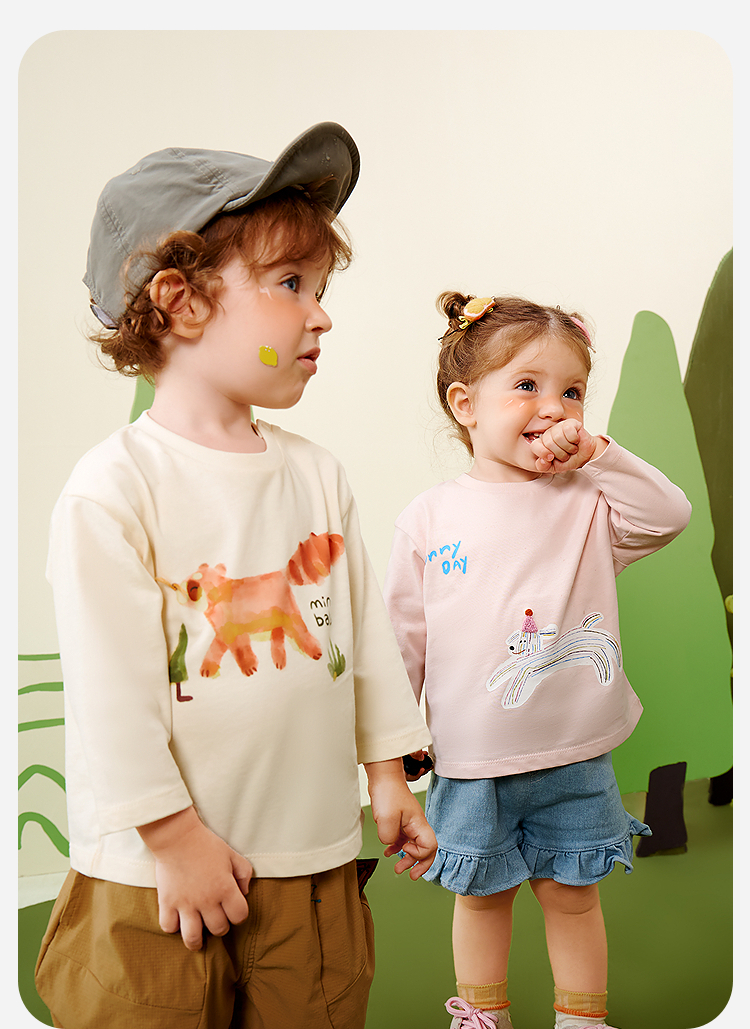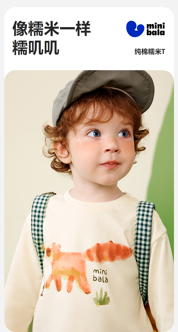 【糯米T】迷你巴拉男女童长袖T恤纯棉宝宝亲肤磨毛萌趣上衣