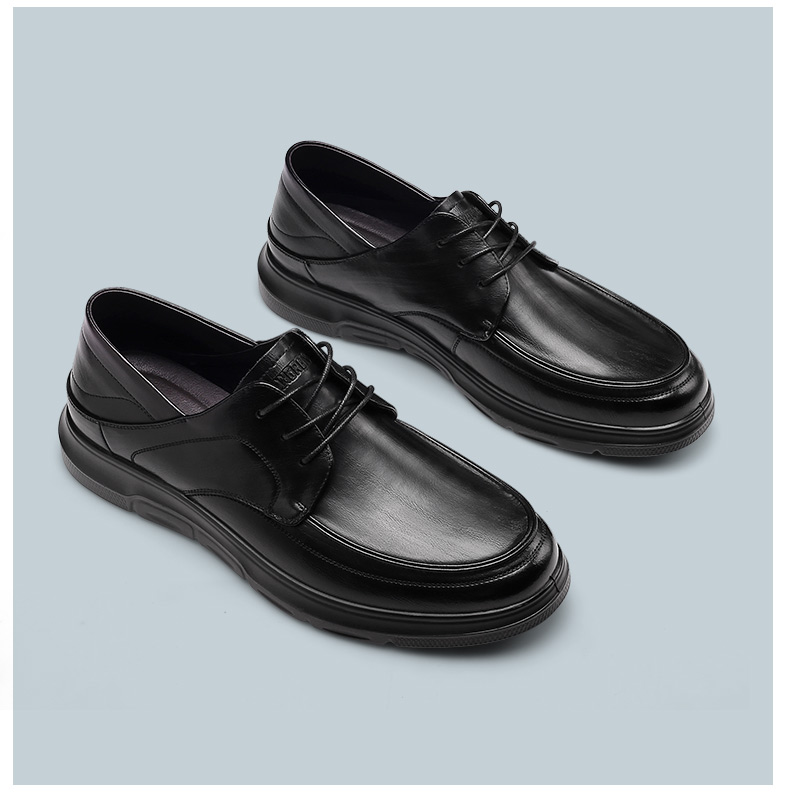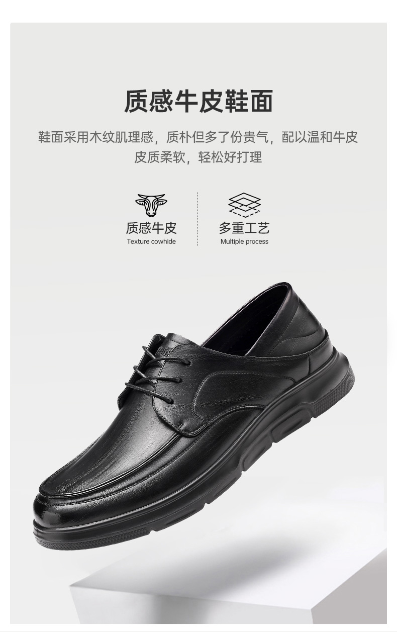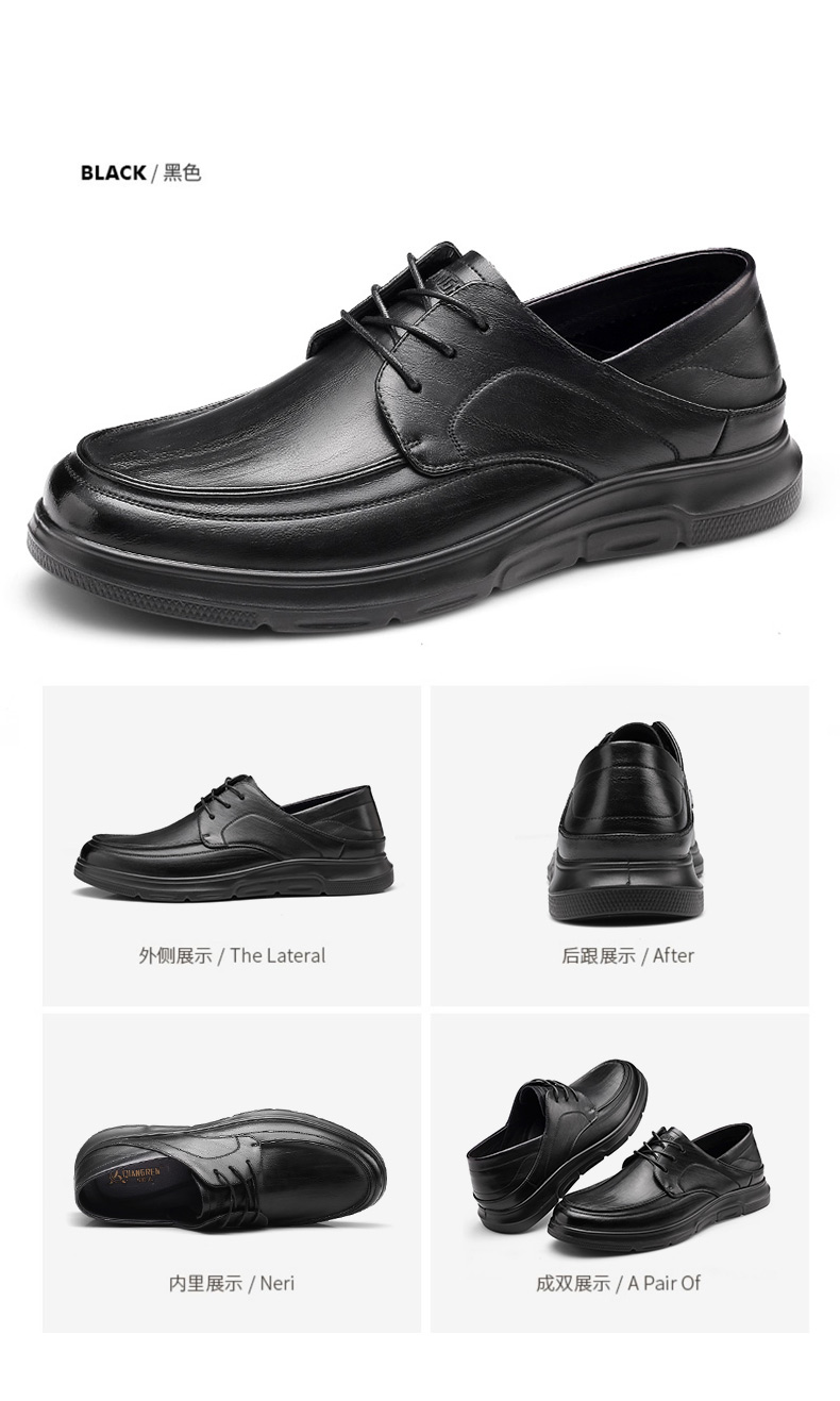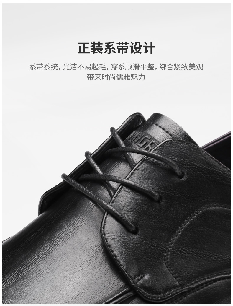 强人3515新款男士系带商务休闲皮鞋真皮透气软底工作鞋