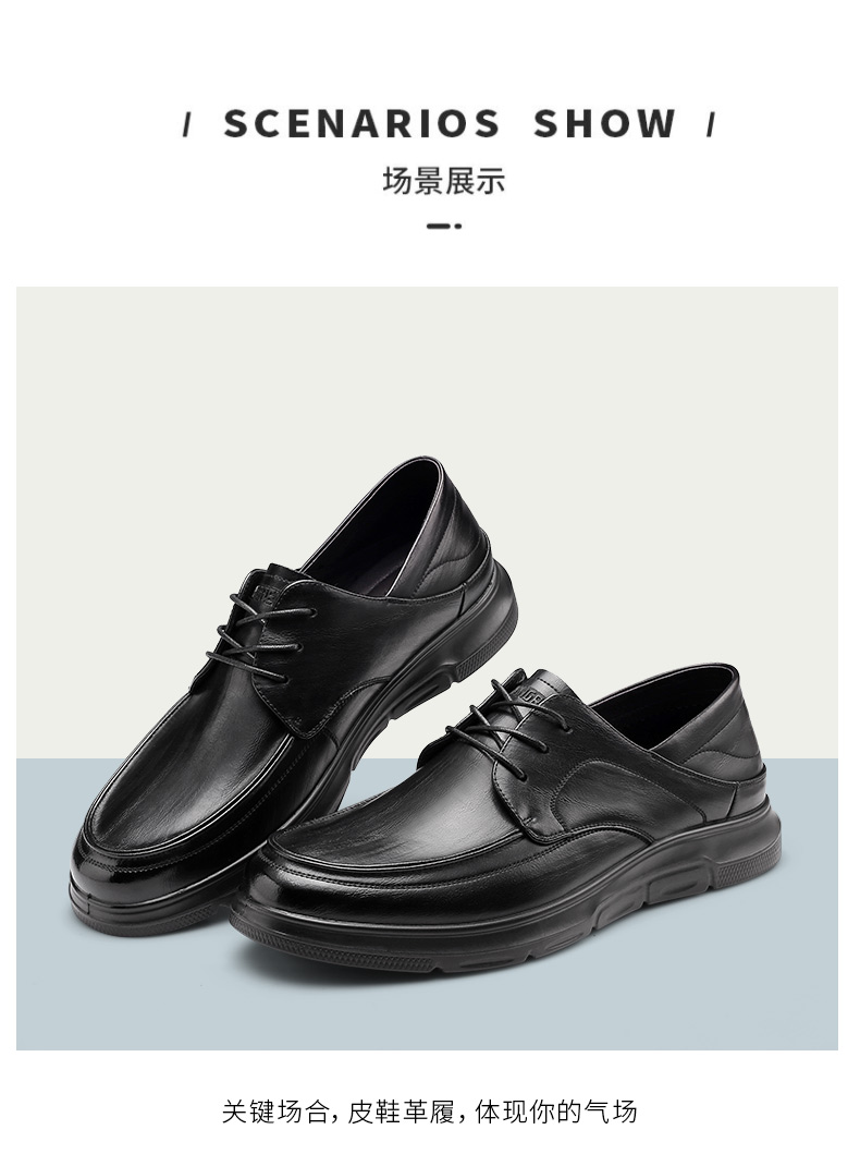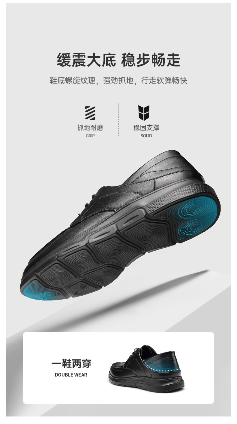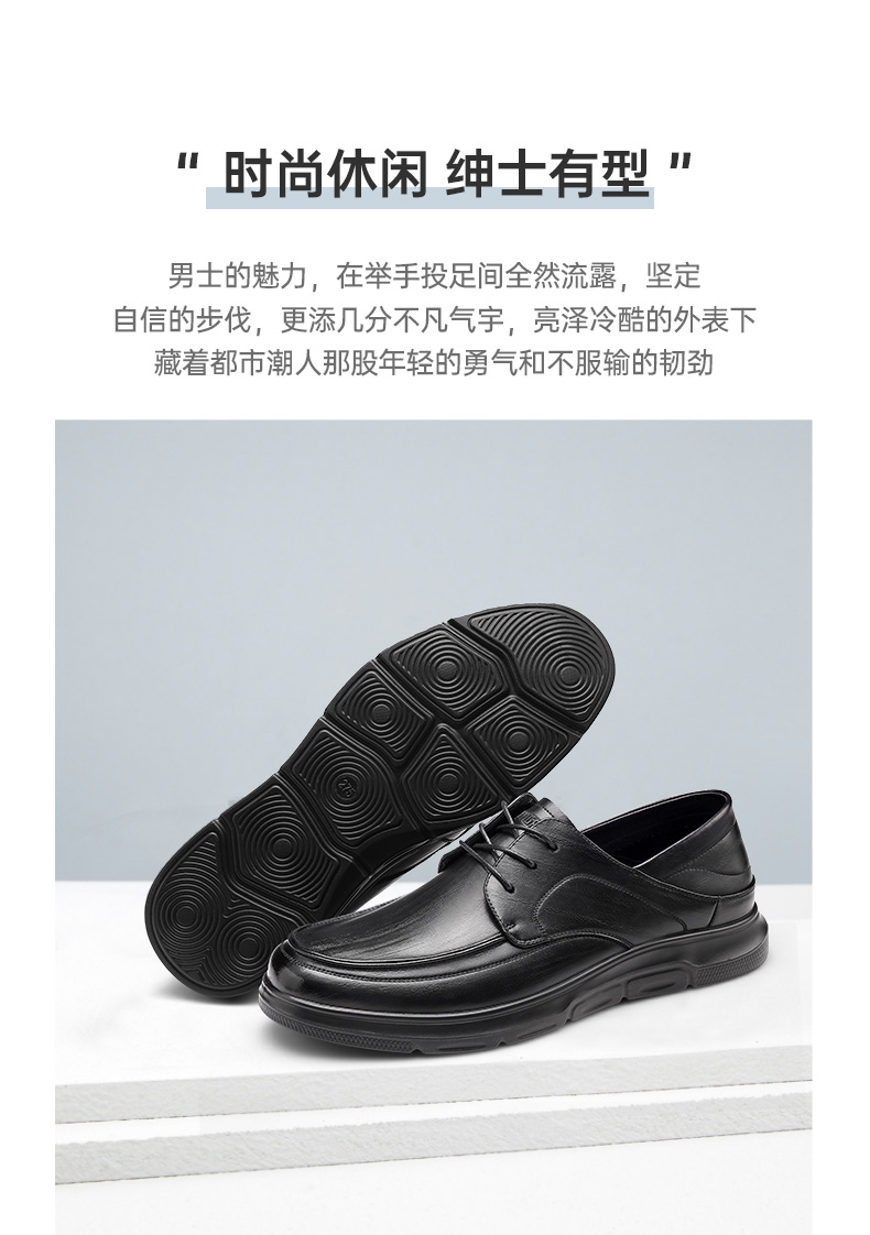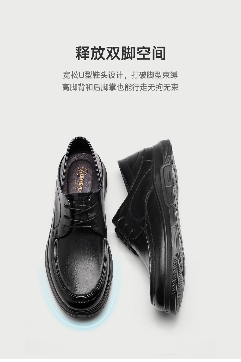 强人3515新款男士系带商务休闲皮鞋真皮透气软底工作鞋
