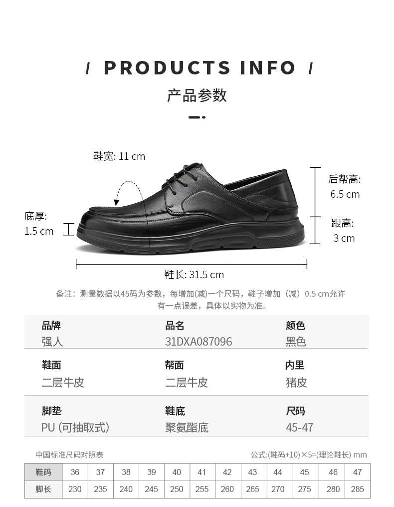 强人3515男加大码皮鞋45特大码46商务休闲47大号商务休闲系带单鞋