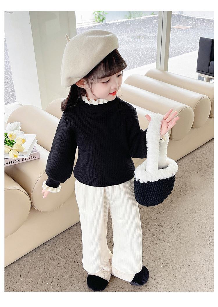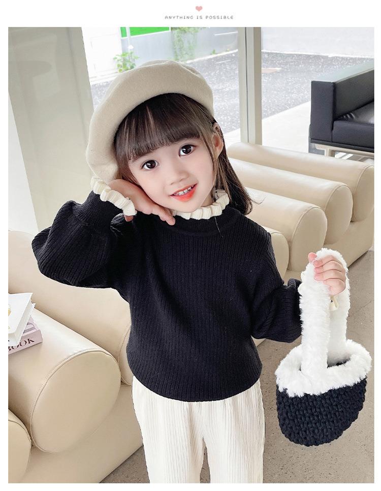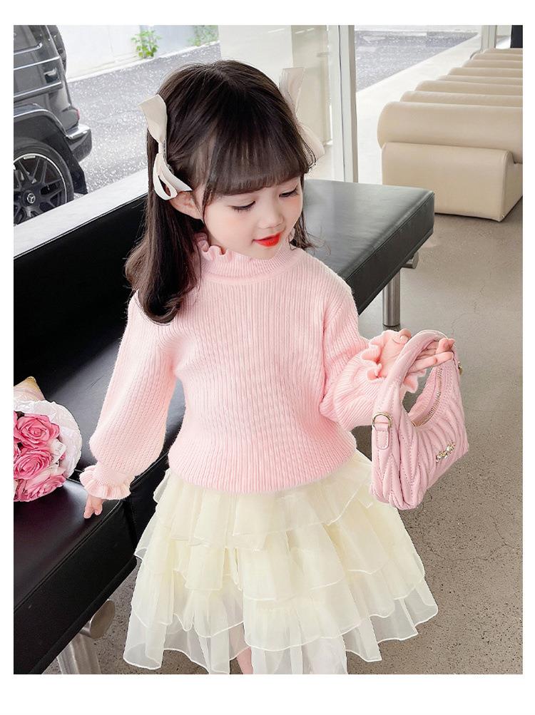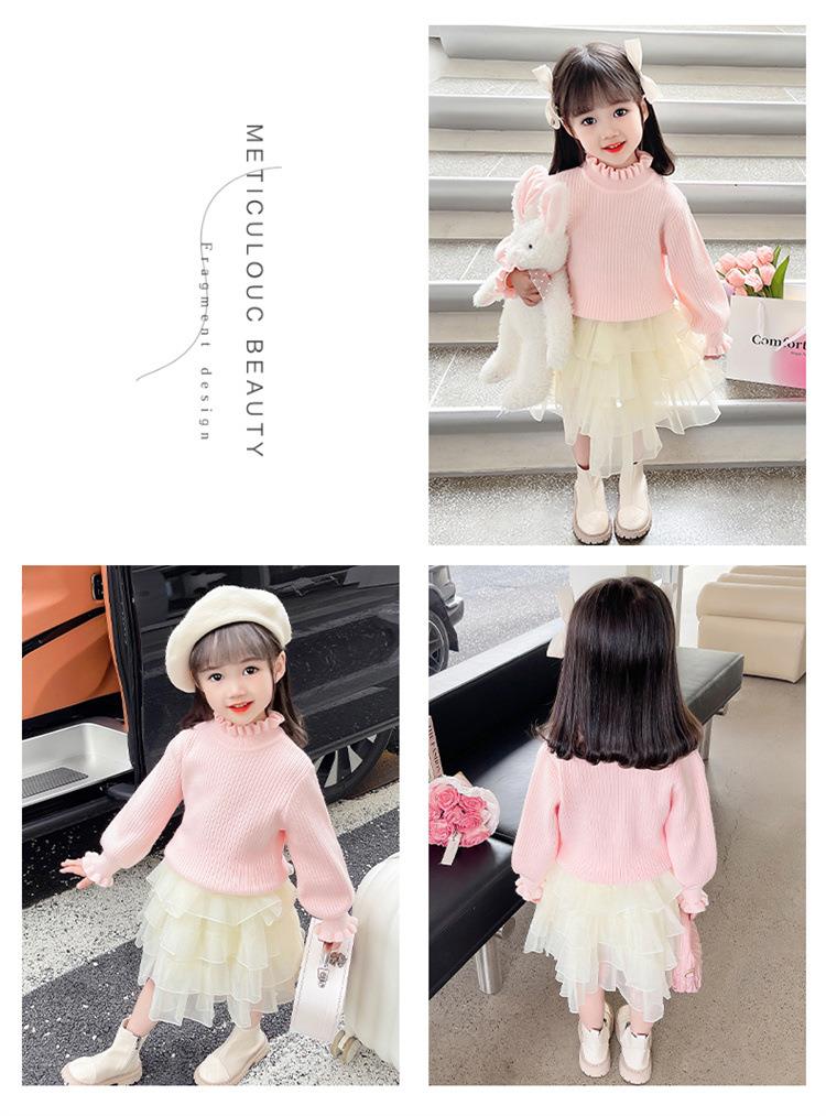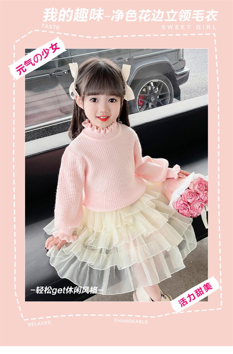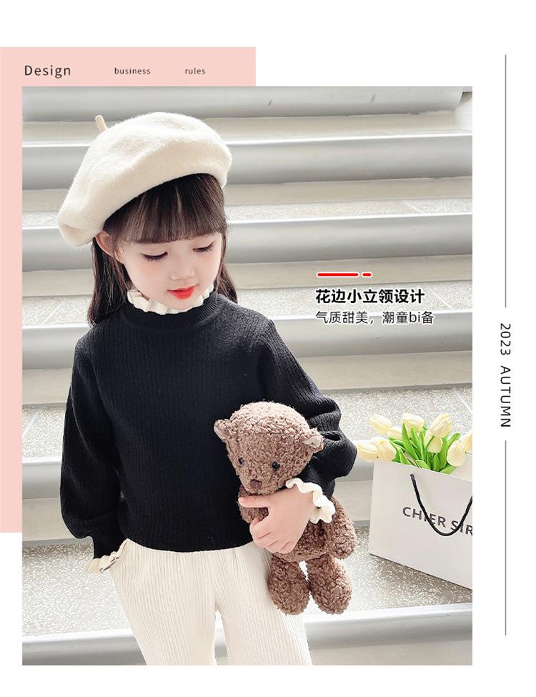 女童纯色毛衣打底衫秋冬2023新款宝宝韩版洋气针织衫一件代发童装