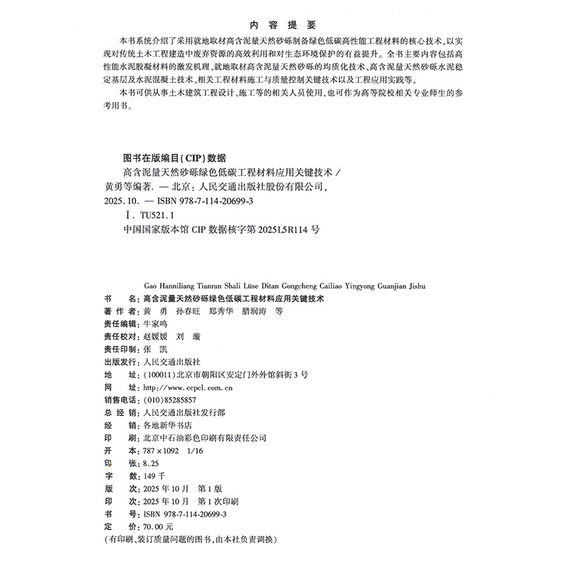 书名:高含泥量天然砂砾绿色低碳工程材料应用关键技术