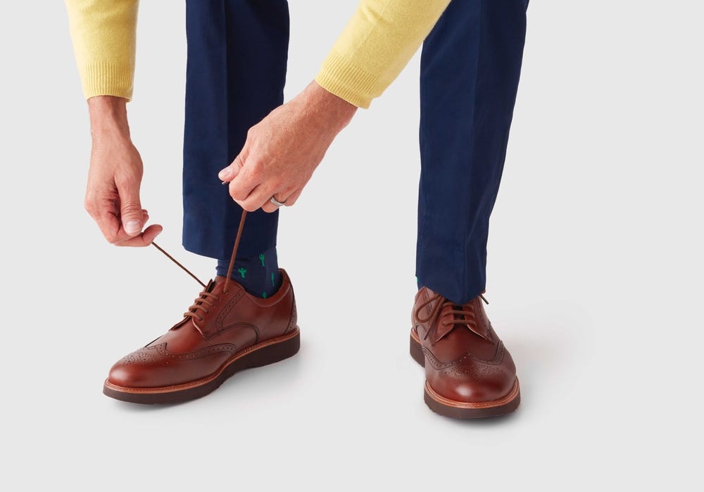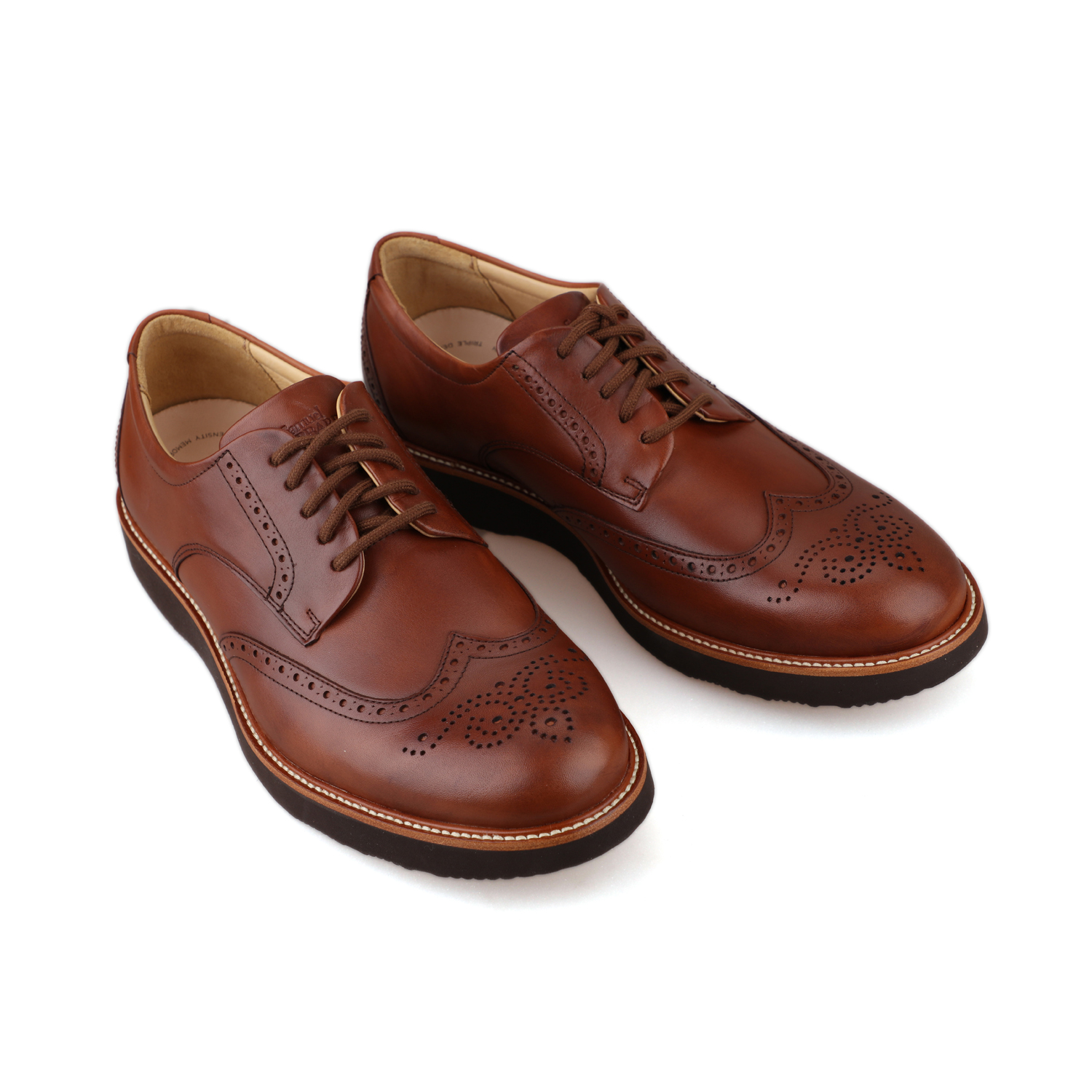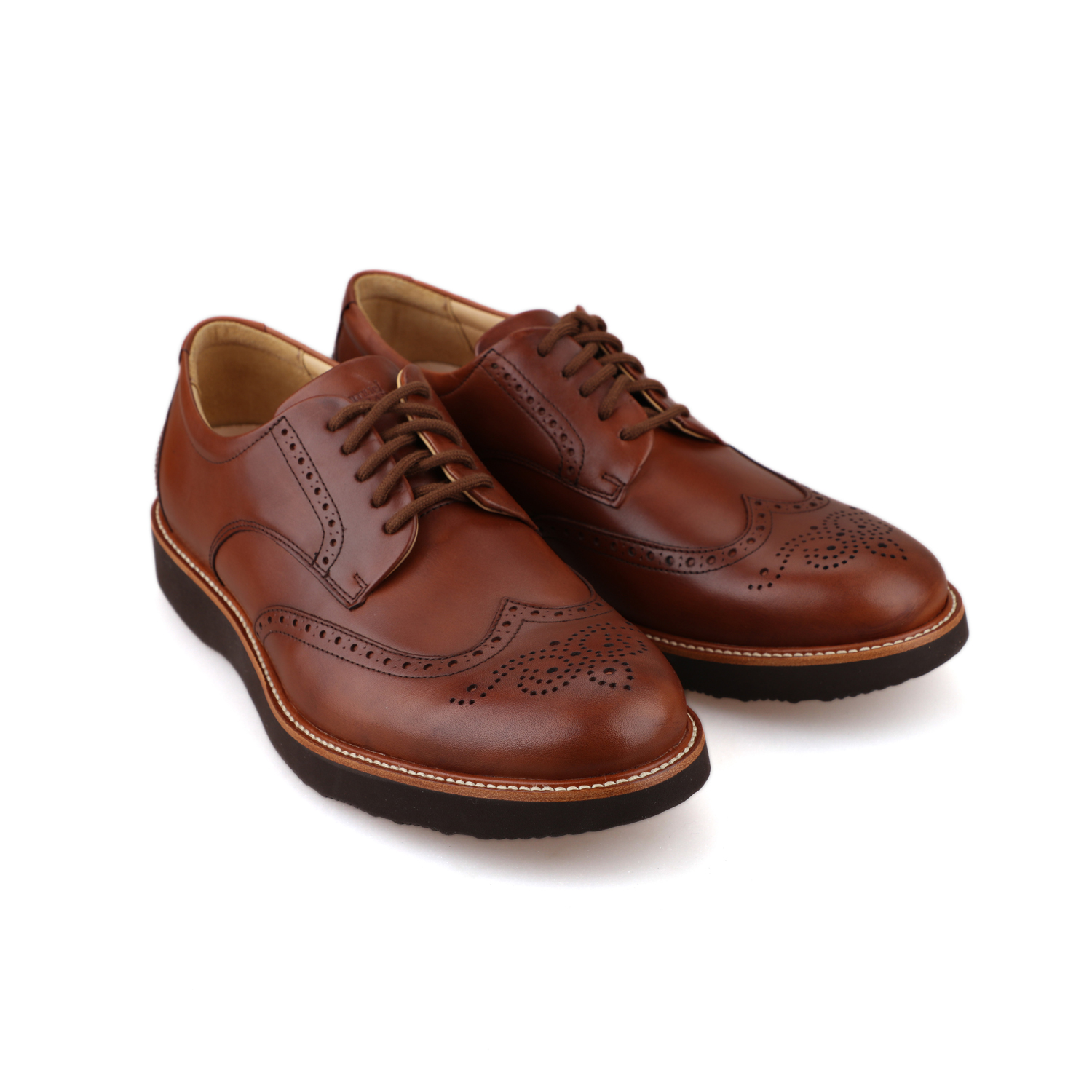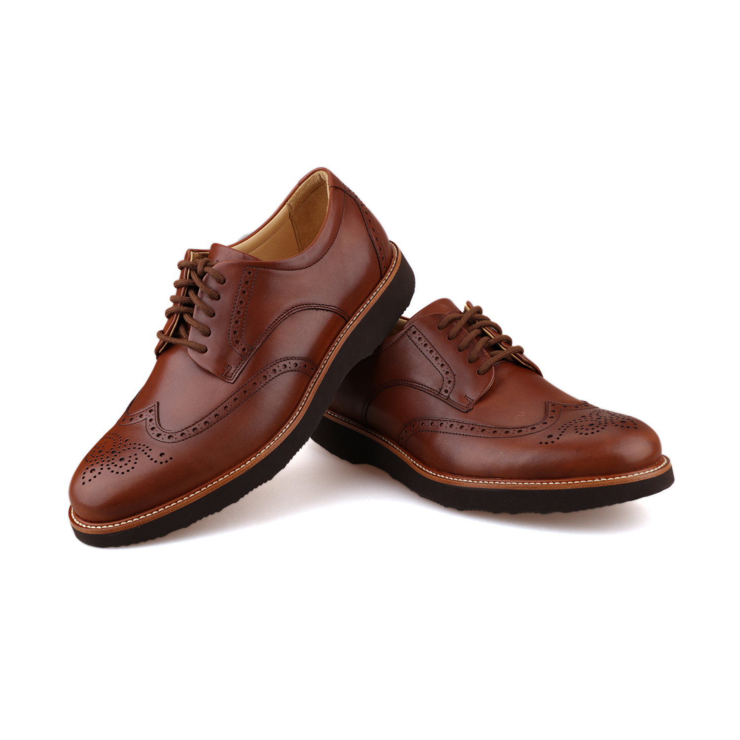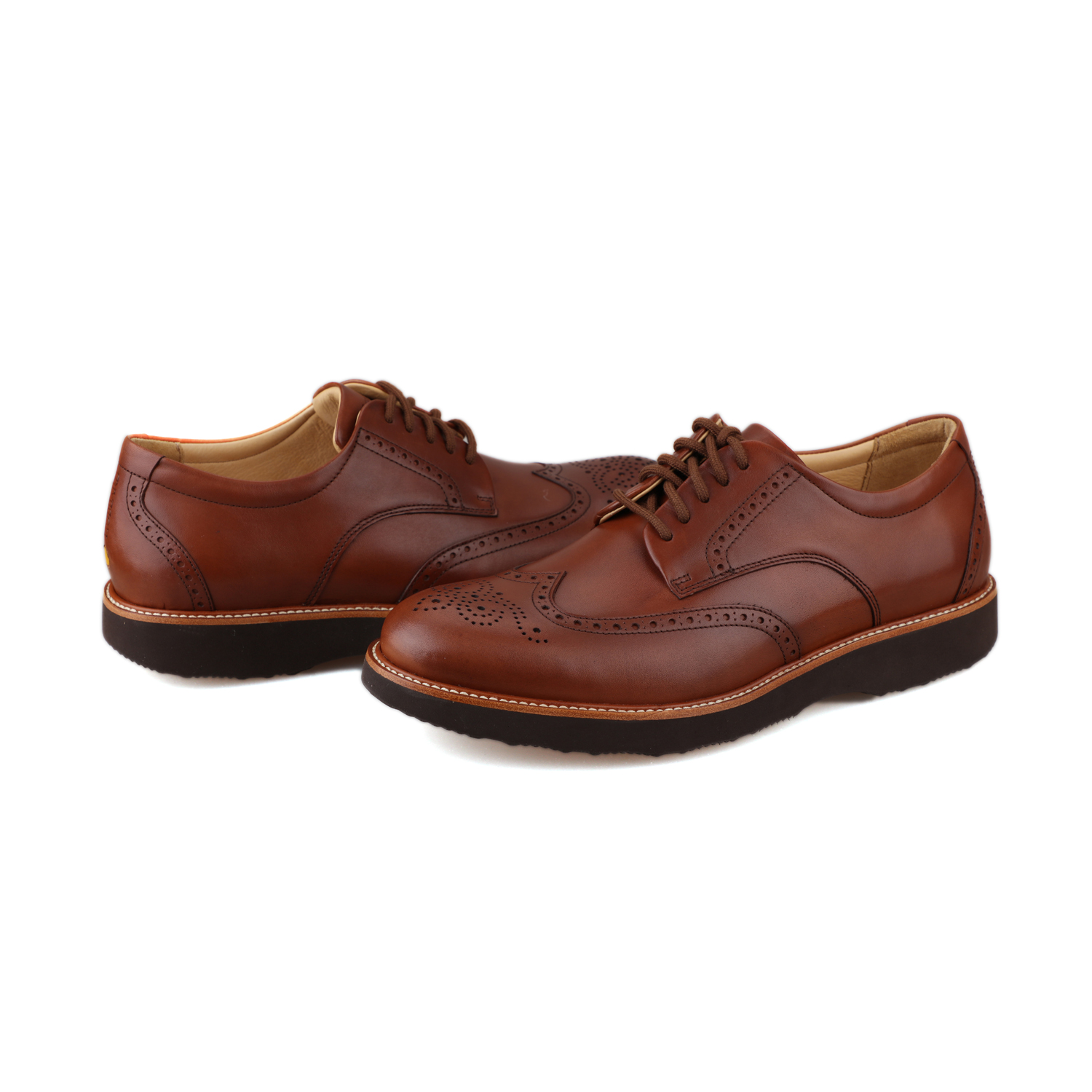 葡萄牙原产手工制作高品质舒适翼型雕花布洛克男士商务休闲皮鞋黄褐色M2130(超轻款)