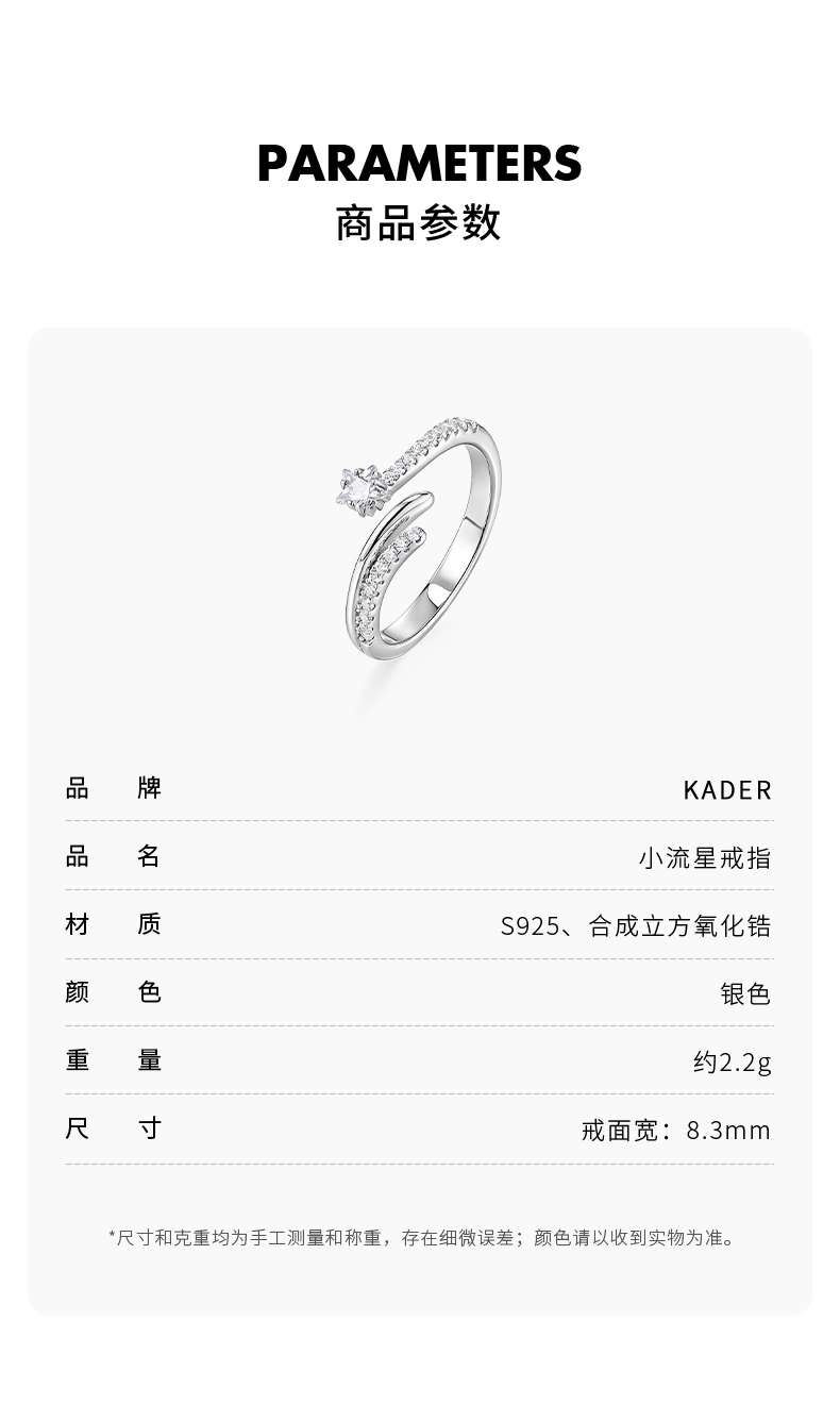 KADER卡蒂罗 小流星戒指 女开口小众设计尾戒2023年新款小指食指生日礼物