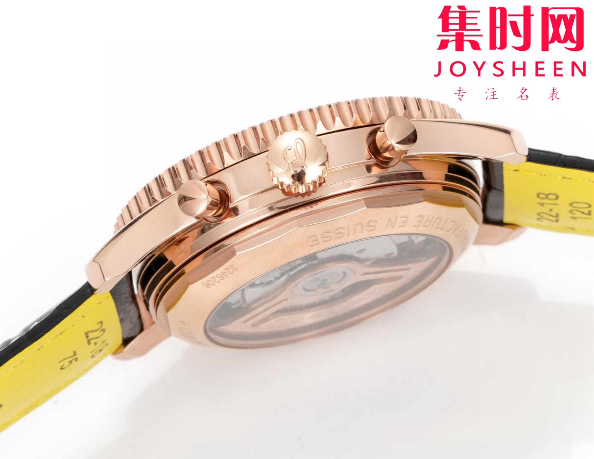 迭代款无疑是地道的航空计时腕表 带有环形飞行滑尺 棒状刻度 三个小表盘和凹槽表圈 实现轻松握持