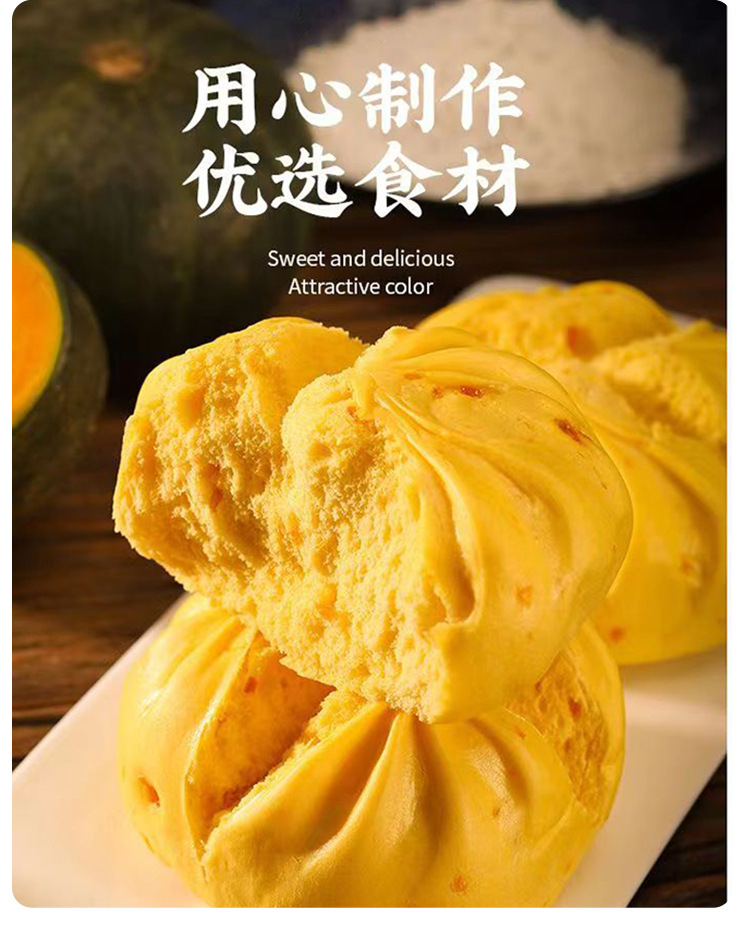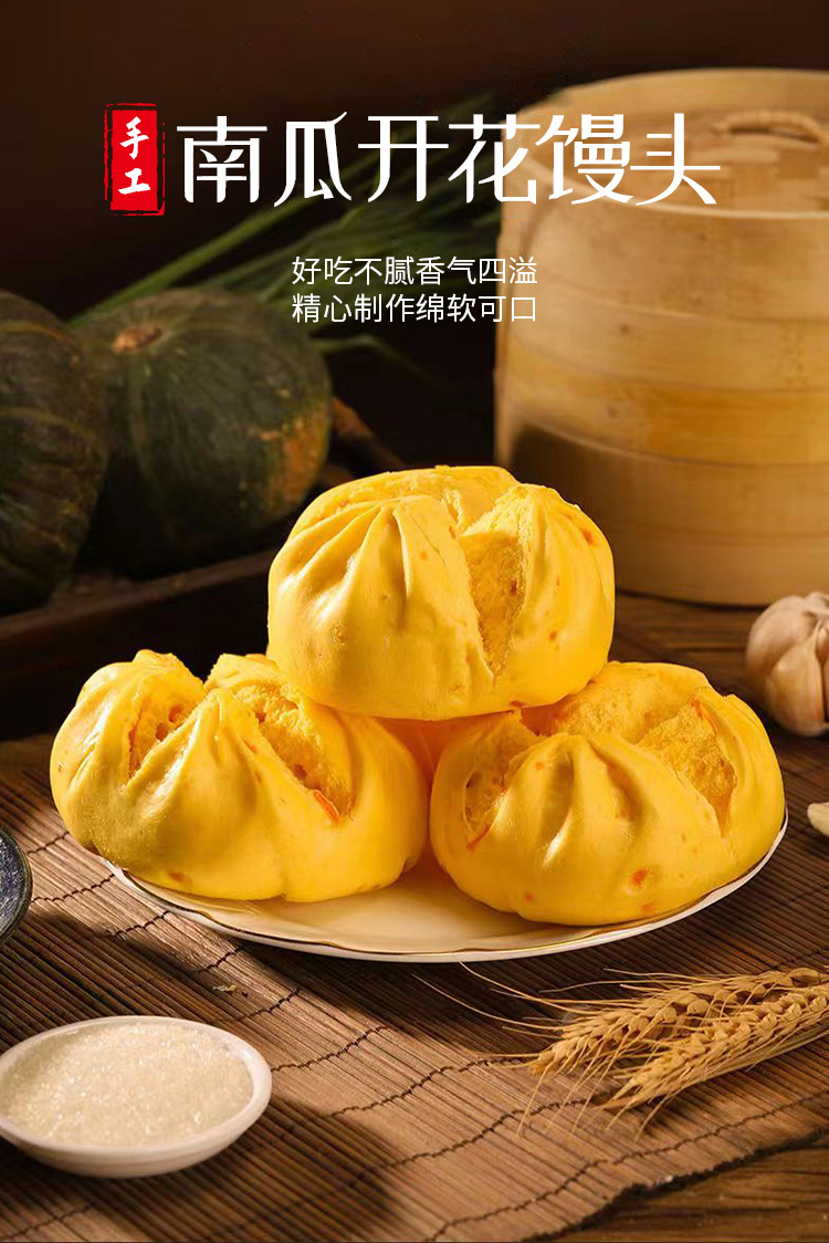 【营养早餐!南瓜开花馒头】优选食材手工制作,诱人色泽,劲道绵软口感 好吃不腻,手工面食速食早餐健康营养美味Y