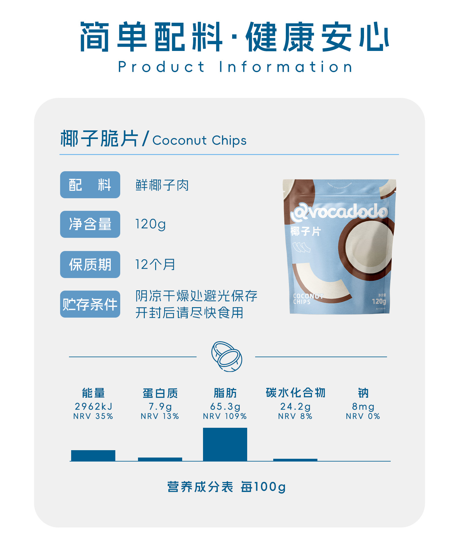Avocadodo纯椰子片脆片低温烘烤海南非油炸未加盐糖健康桥本零食
