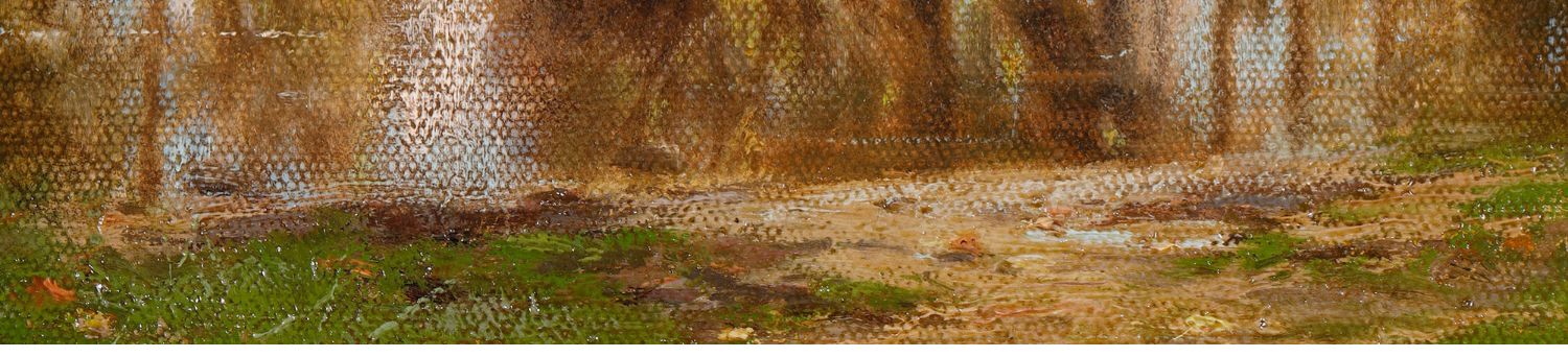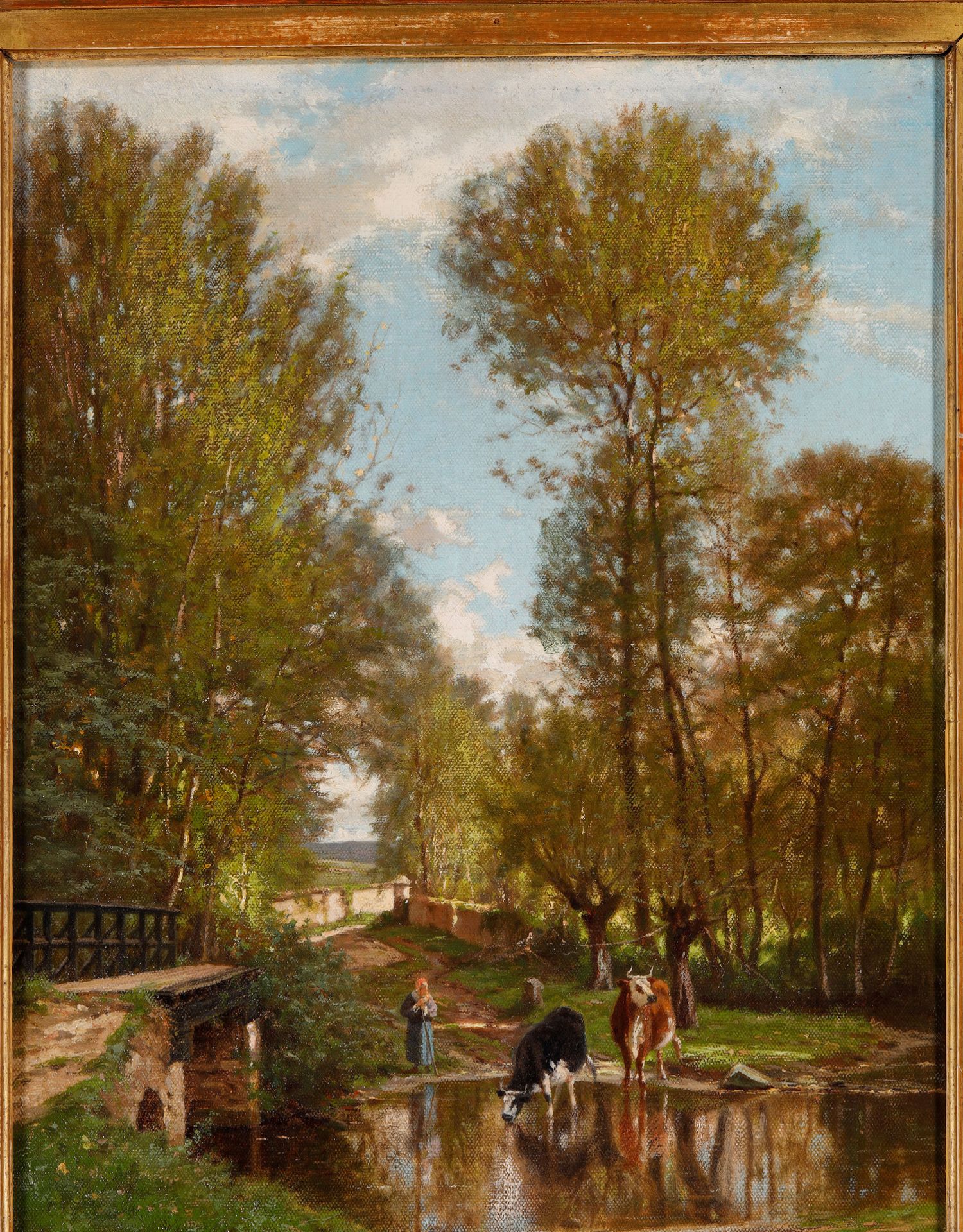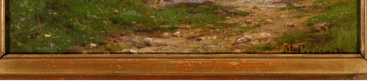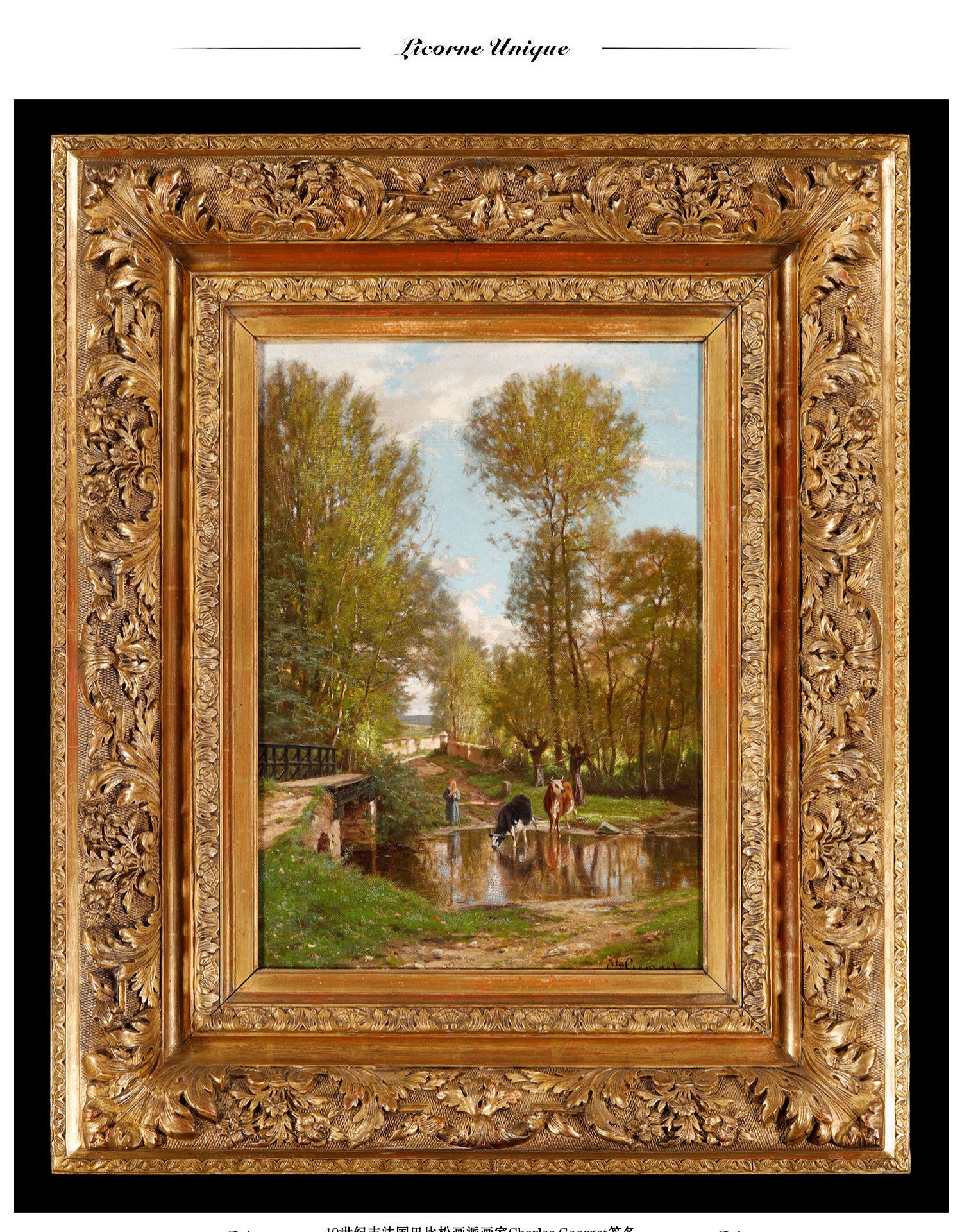 独角鹿西洋古董画家Charles Georget布面油画作品默伦郊外风景