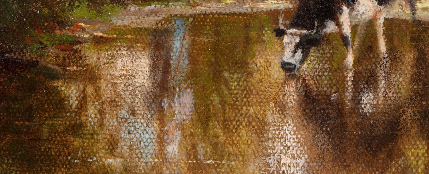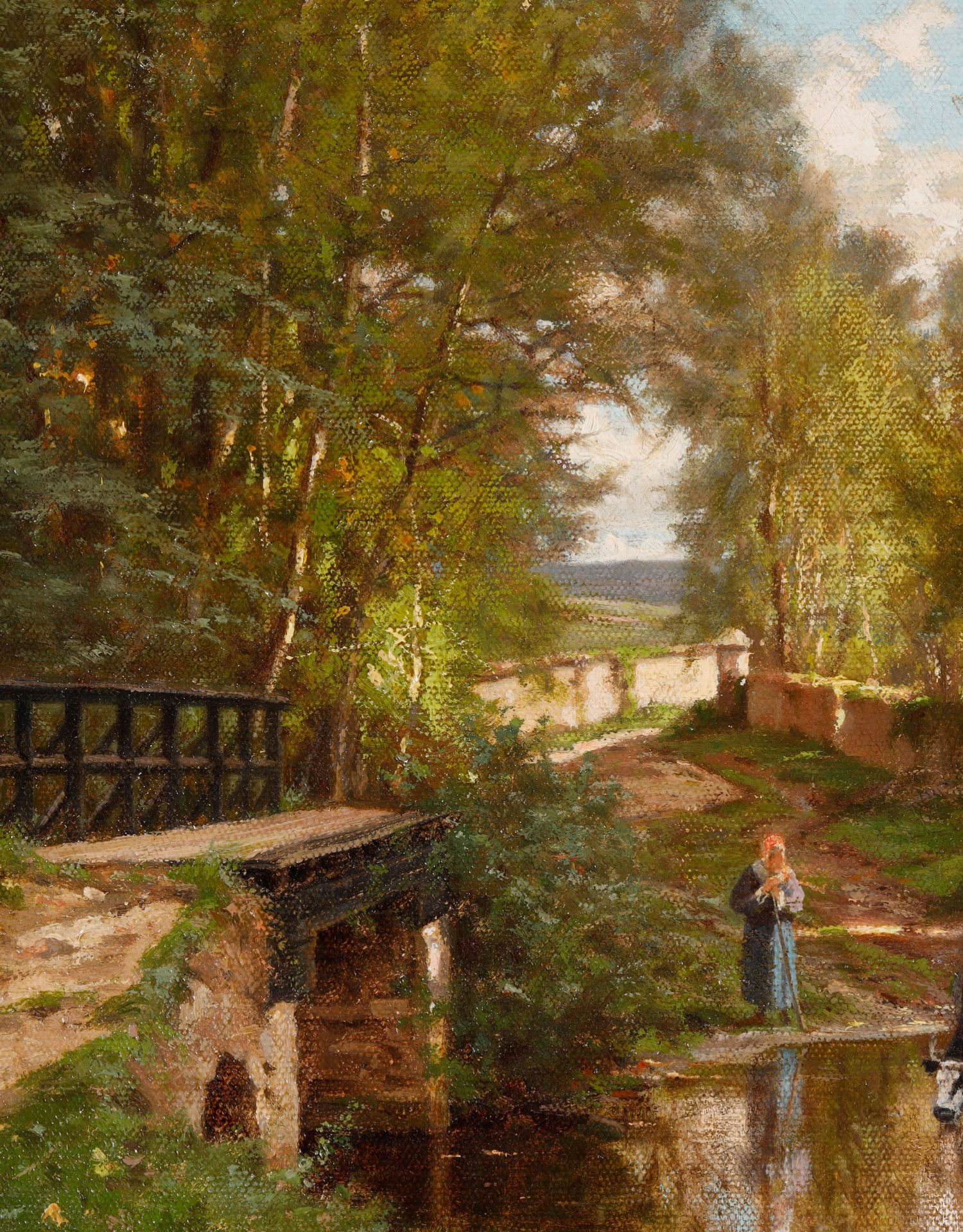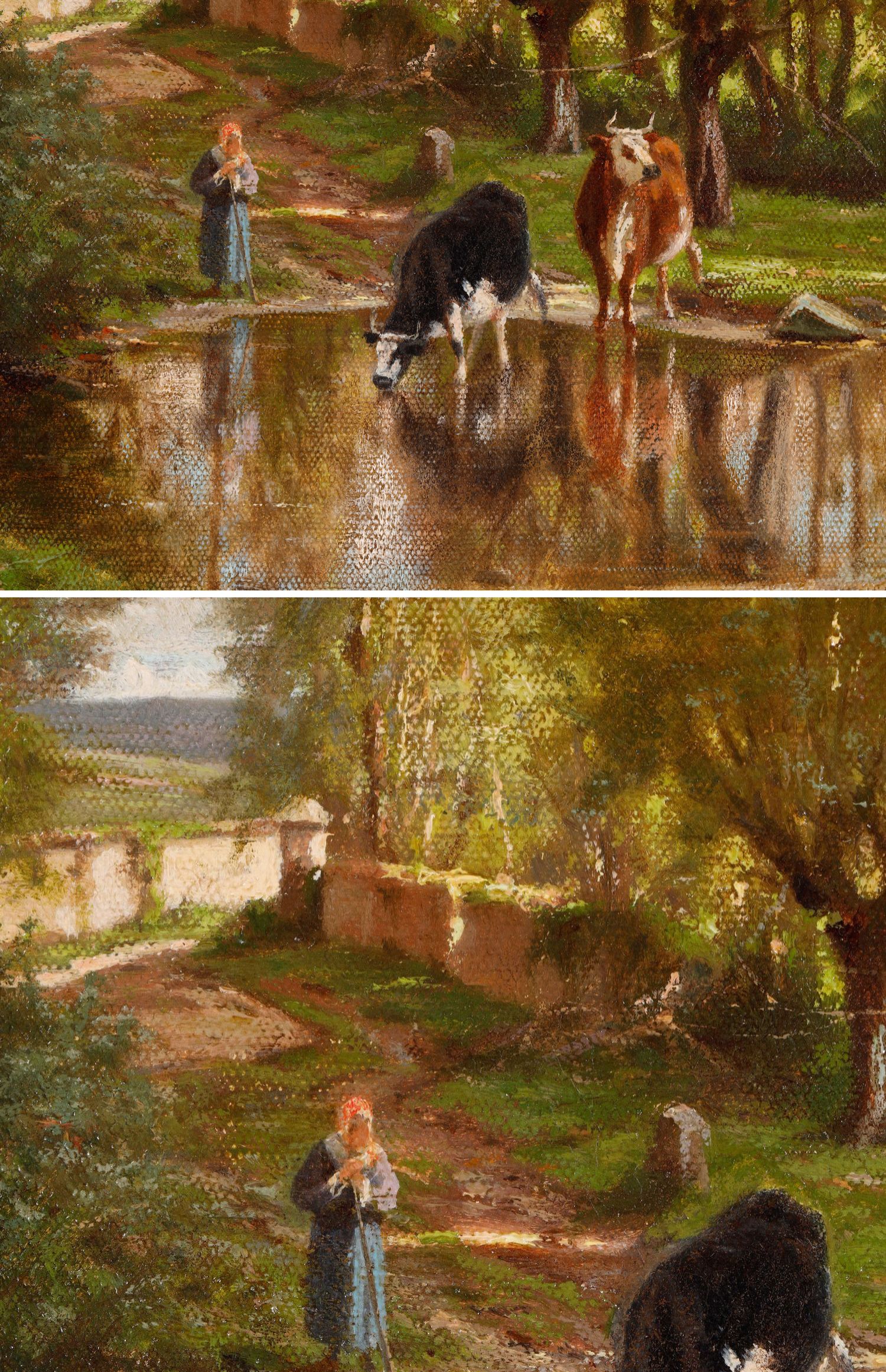 独角鹿西洋古董画家Charles Georget布面油画作品默伦郊外风景